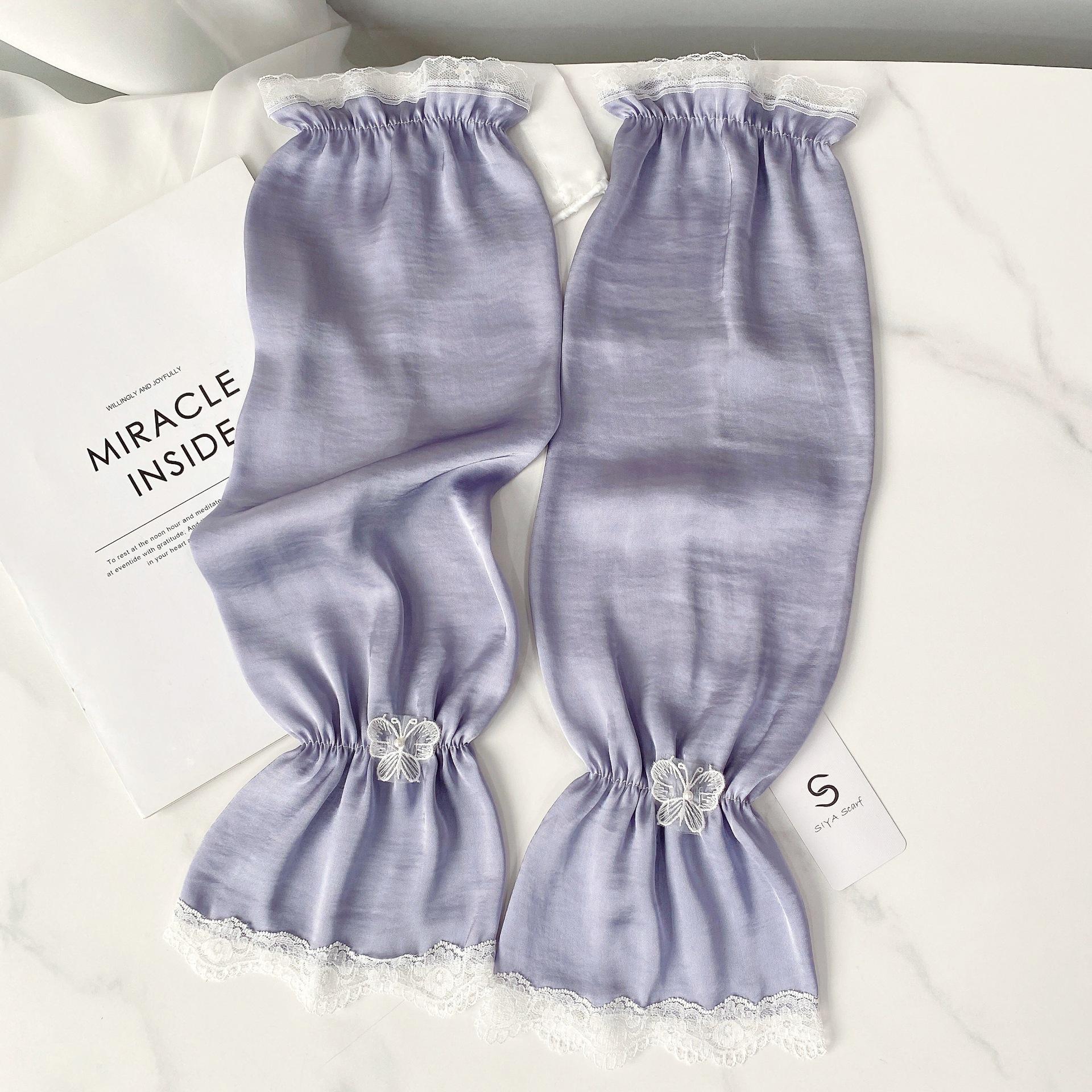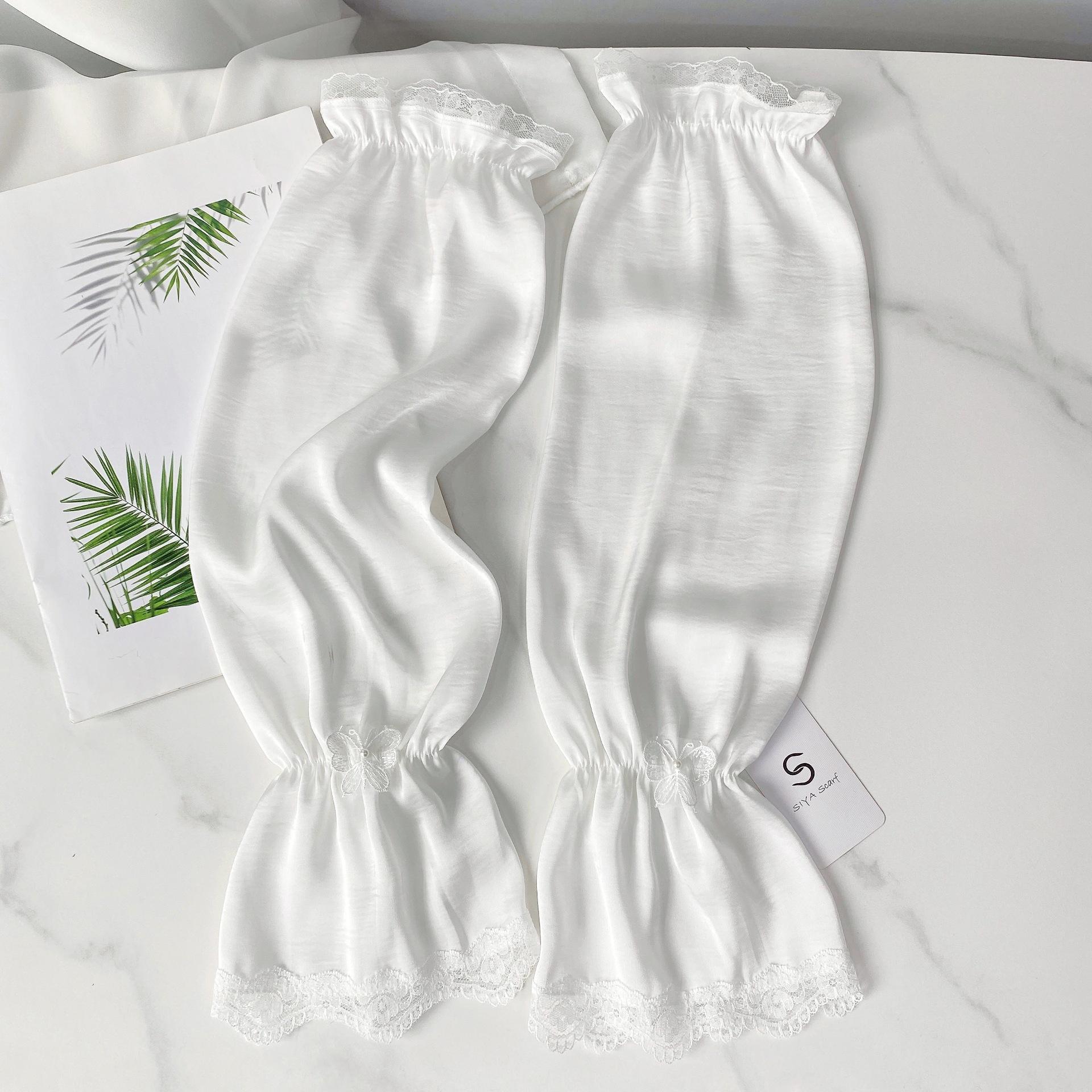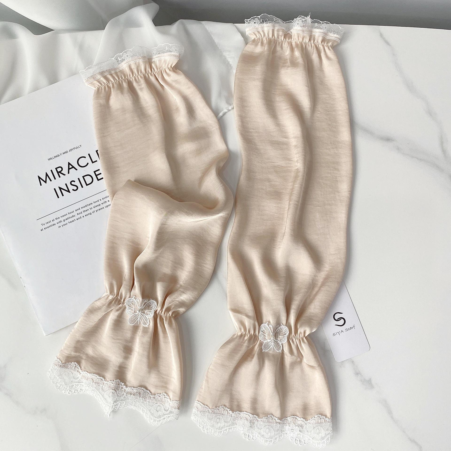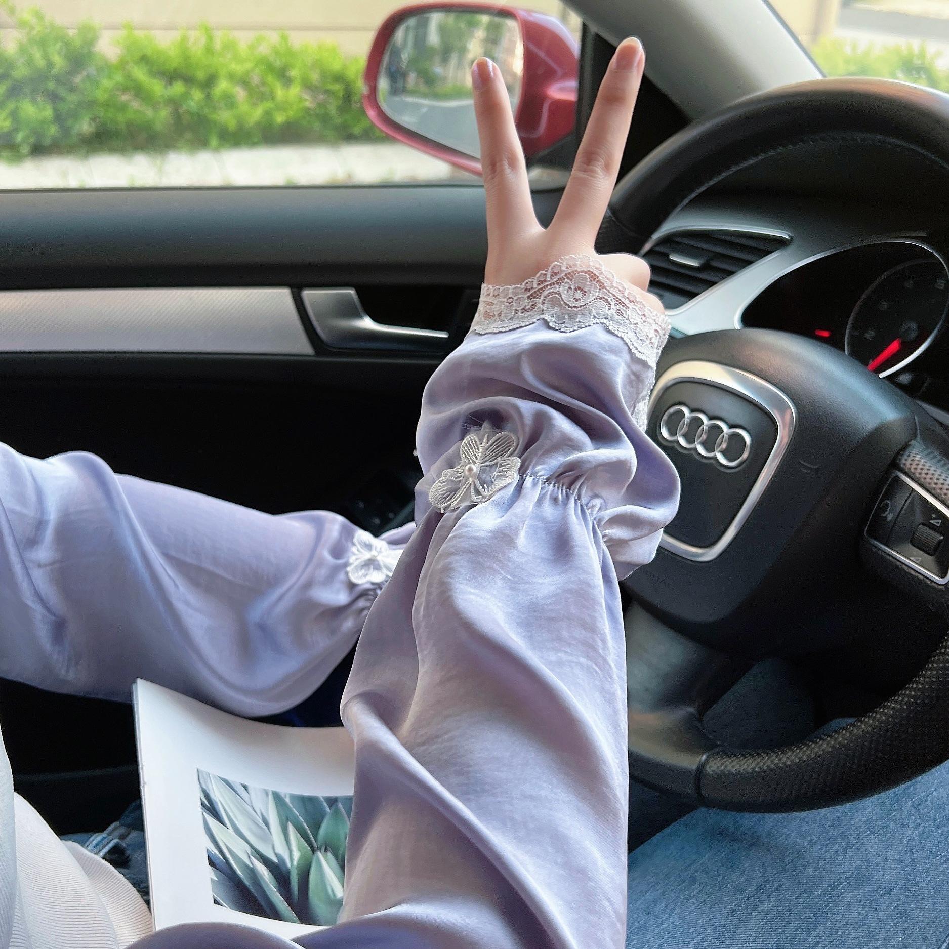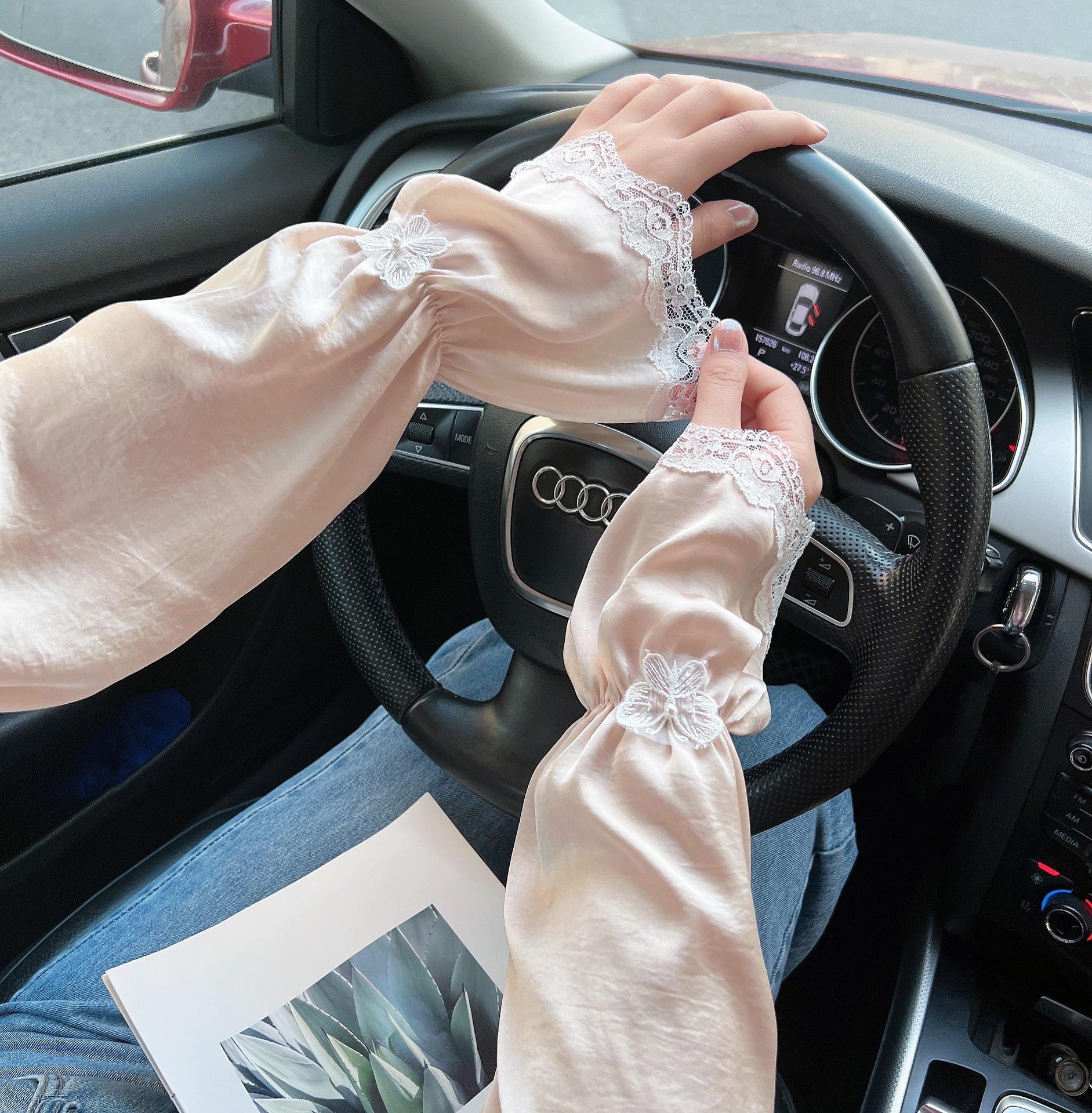 Mangas de protección solar de color liso para mujer, de verano, con encaje de mariposa, transpirables y para montar al aire libre.