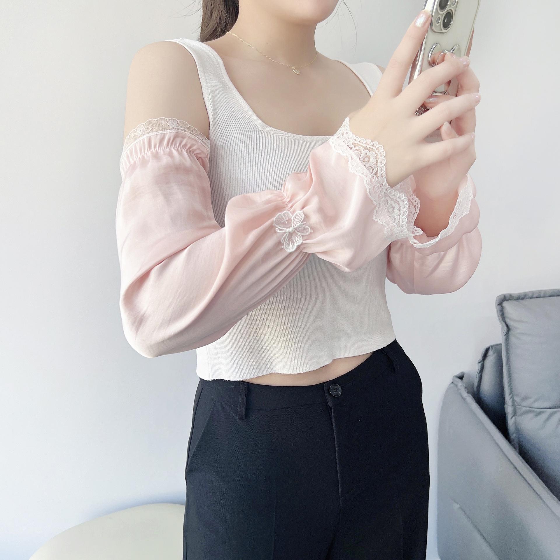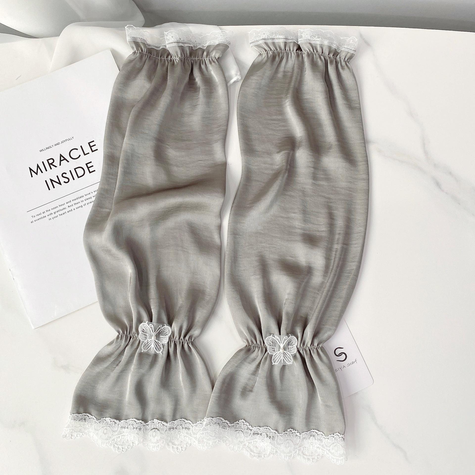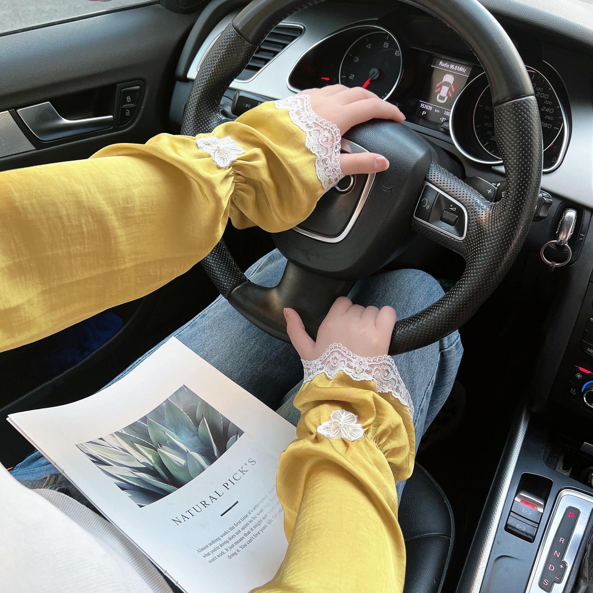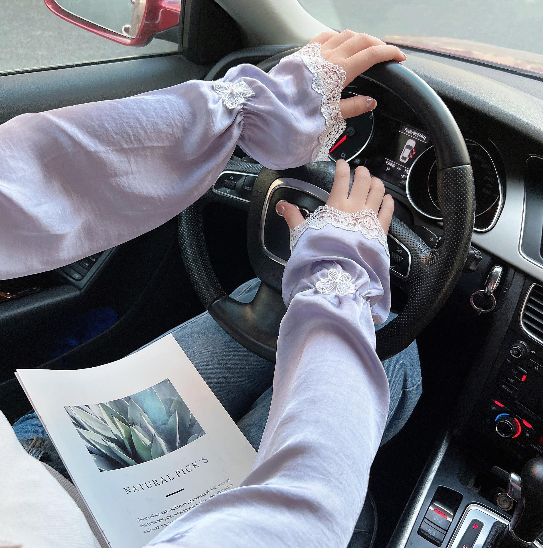 Mangas de protección solar de color liso para mujer, de verano, con encaje de mariposa, transpirables y para montar al aire libre.