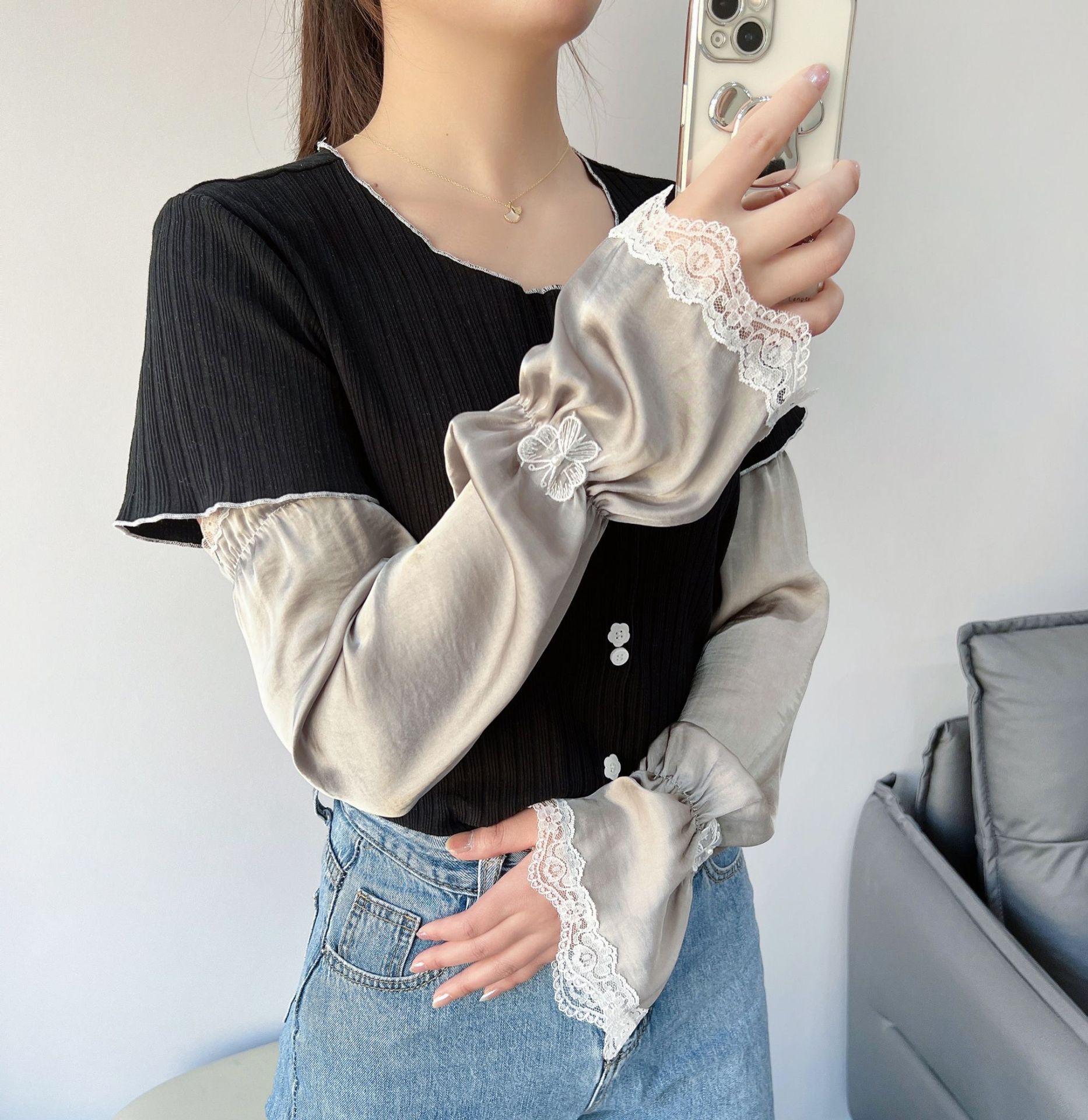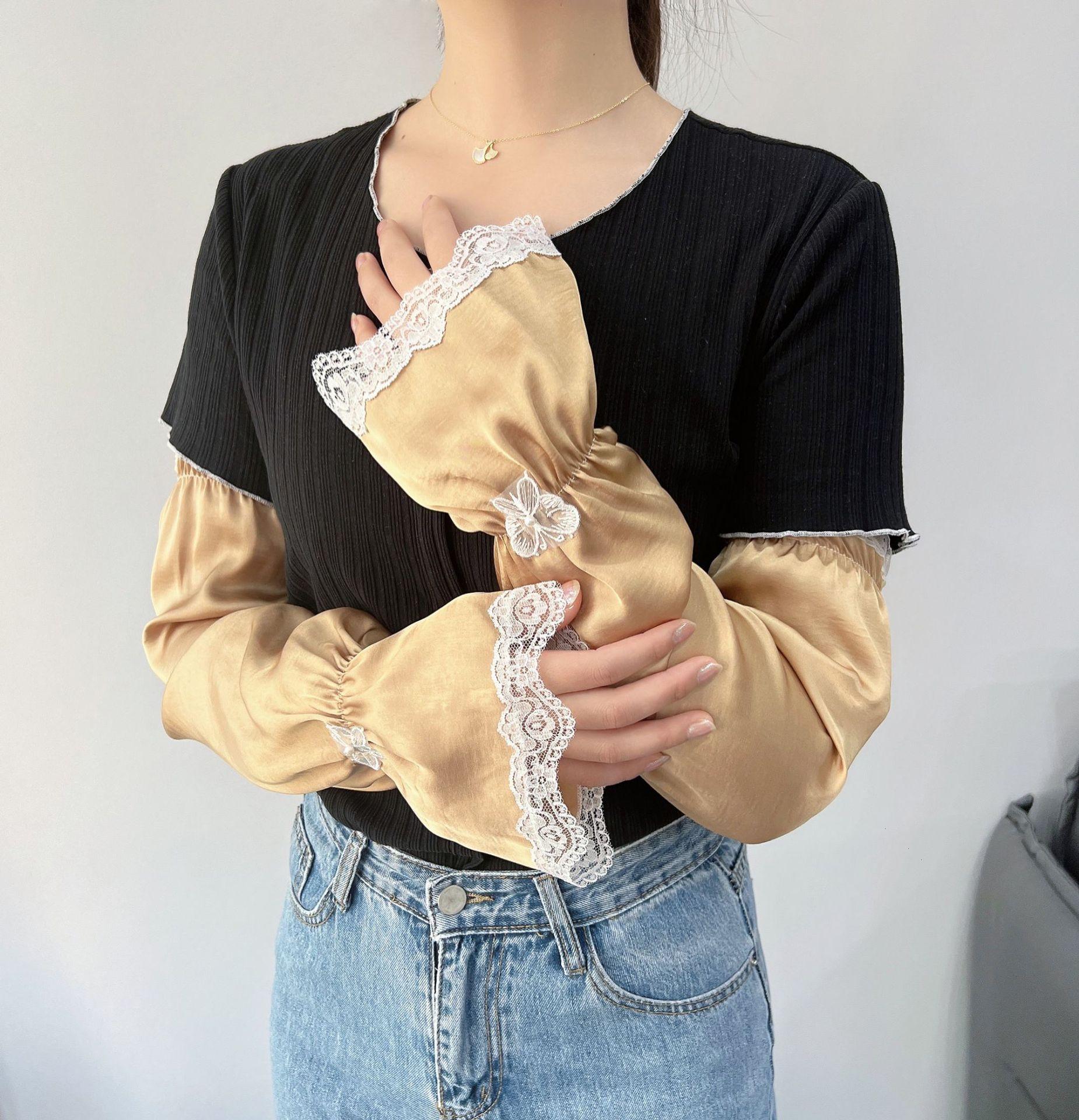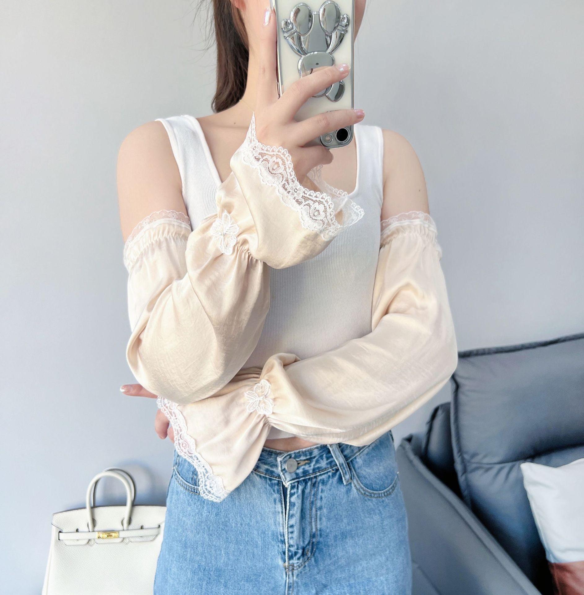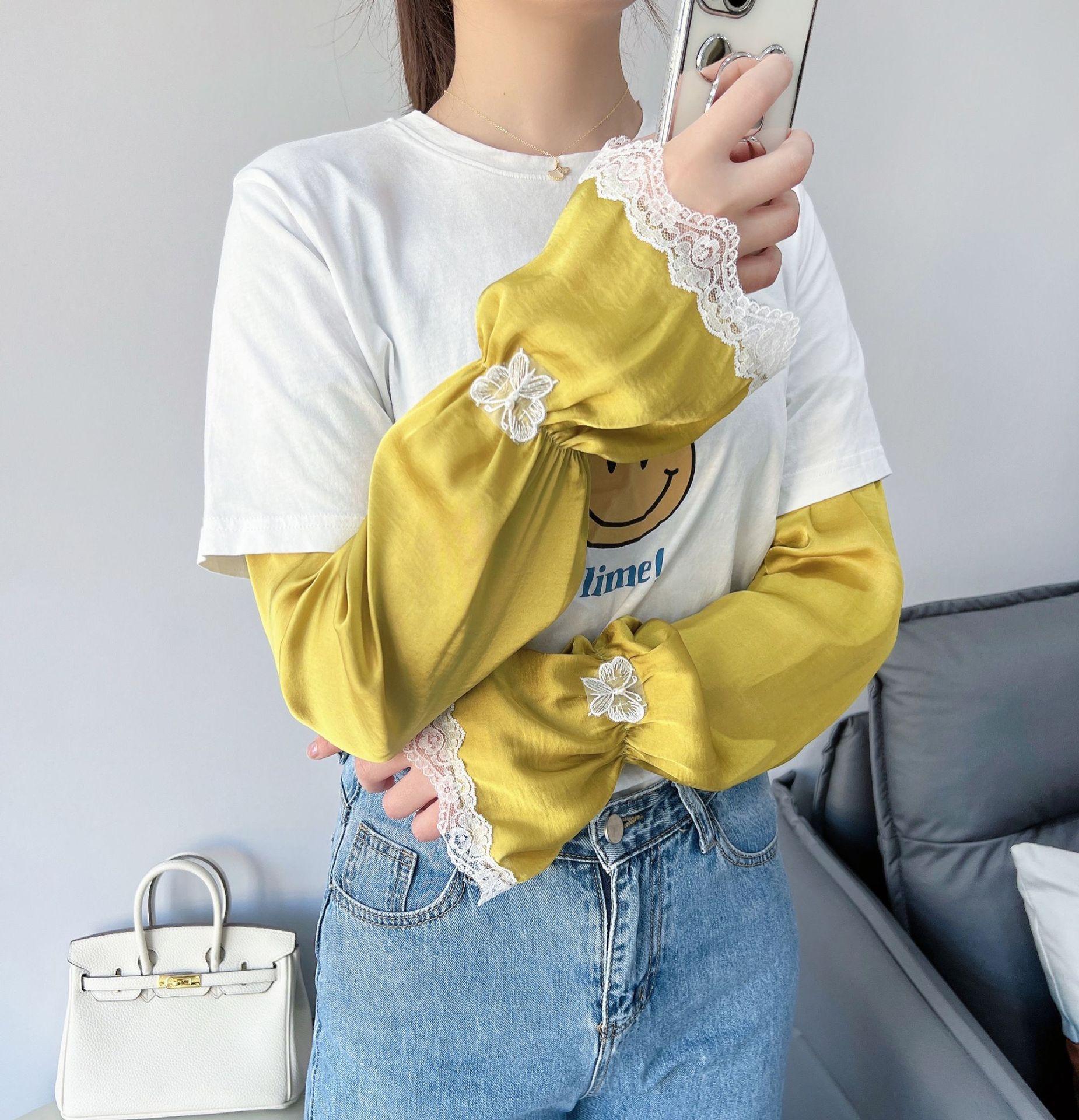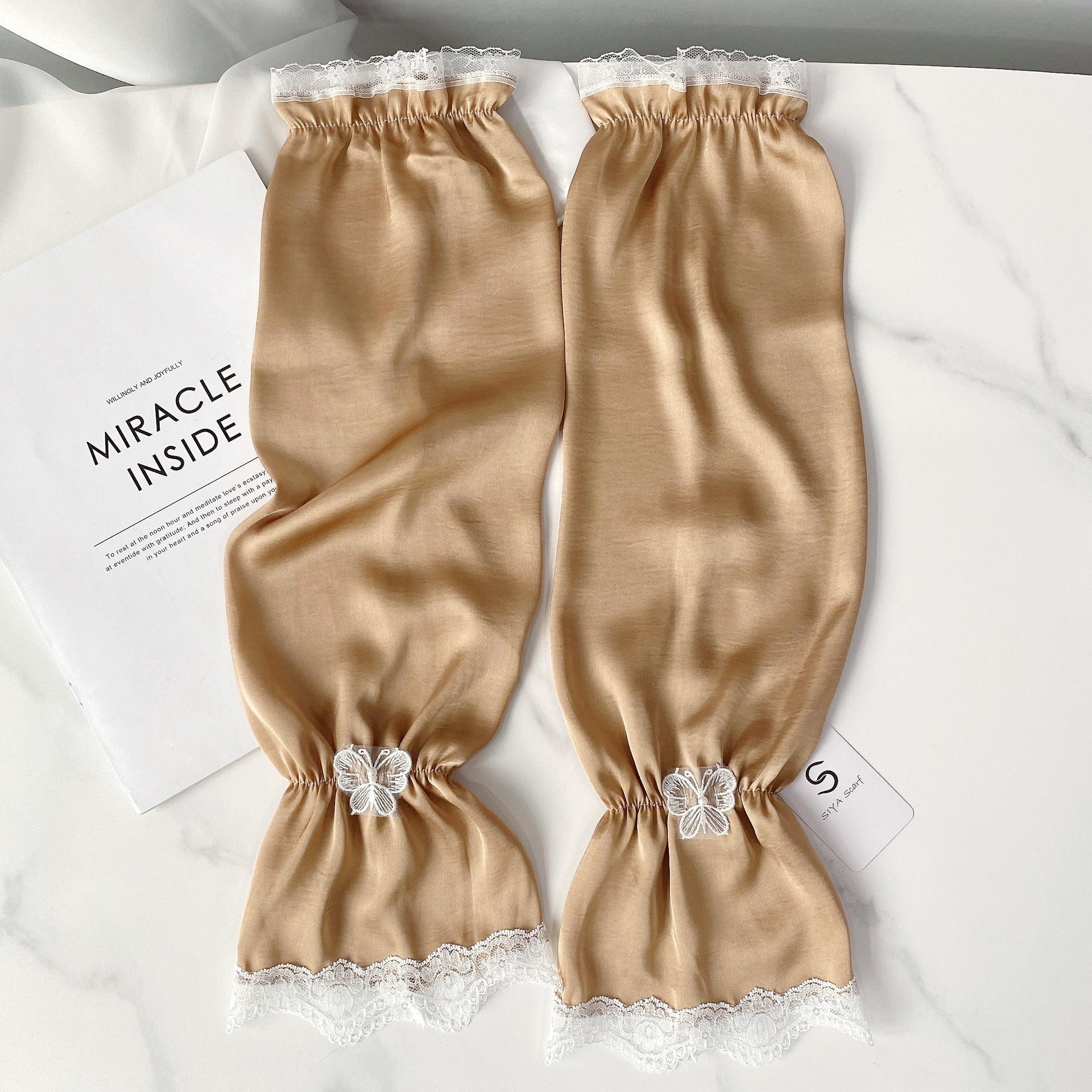 Mangas de protección solar de color liso para mujer, de verano, con encaje de mariposa, transpirables y para montar al aire libre.