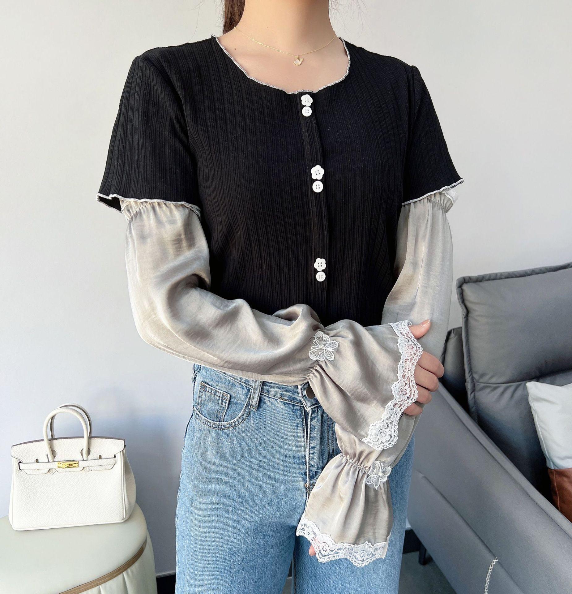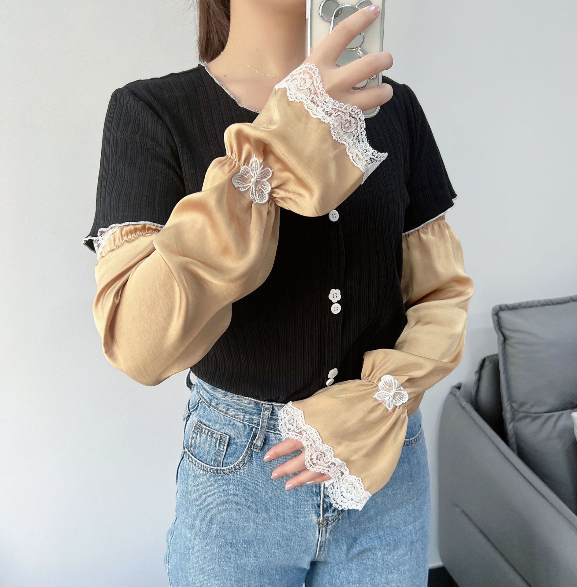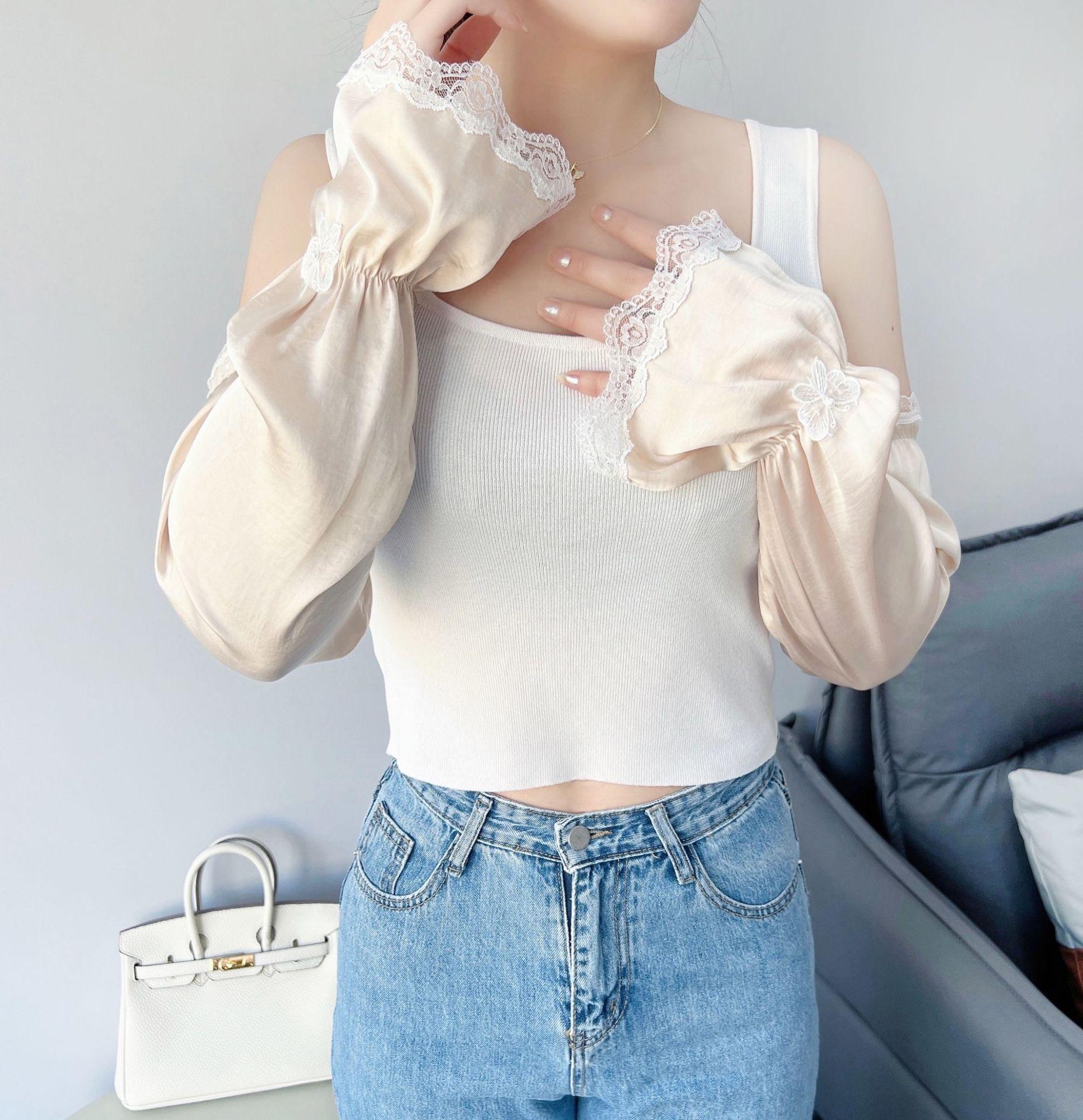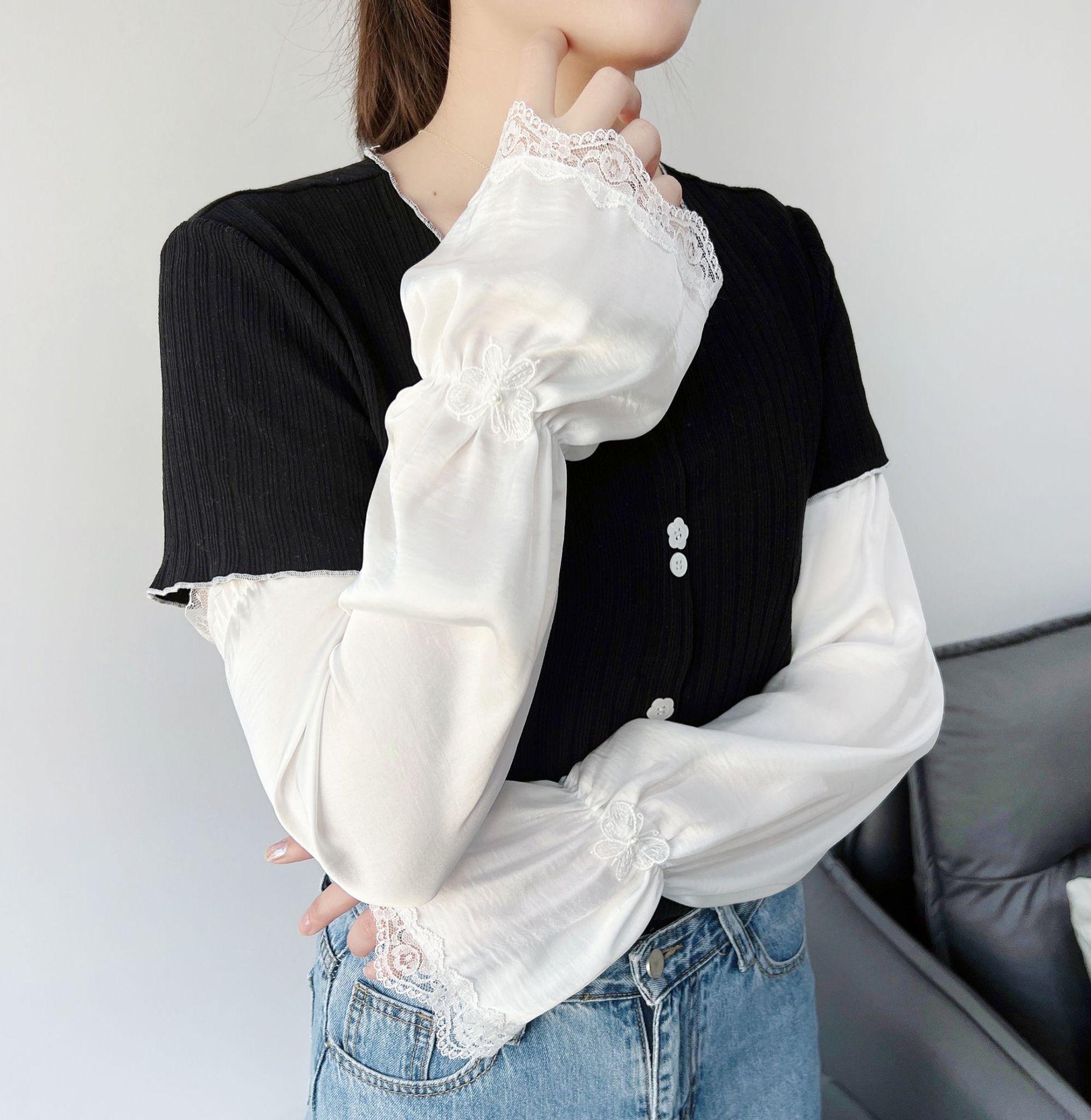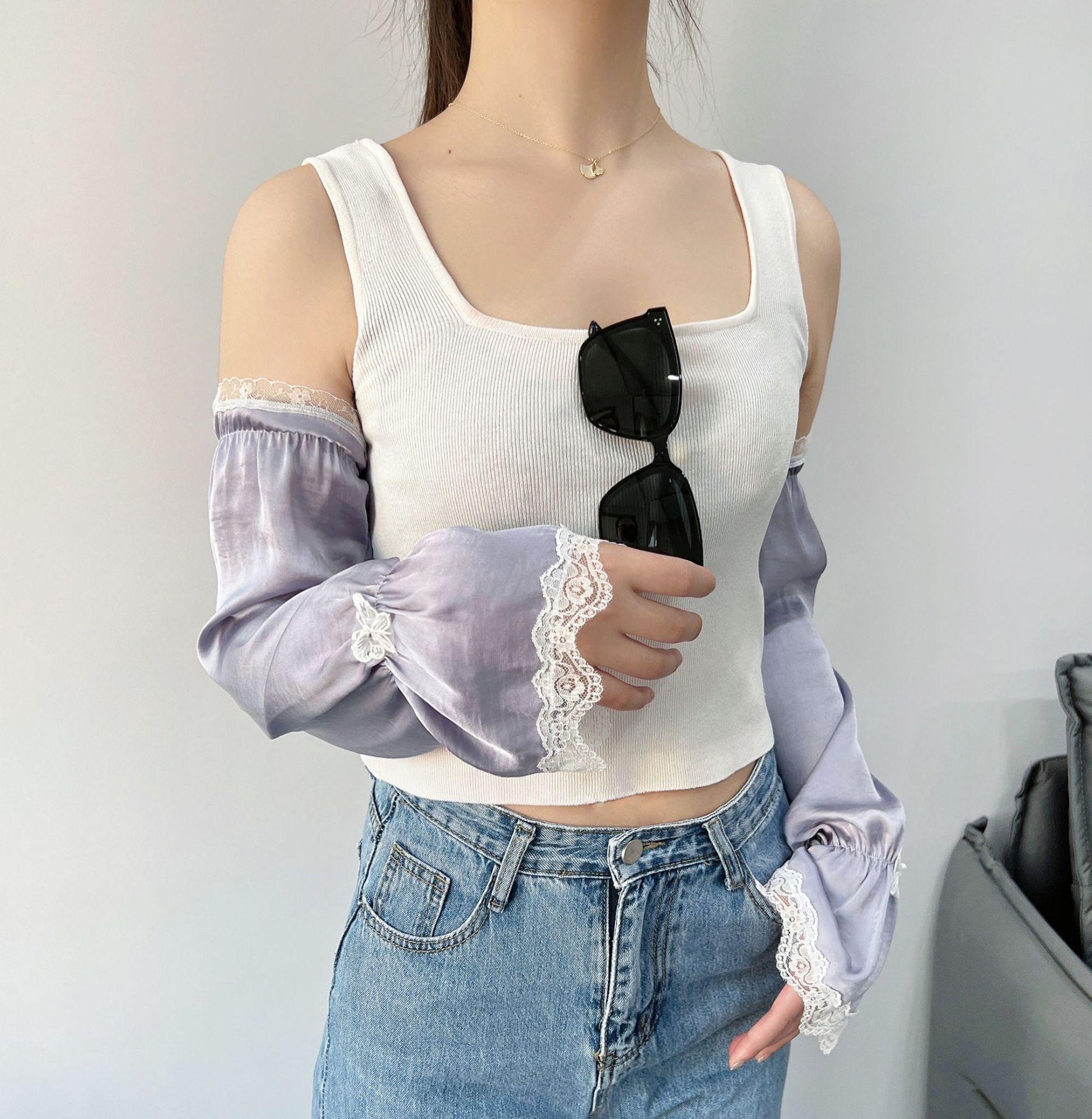 Mangas de protección solar de color liso para mujer, de verano, con encaje de mariposa, transpirables y para montar al aire libre.
