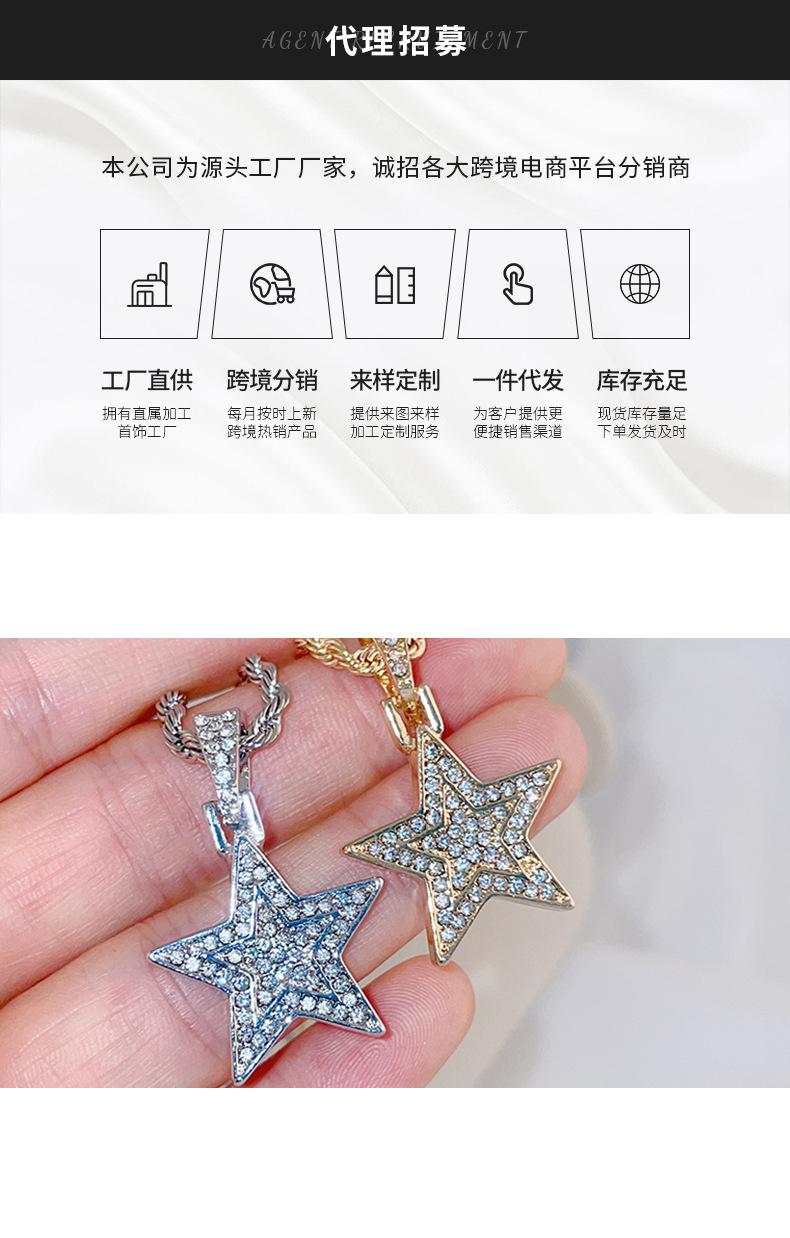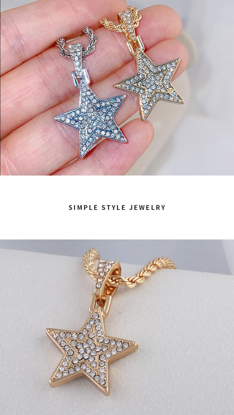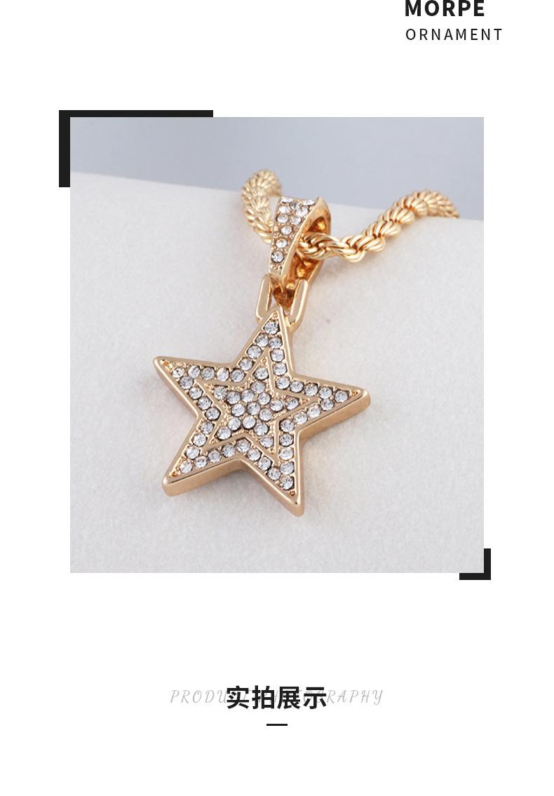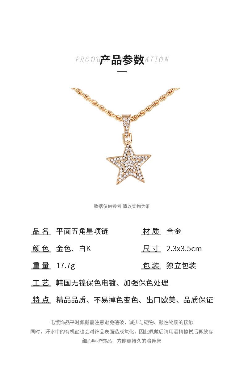 Collar con colgante de estrella de cinco puntas plana de hip hop, muy vendido en Europa y América, venta al por mayor, accesorios de moda urbana transfronteriza para hombres.