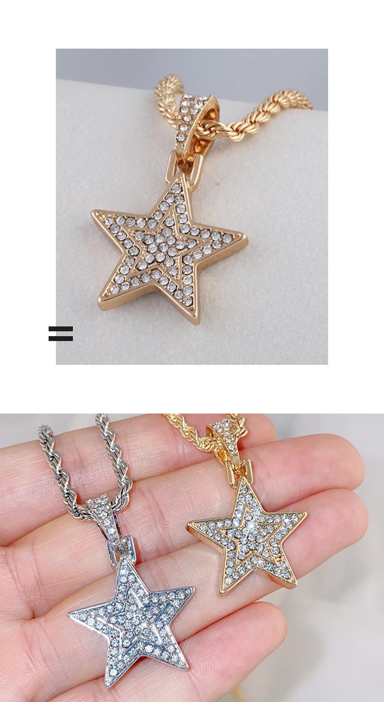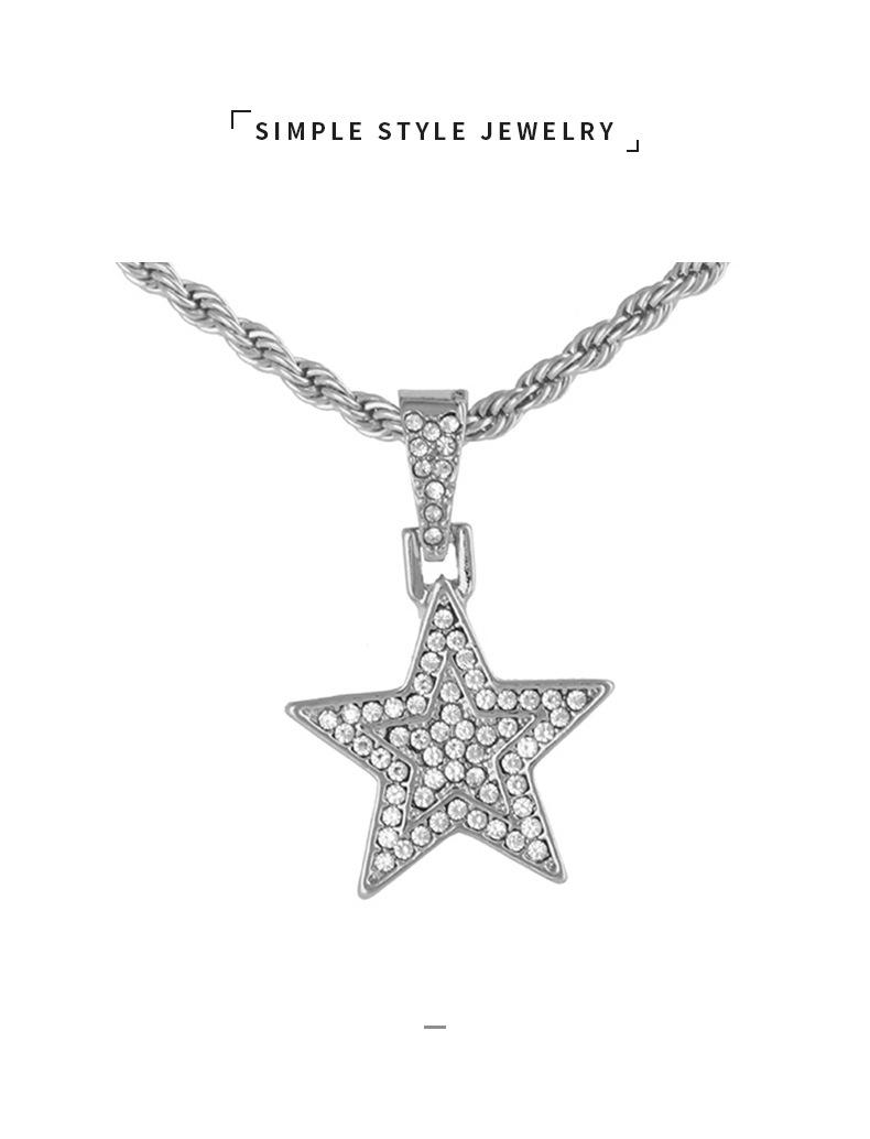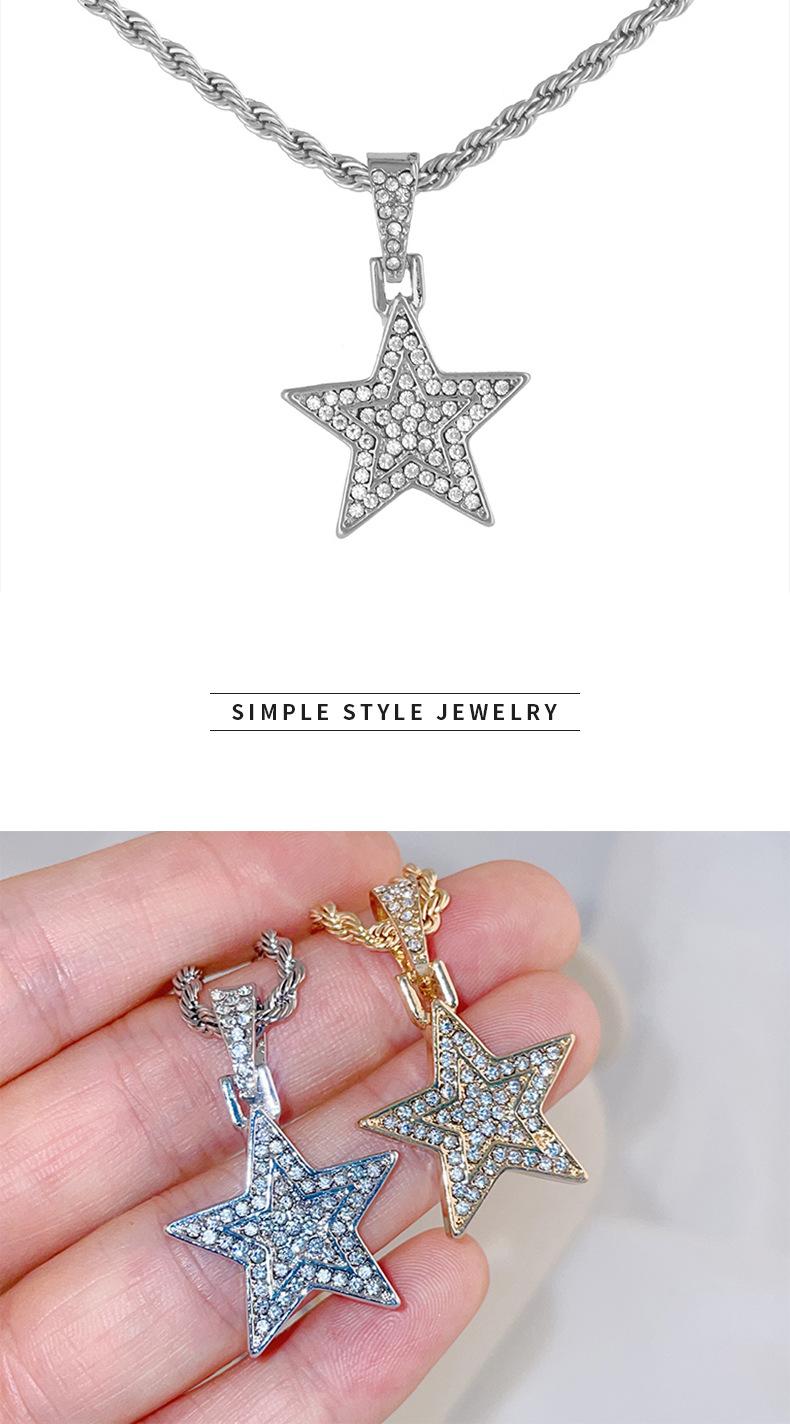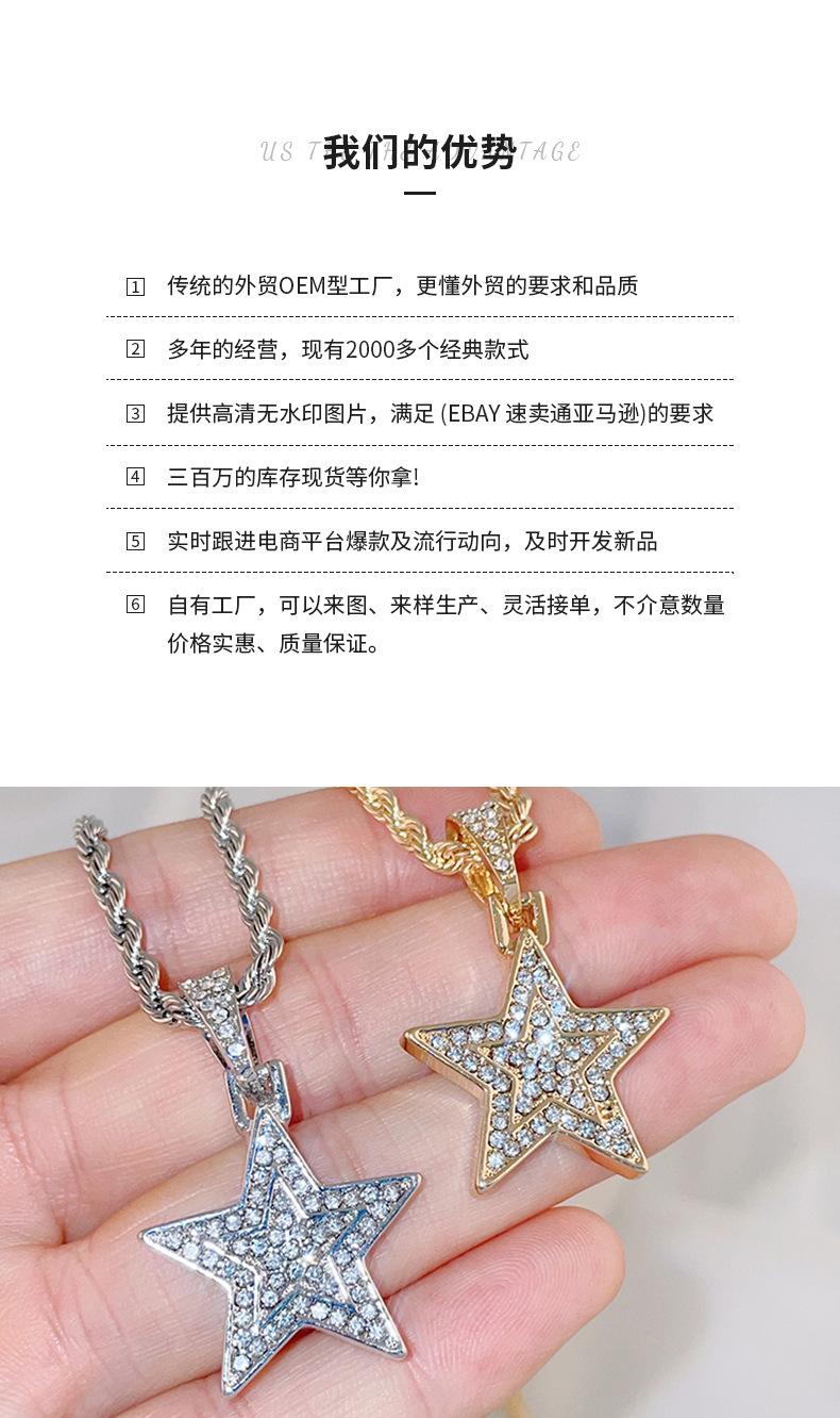 Collar con colgante de estrella de cinco puntas plana de hip hop, muy vendido en Europa y América, venta al por mayor, accesorios de moda urbana transfronteriza para hombres.
