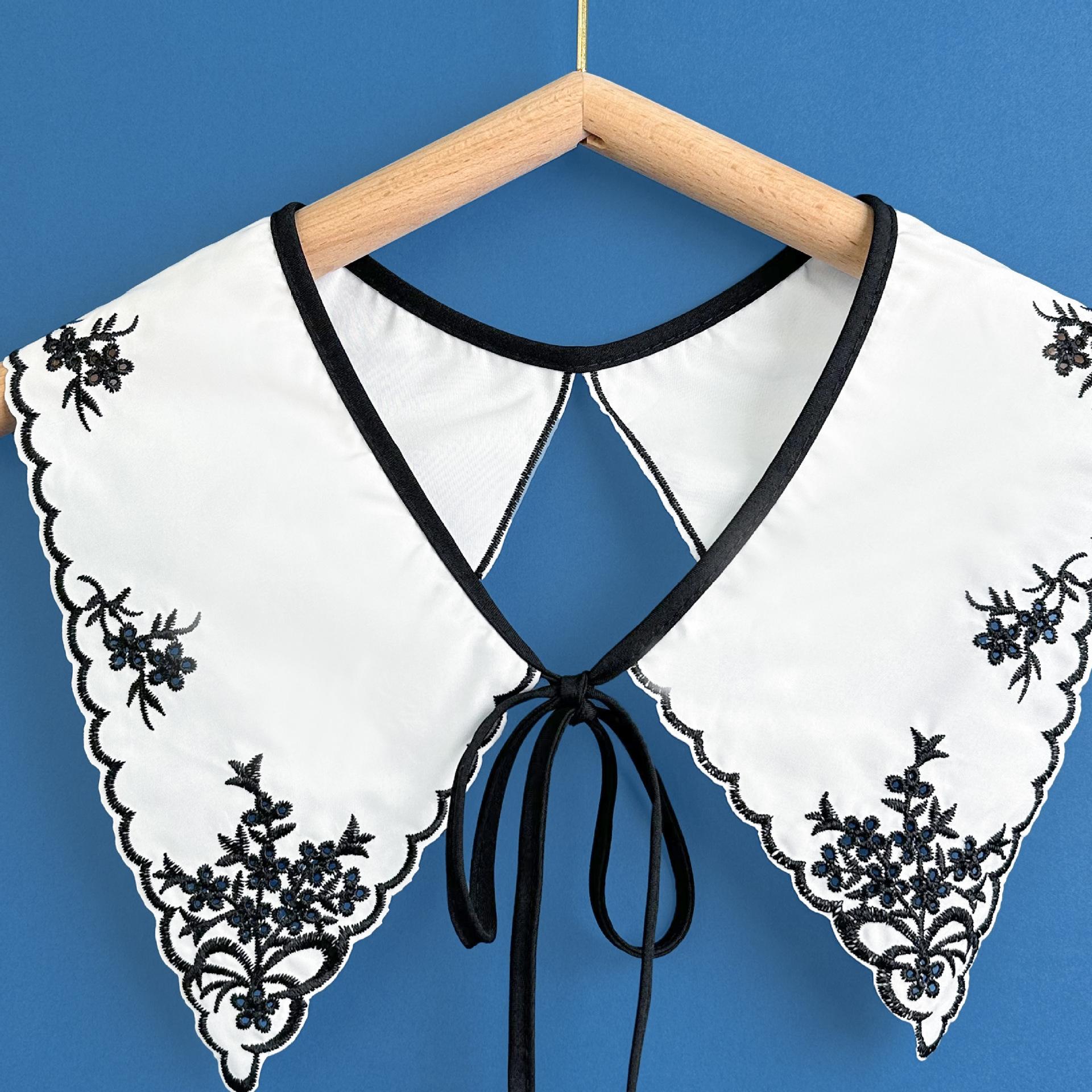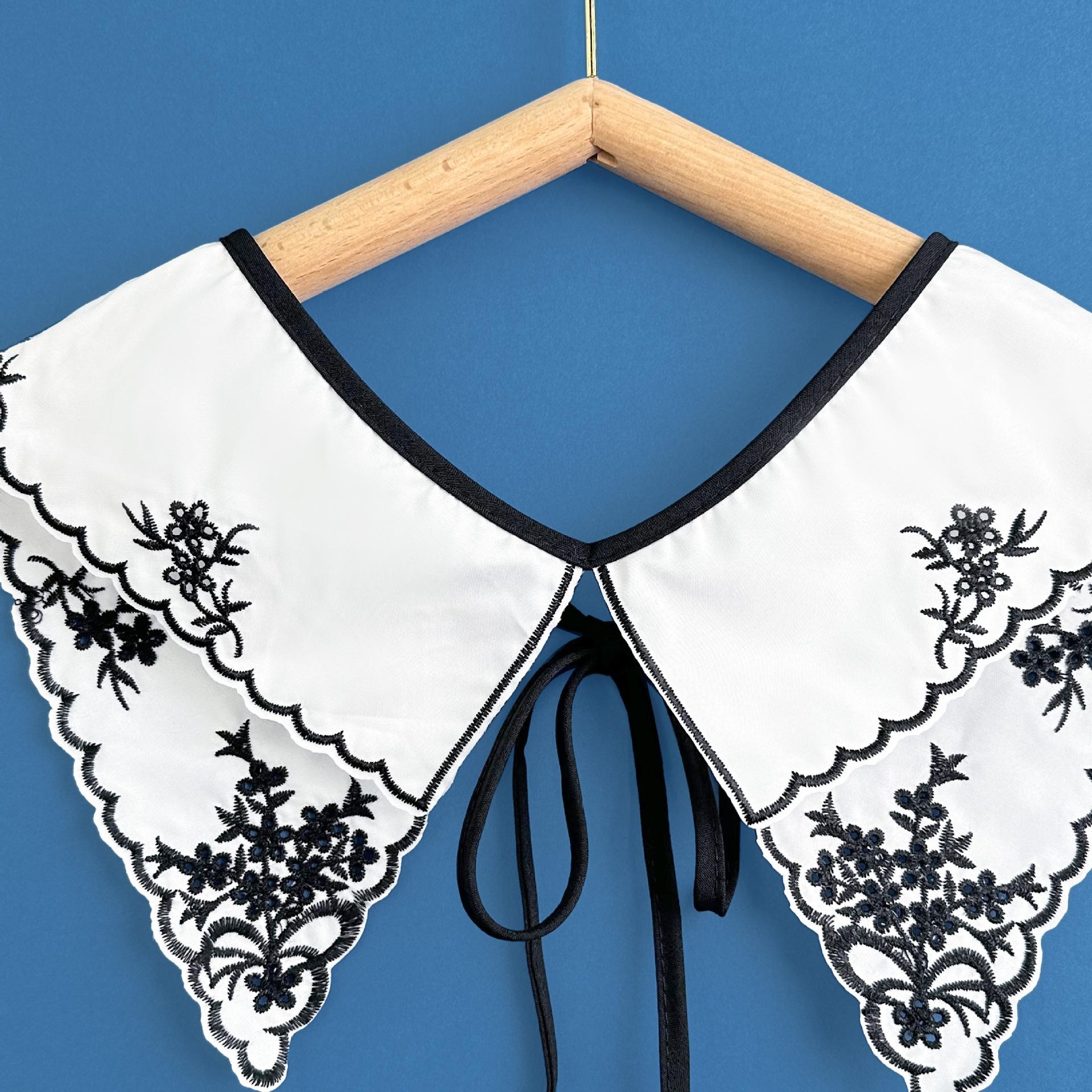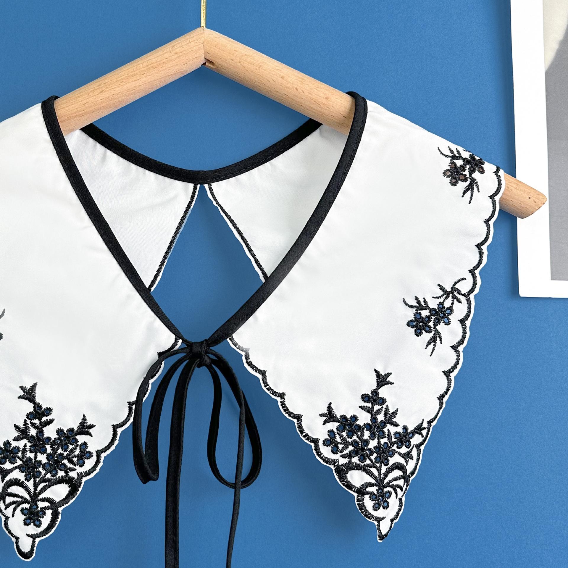 2025 Nuevo Estilo Coreano Bordado Recortado Cuello Falso para Mujer con Lazo y Chal Pequeño con Falda Cuello Decorativo