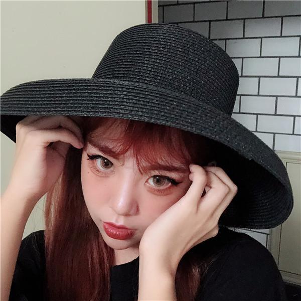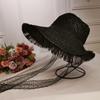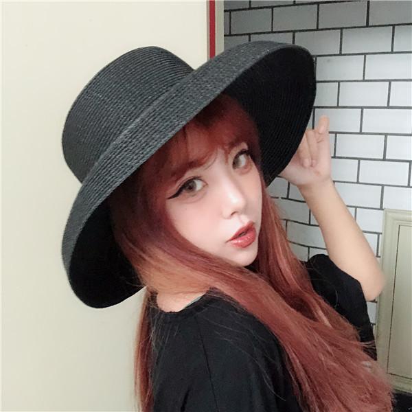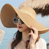 Sombrero de Paja de Ala Ancha Elegante Retro Estilo Británico para Mujer Vacaciones Costeras Plegable Protección Solar Sombrero para el Sol Sombrero de Playa de Verano