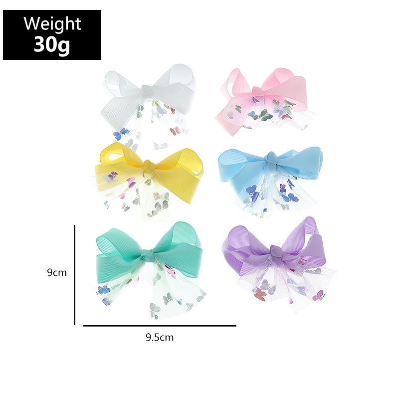 Nuevos accesorios para el cabello para niños transfronterizos, 6 piezas, cinta tejida a mano, color sólido, horquilla de lazo para niña, imagen de mariposa