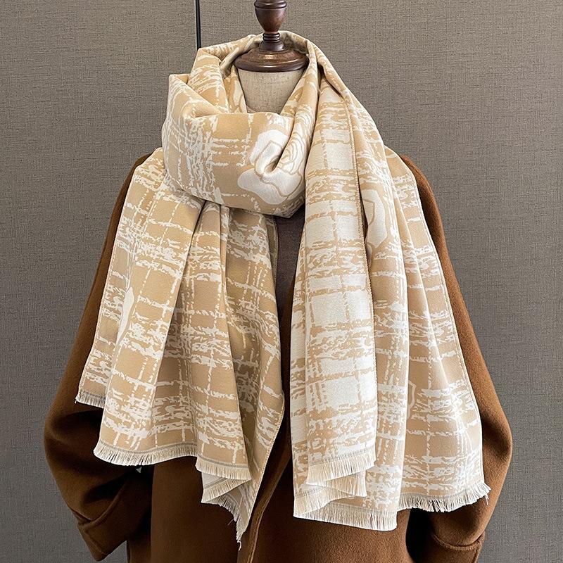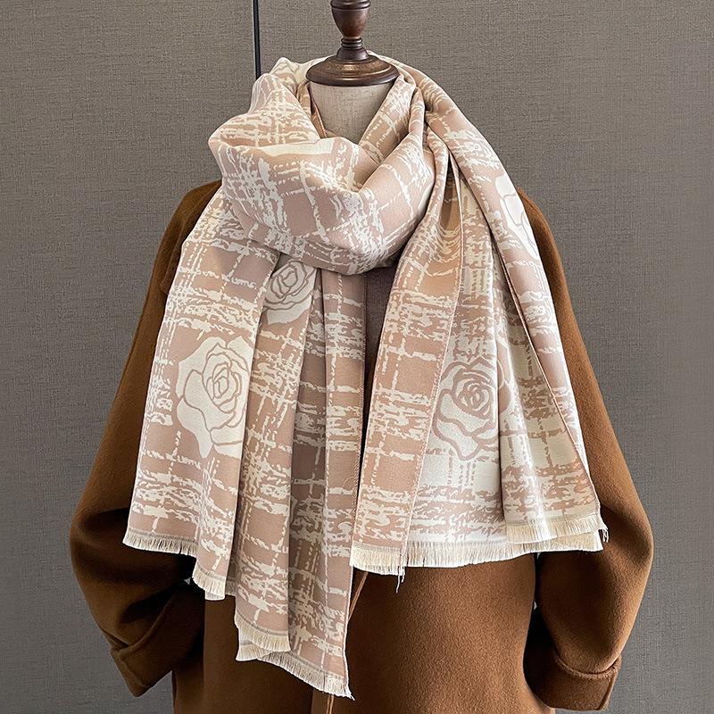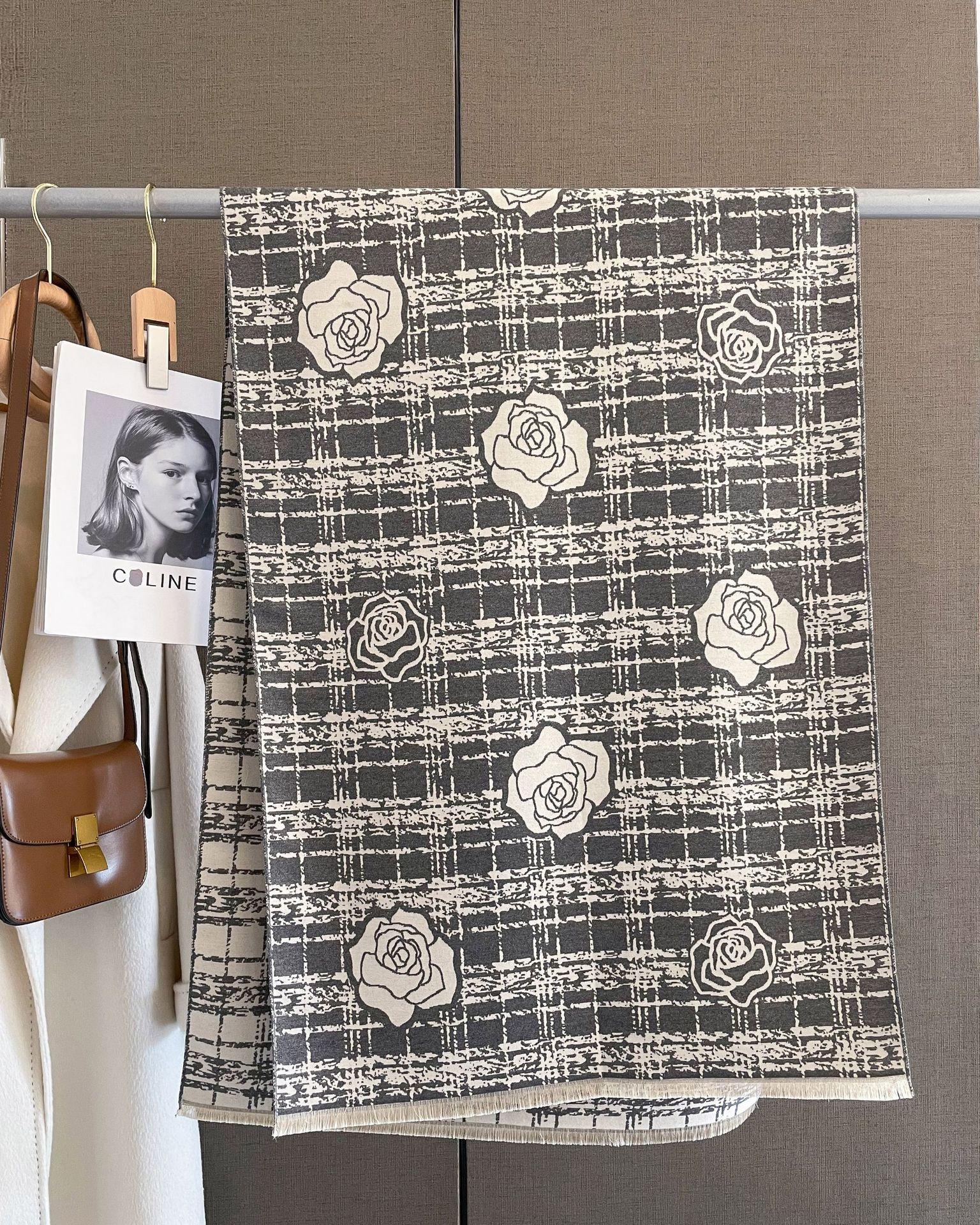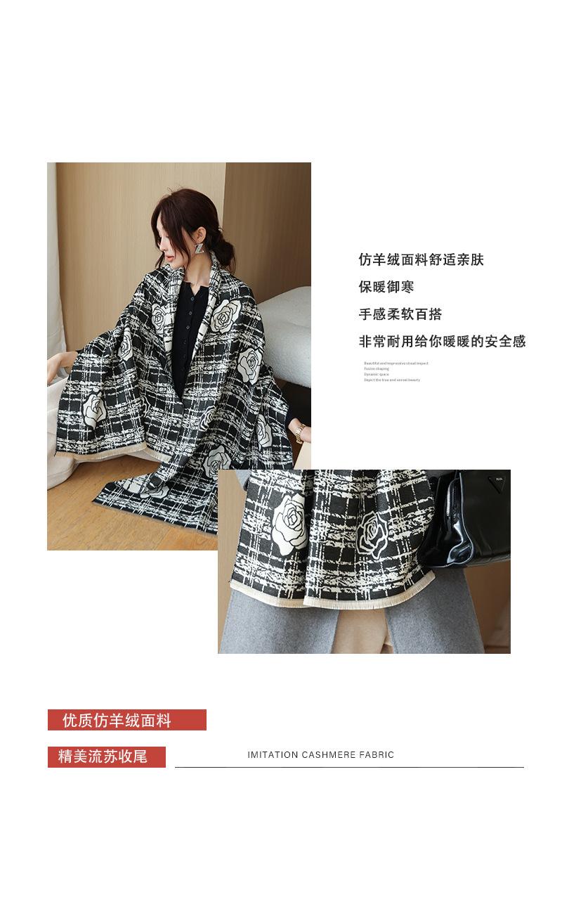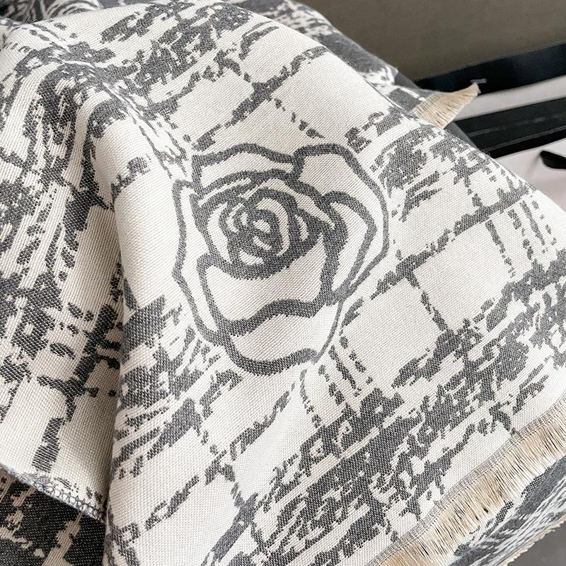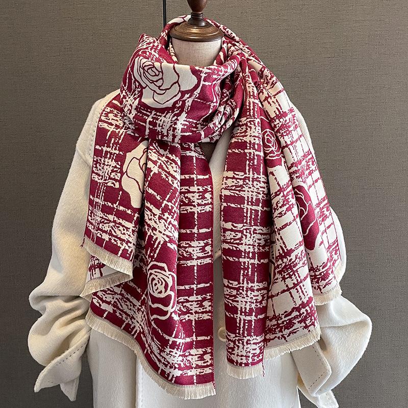 Bufanda de cachemira de imitación de camelia de estilo coreano para mujer, cálida y gruesa de invierno, bufanda de estudiante de doble cara, chal grande de doble cara para protegerse del frío.