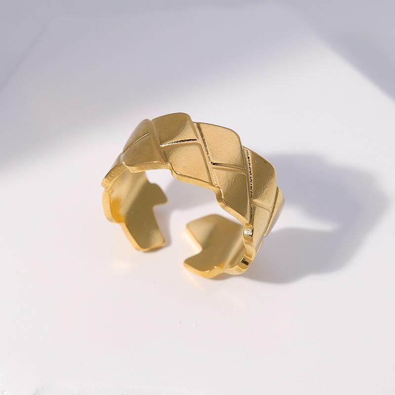Material: acero inoxidable Peso: 4,1 g Tamaño: Estándar de EE. UU. 7, 9 (abierto, ajustable) Color: acero, oro.