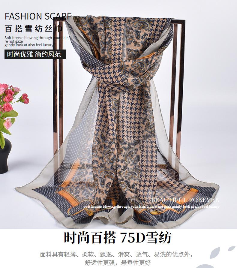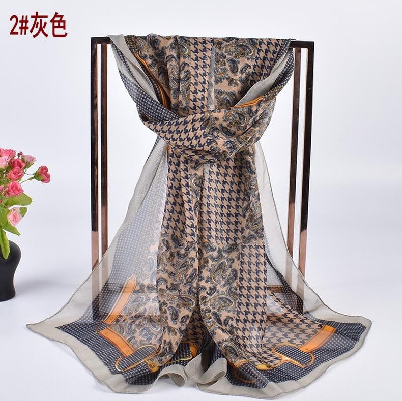 Bufanda larga de seda de gasa con estampado de anacardos y mil pájaros, estilo retro, primavera y verano, nueva moda transfronteriza, venta al por mayor, protector solar, gasa para mujer