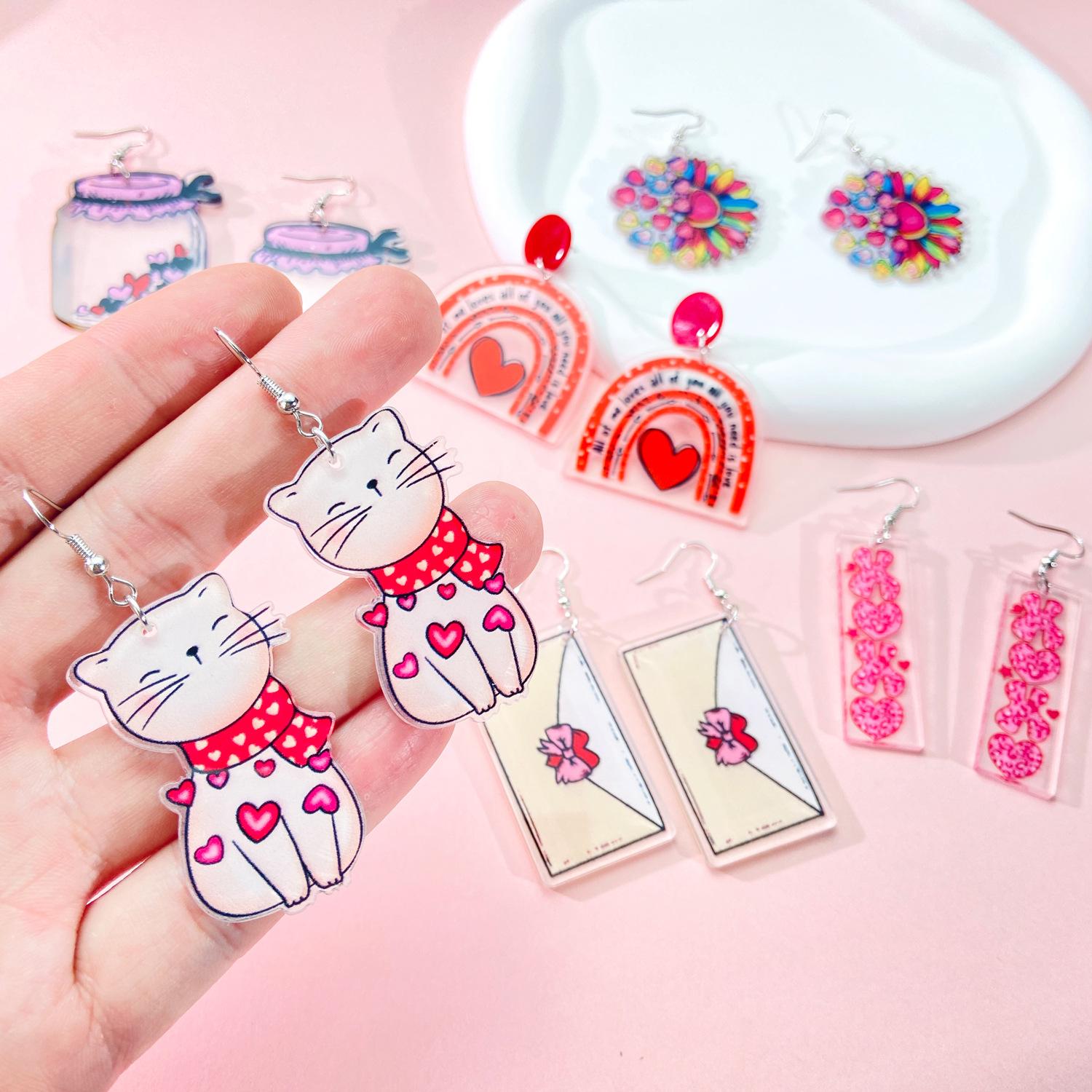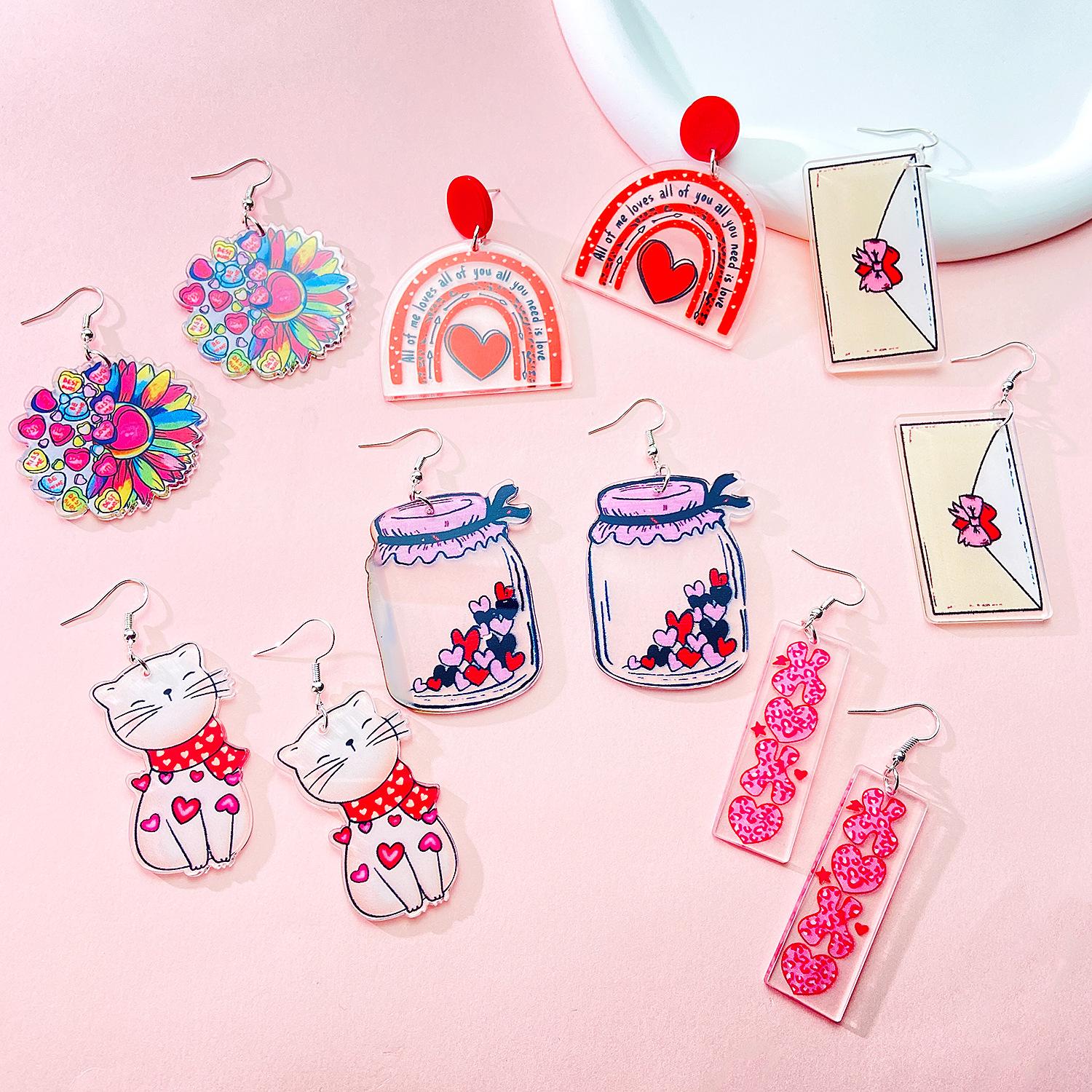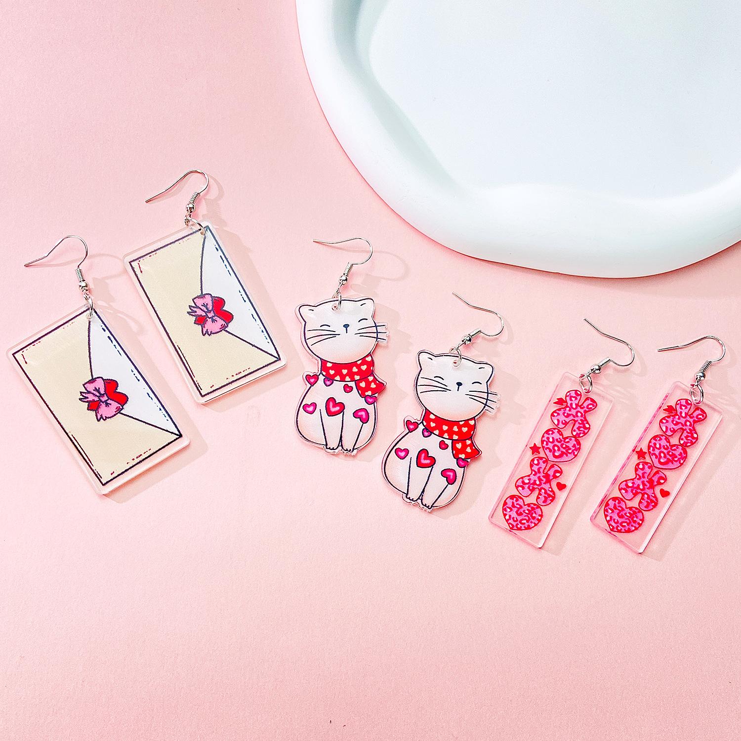 Pendientes transfronterizos nuevos de San Valentín para mujer, diseño creativo retro, pendientes con borlas de corazón rosa, estilo europeo y americano.