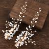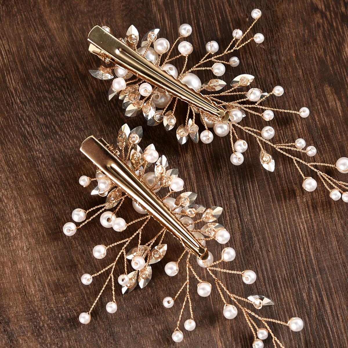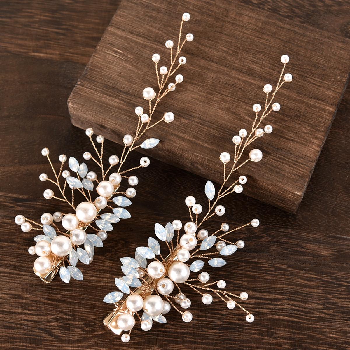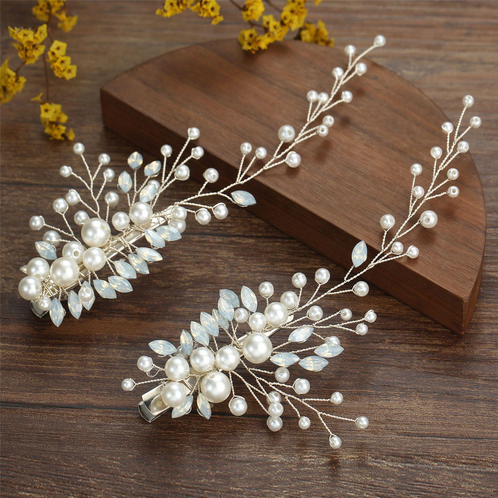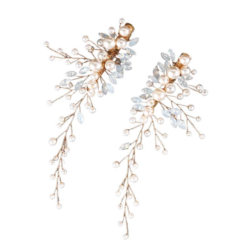 Un conjunto de 2 horquillas hechas a mano de proteína de perla ojo de caballo de cristal diamante par clip tocado de boda nupcial accesorios para el cabello