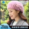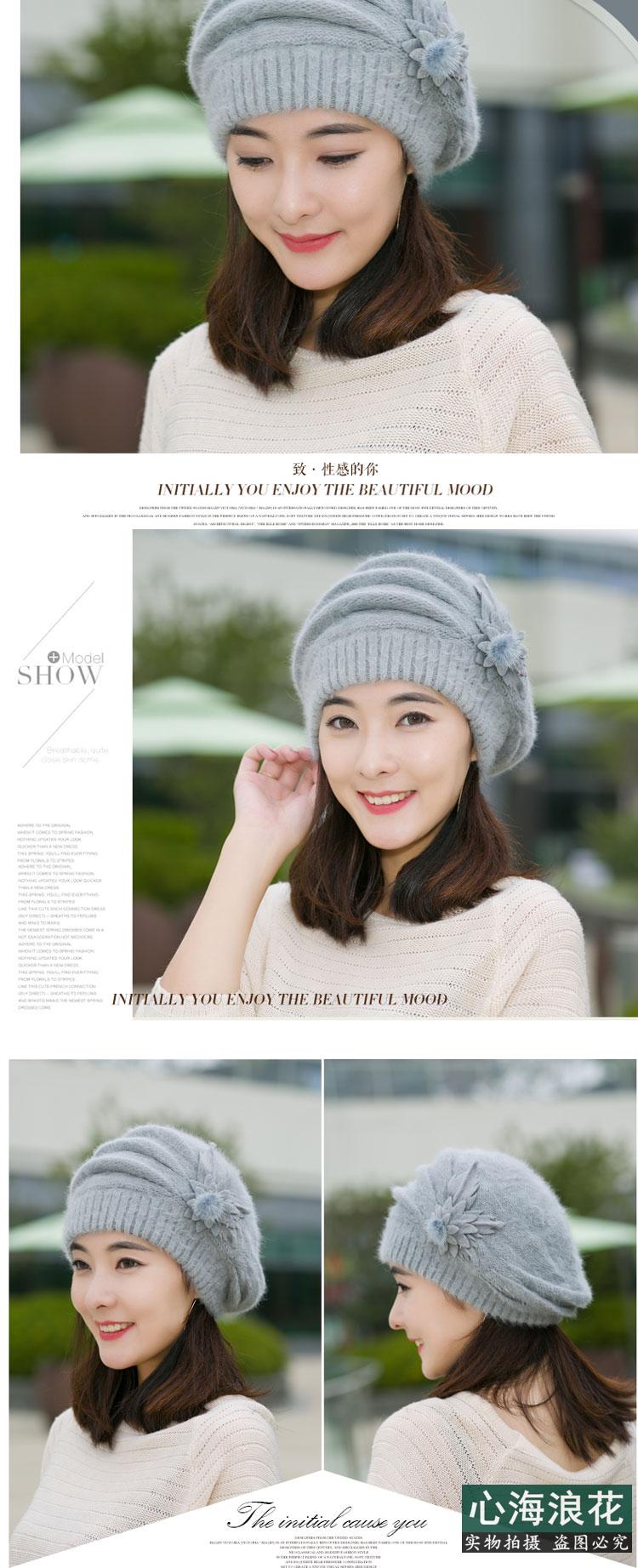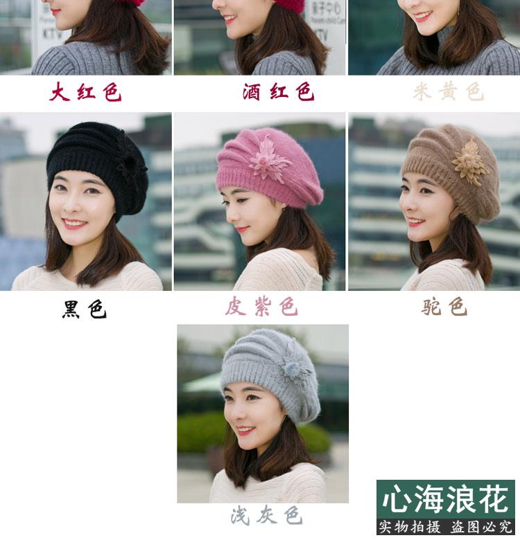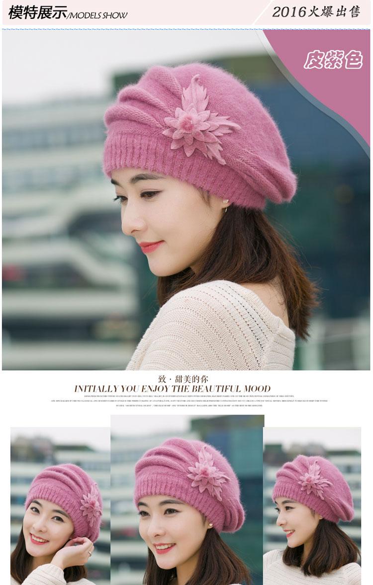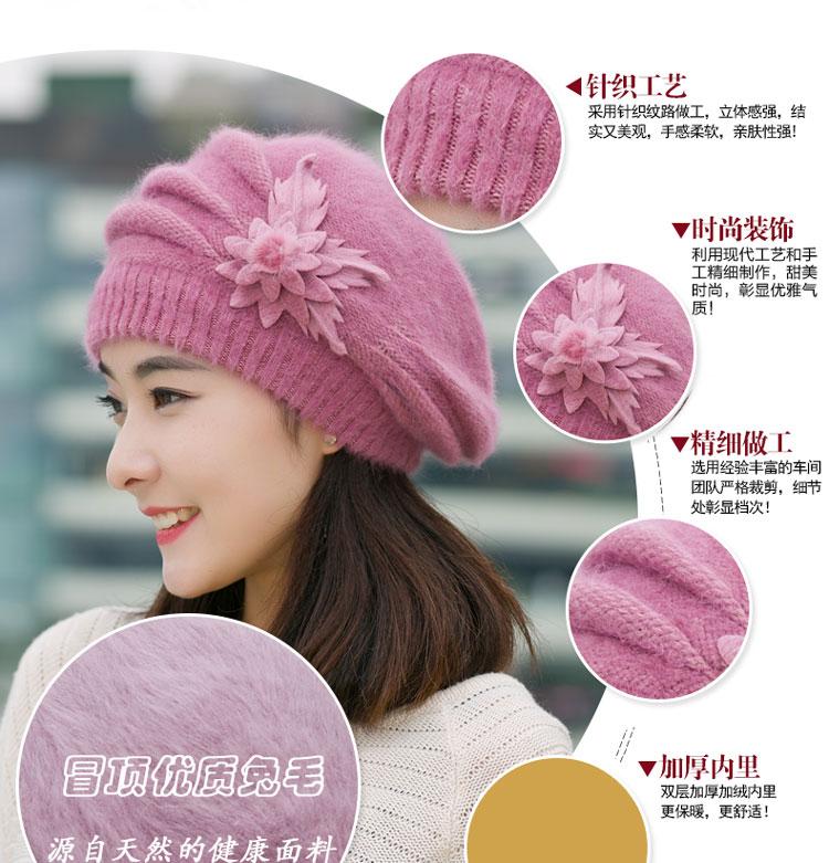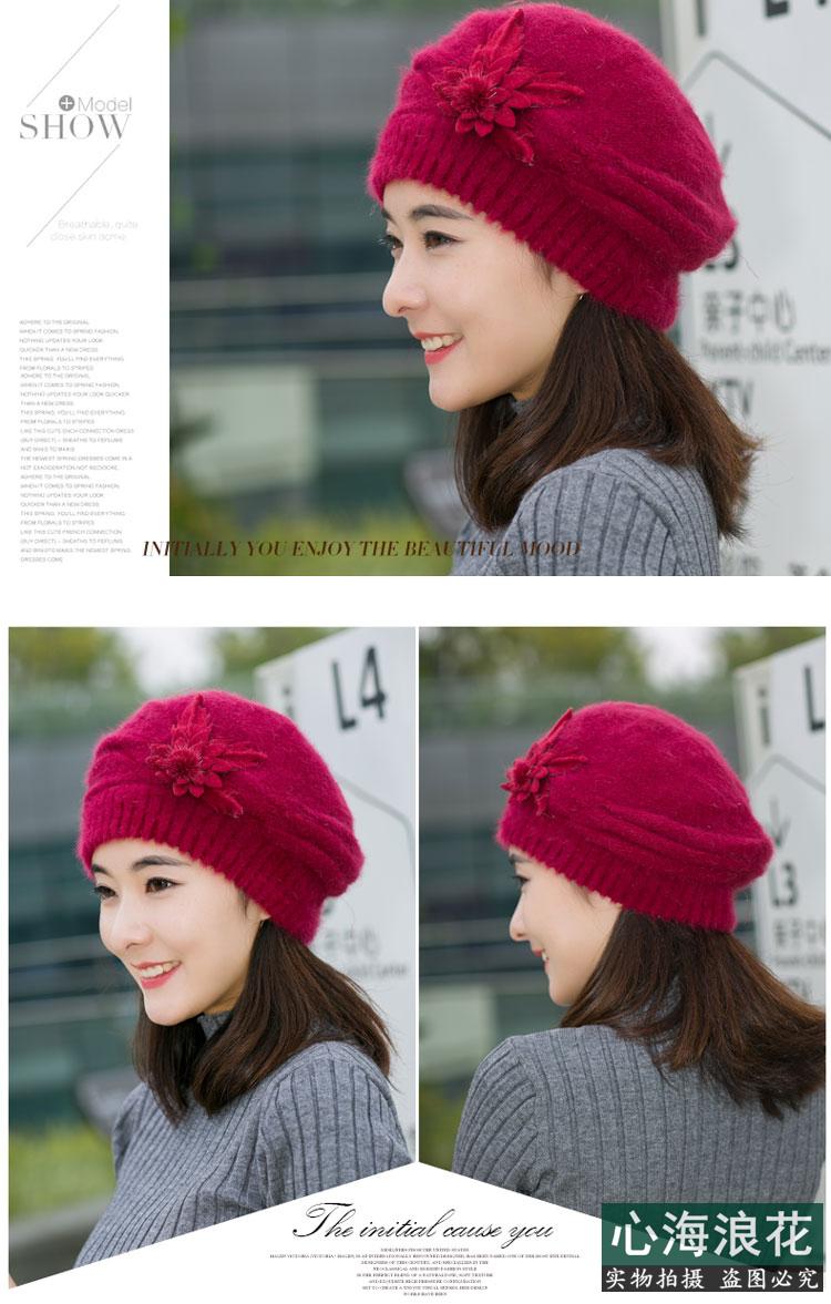 Gorro de invierno para mujer, estilo coreano, con flores, de piel de conejo, boina gruesa, gorro de lana de punto cálido, gorro para madre de otoño e invierno.