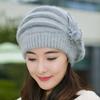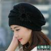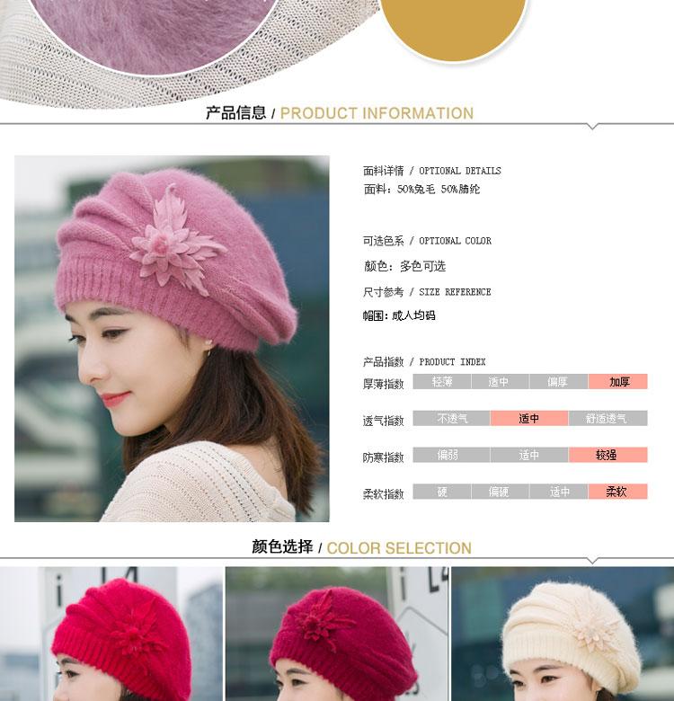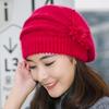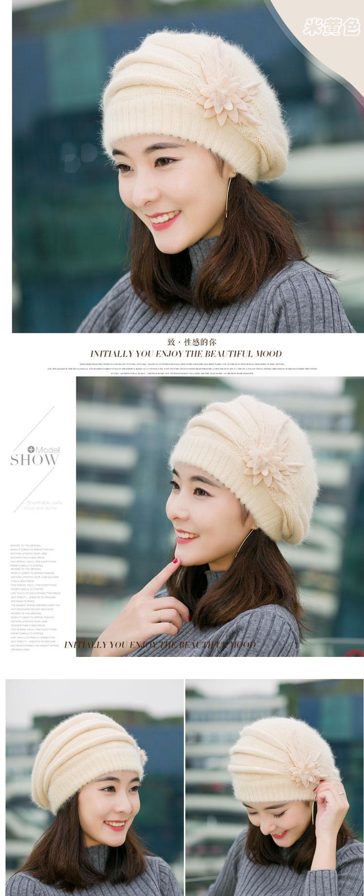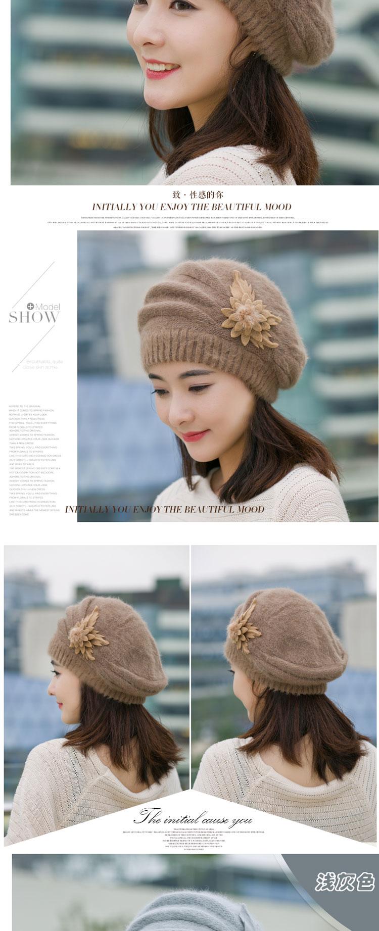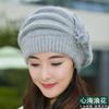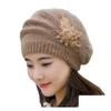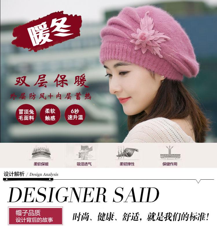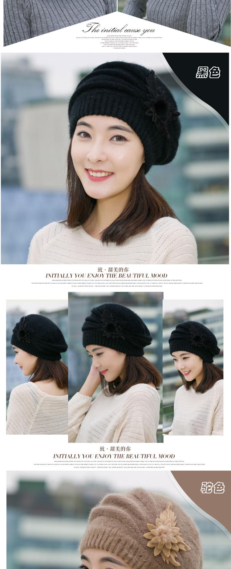 Gorro de invierno para mujer, estilo coreano, con flores, de piel de conejo, boina gruesa, gorro de lana de punto cálido, gorro para madre de otoño e invierno.