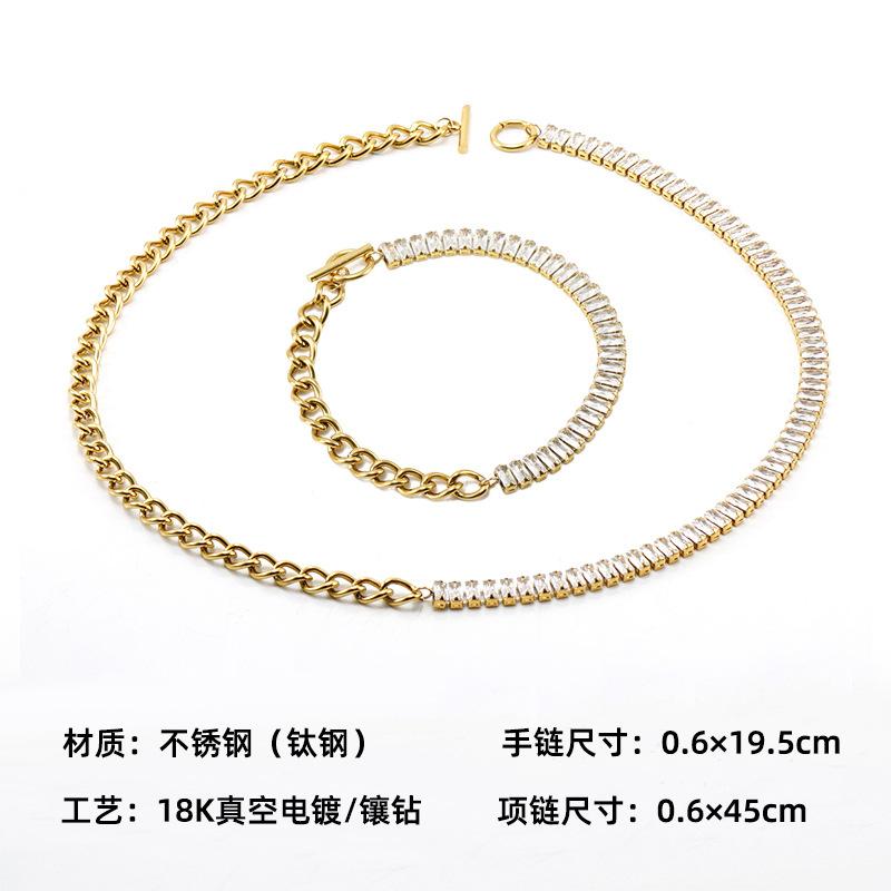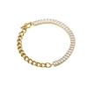 Moda transfronteriza acero de titanio diamante collar cadena de tenis femenino Europeo y Americano oro 18K acero inoxidable pulsera hebilla ot joyería al por mayor
