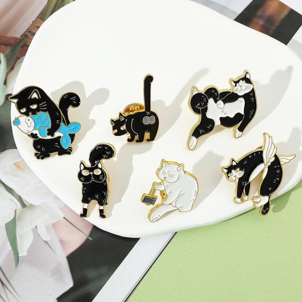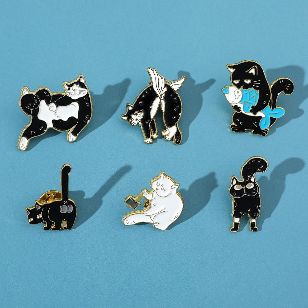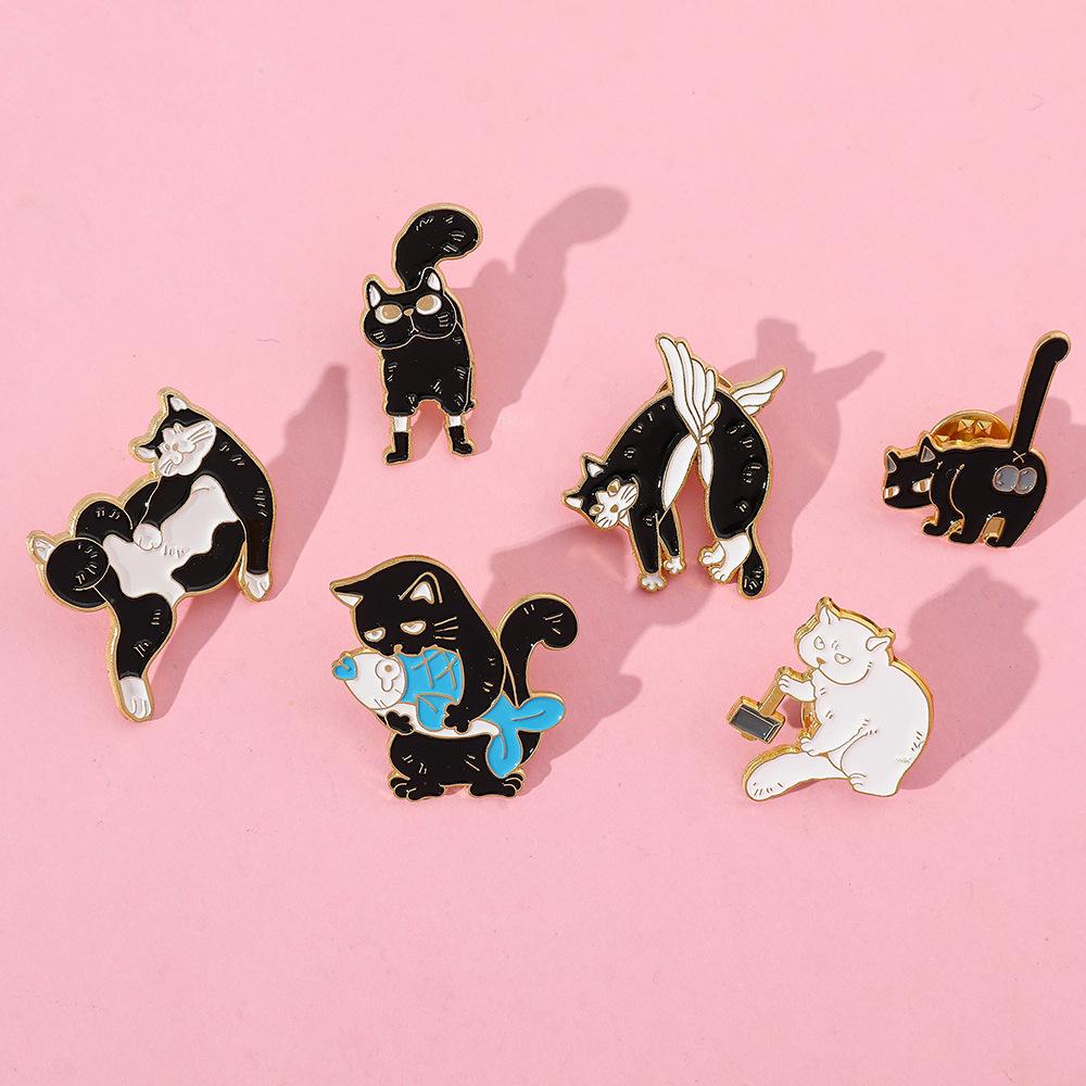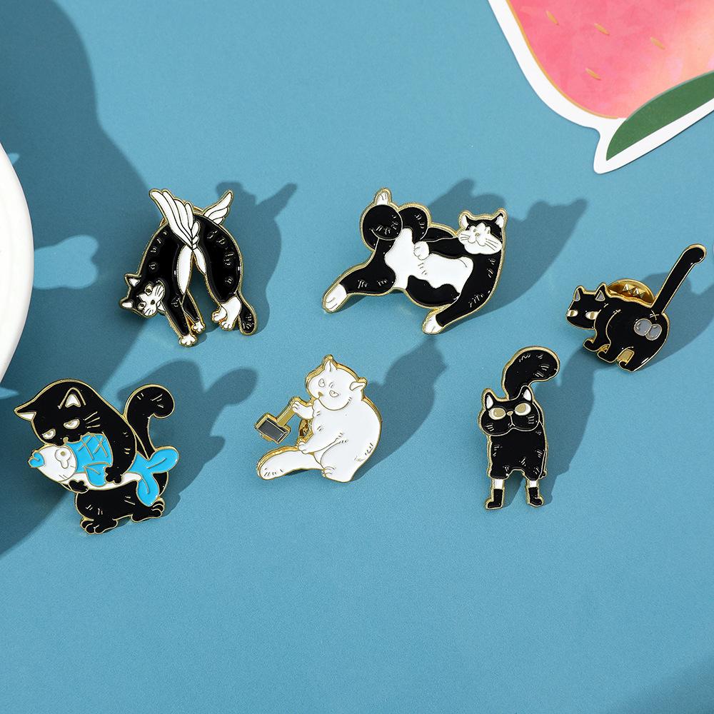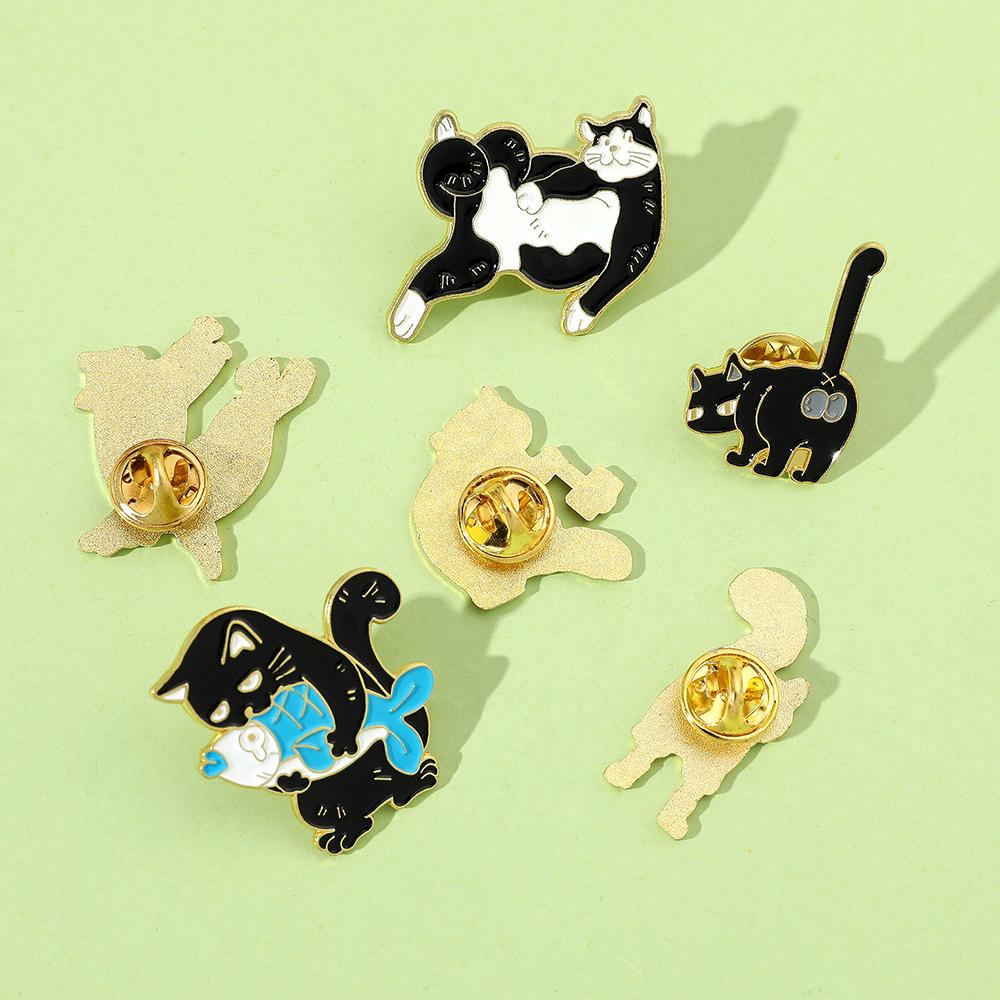 Broche de gato con personalidad creativa de dibujos animados, lindo gatito perezoso, insignia de metal, hebilla de toalla de seda, accesorios para bolsos, pin de moda