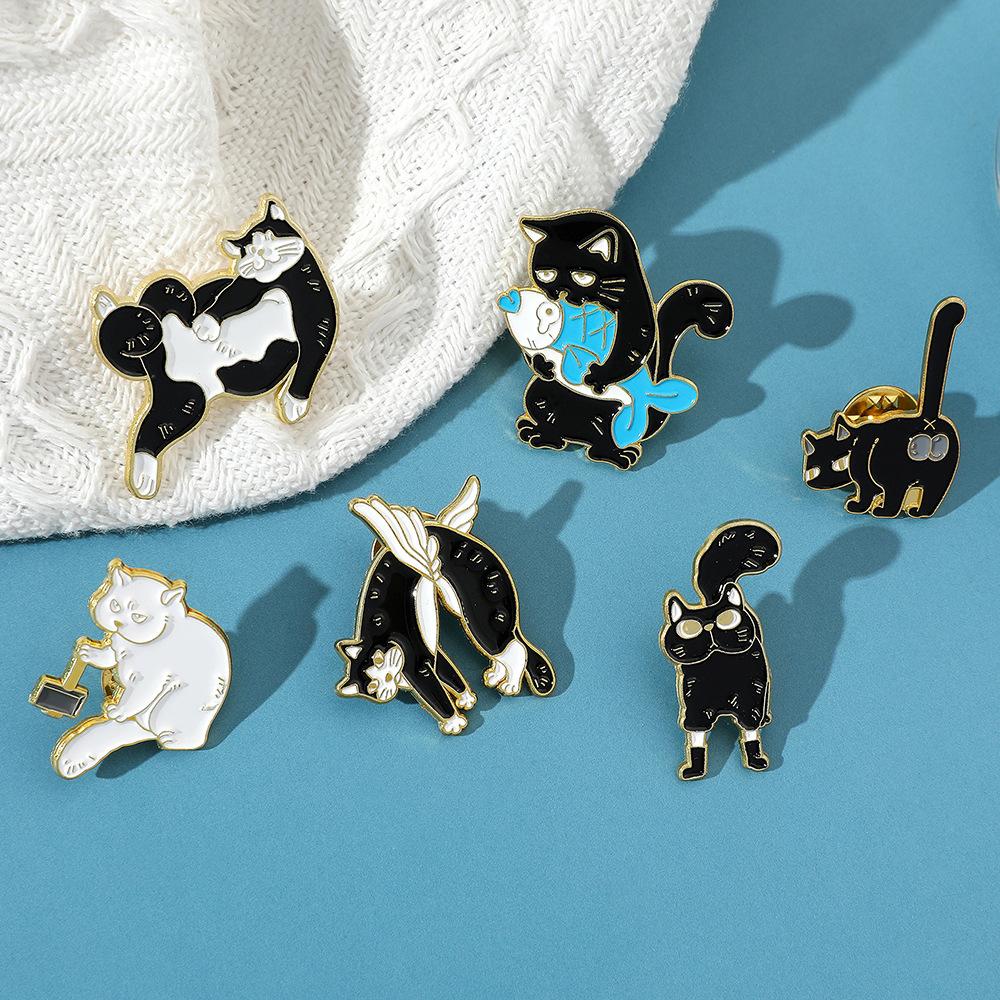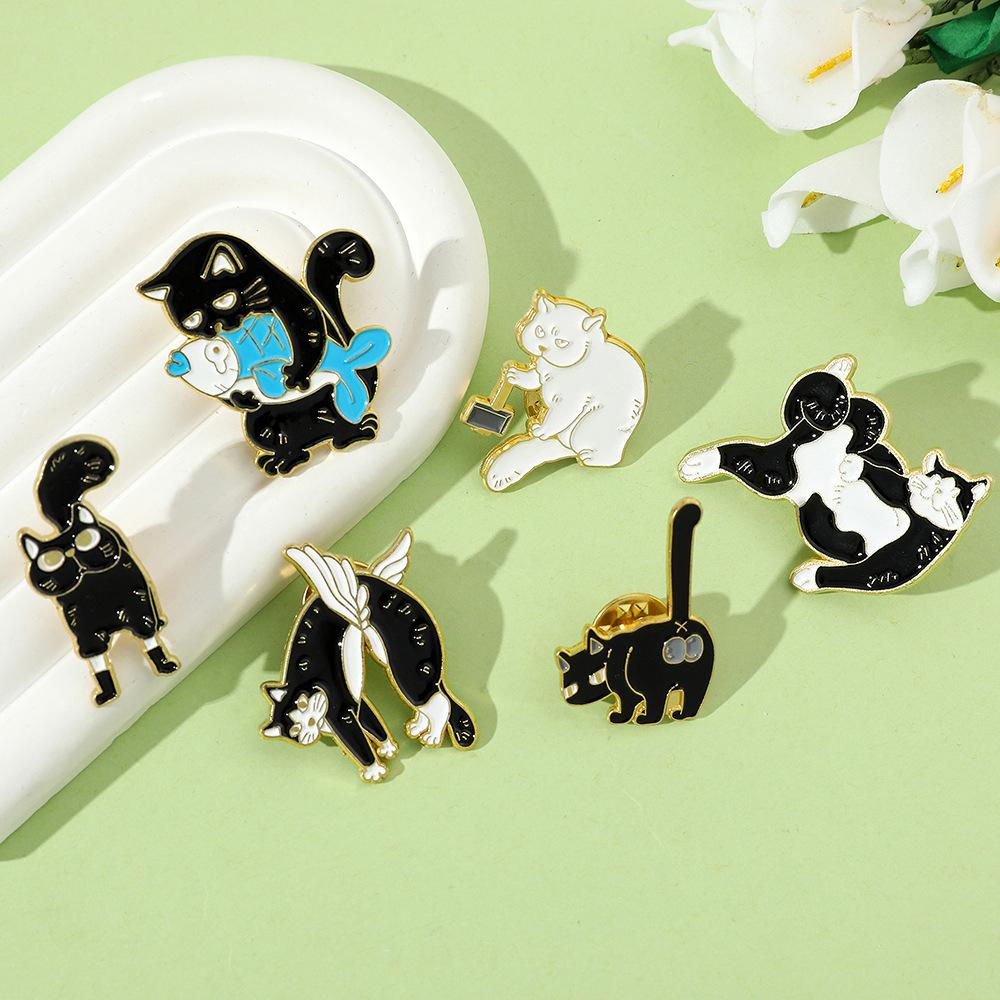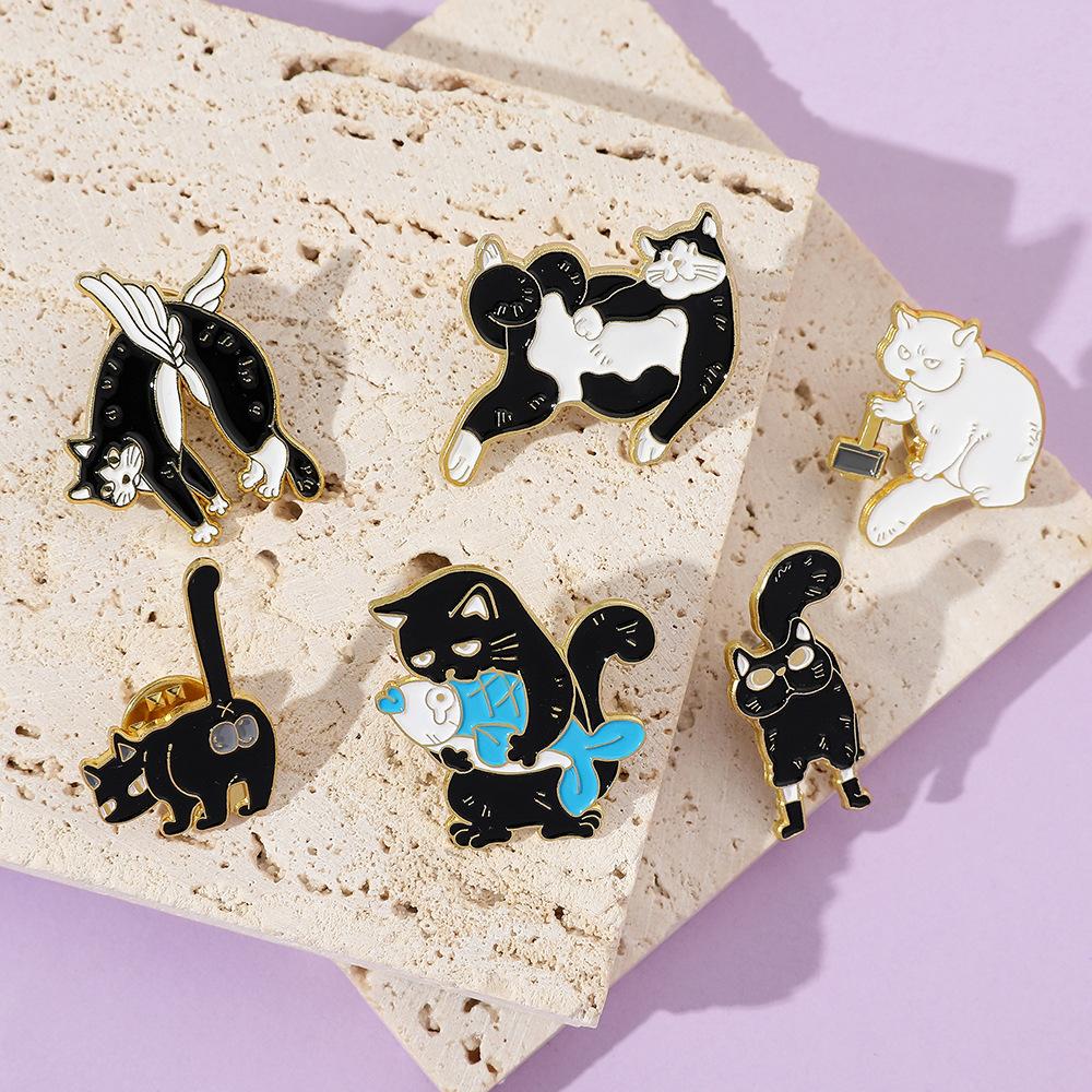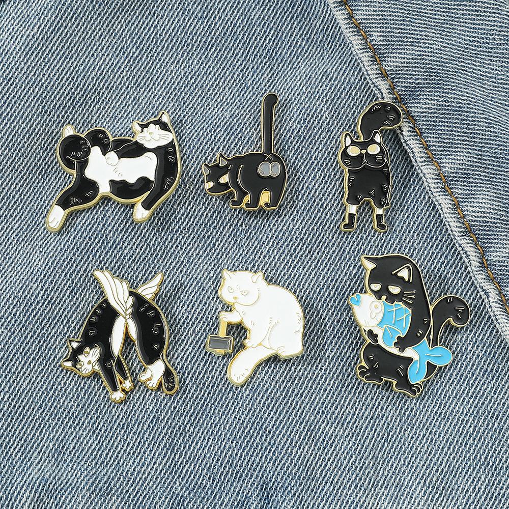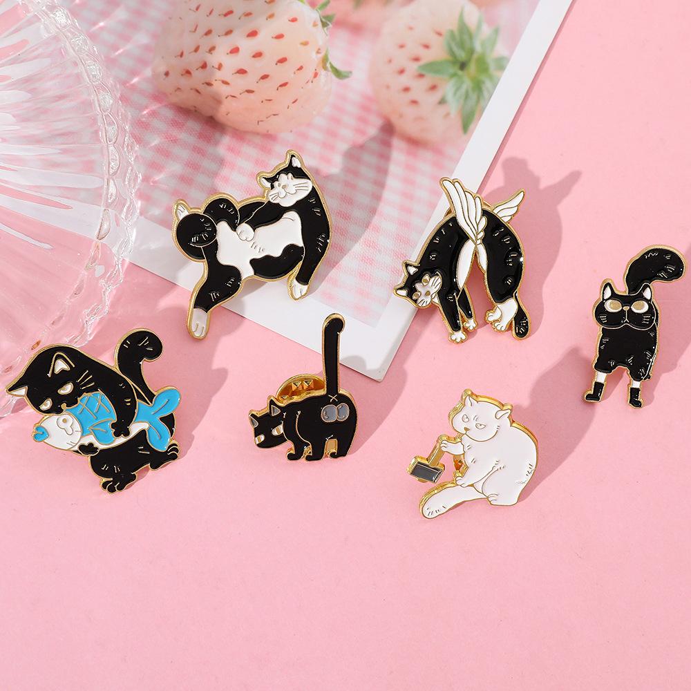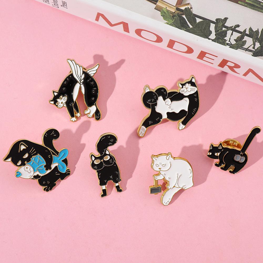 Broche de gato con personalidad creativa de dibujos animados, lindo gatito perezoso, insignia de metal, hebilla de toalla de seda, accesorios para bolsos, pin de moda