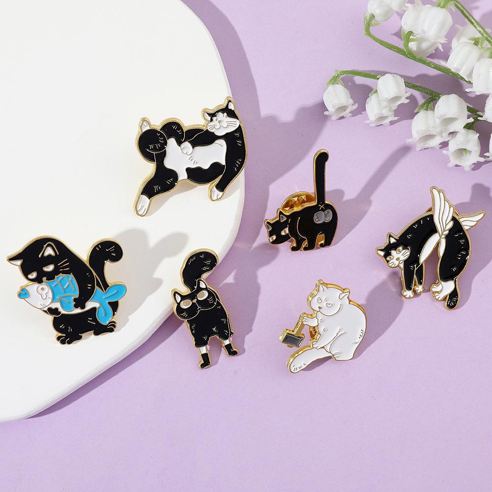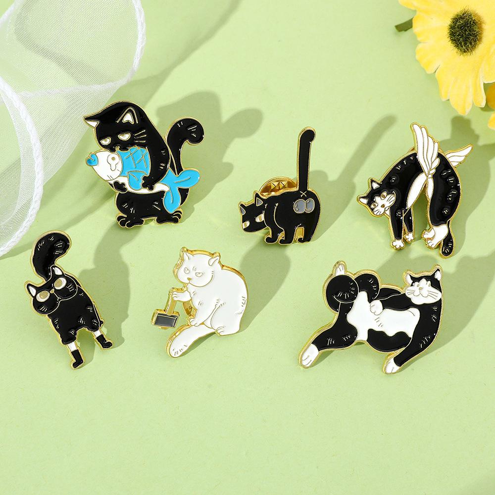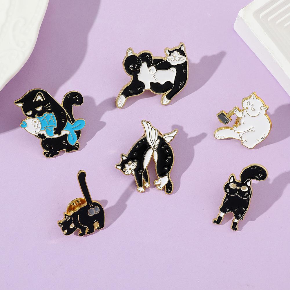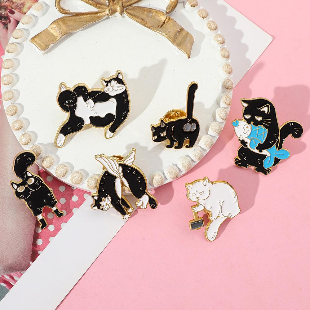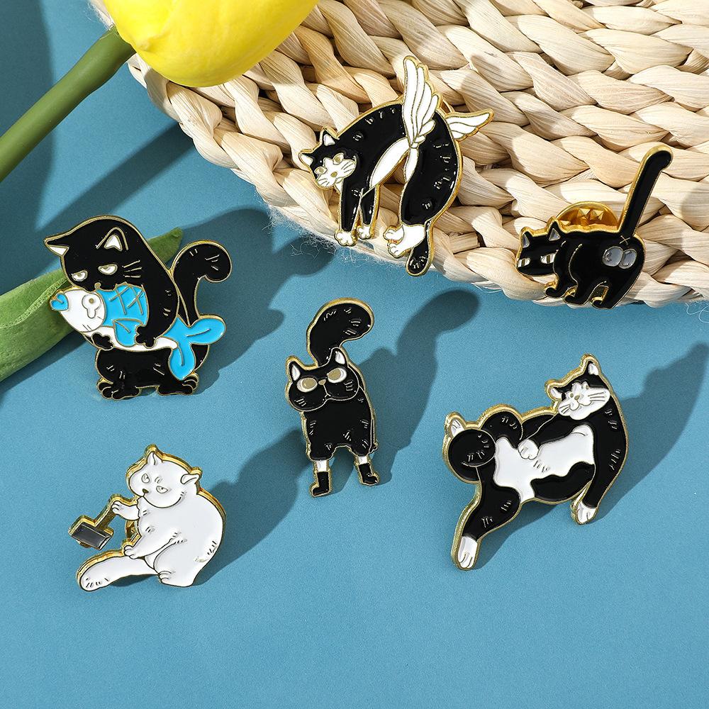 Broche de gato con personalidad creativa de dibujos animados, lindo gatito perezoso, insignia de metal, hebilla de toalla de seda, accesorios para bolsos, pin de moda