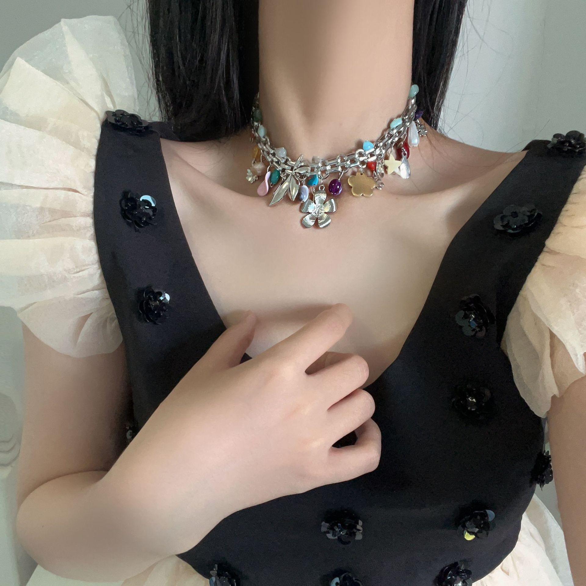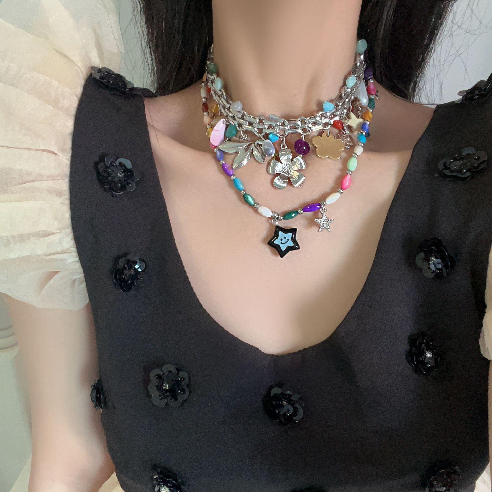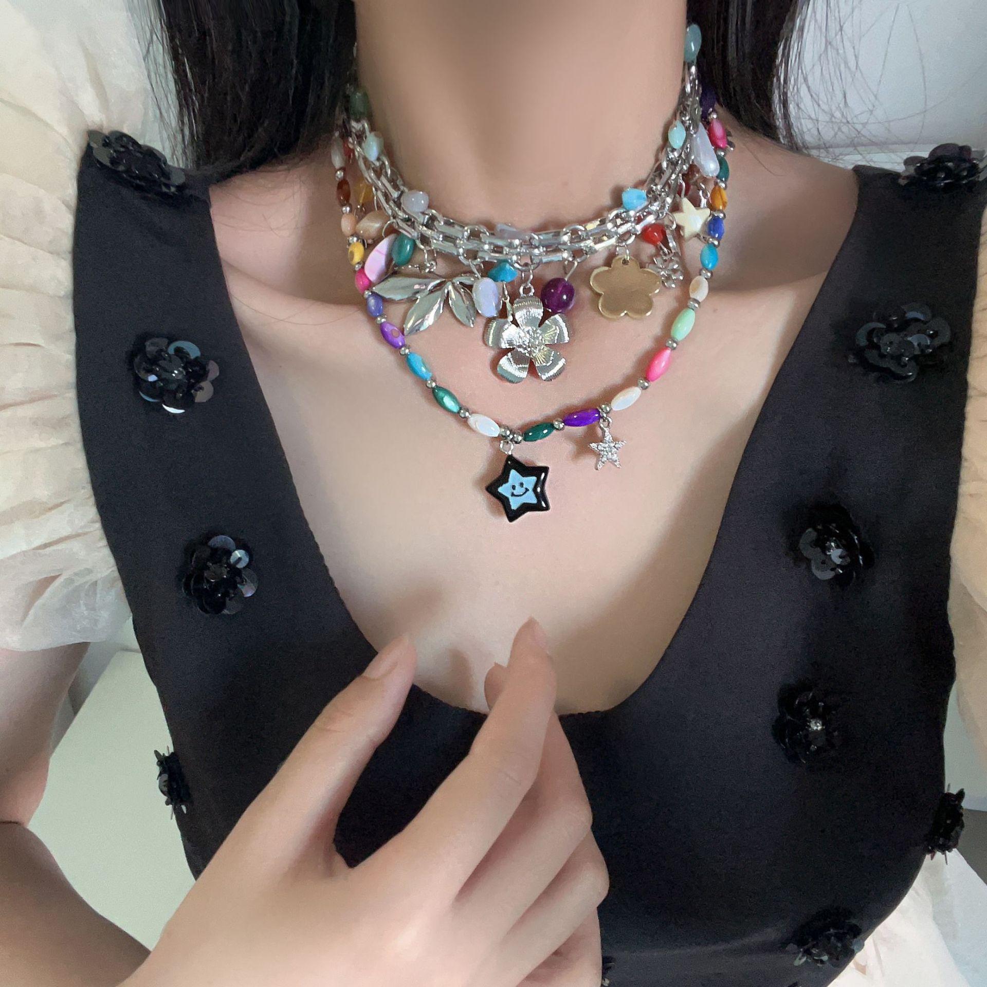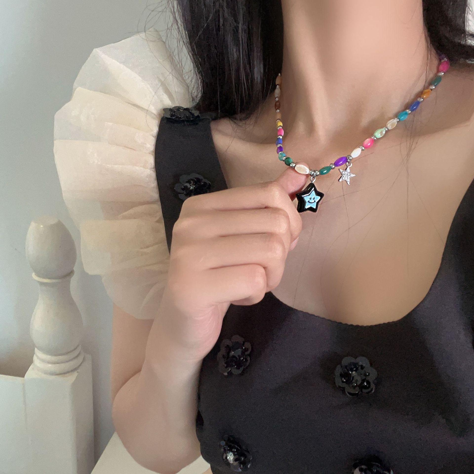 Collar de dopamina de color 2023, nuevo estilo popular, accesorios de nicho de lujo ligeros para mujer, cadena de clavícula de estrella de alta calidad, dulce