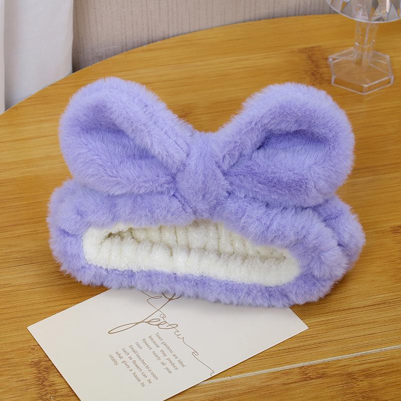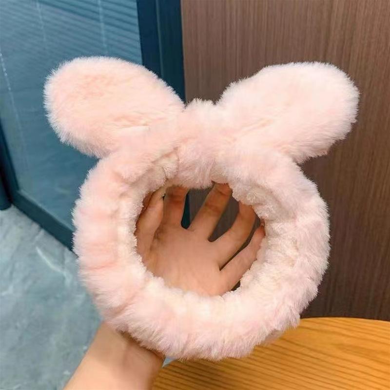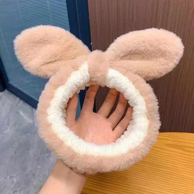 Banda para el cabello con orejas de conejo, banda para el cabello con lavado facial, banda especial para el cabello, lazo de invierno, tocado de felpa de piel de conejo de imitación