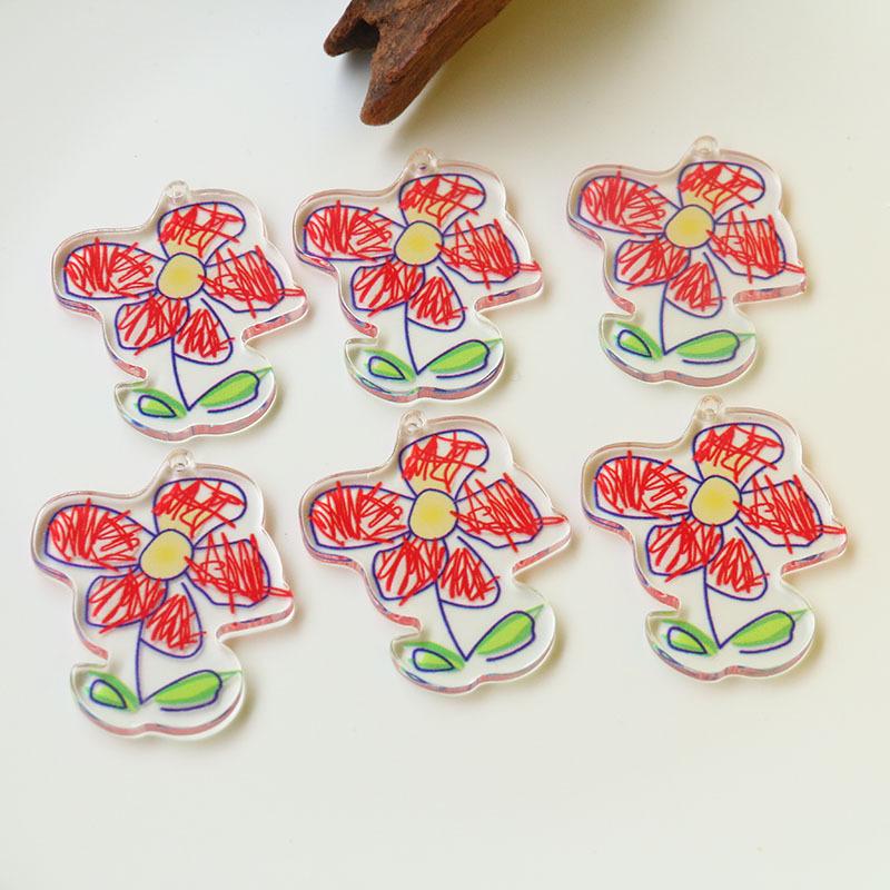 Grafiti de personalidad coreana, pequeña flor roja, accesorios de resina para bricolaje, pendientes hechos a mano, accesorios para el cabello, tocado, material de carcasa de teléfono móvil, venta al por mayor