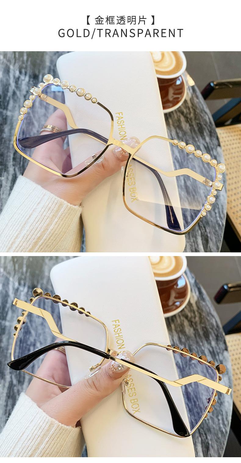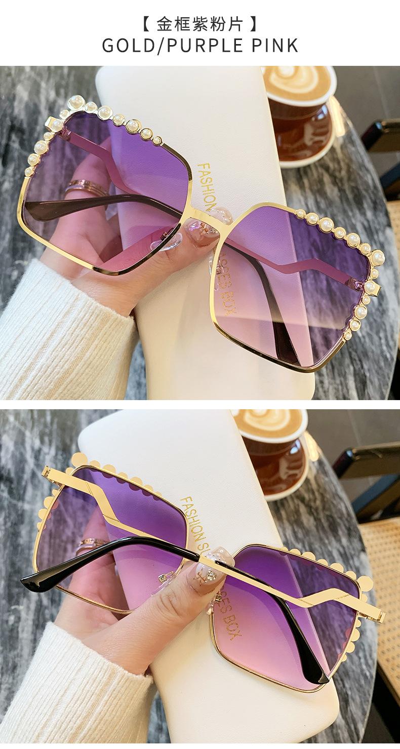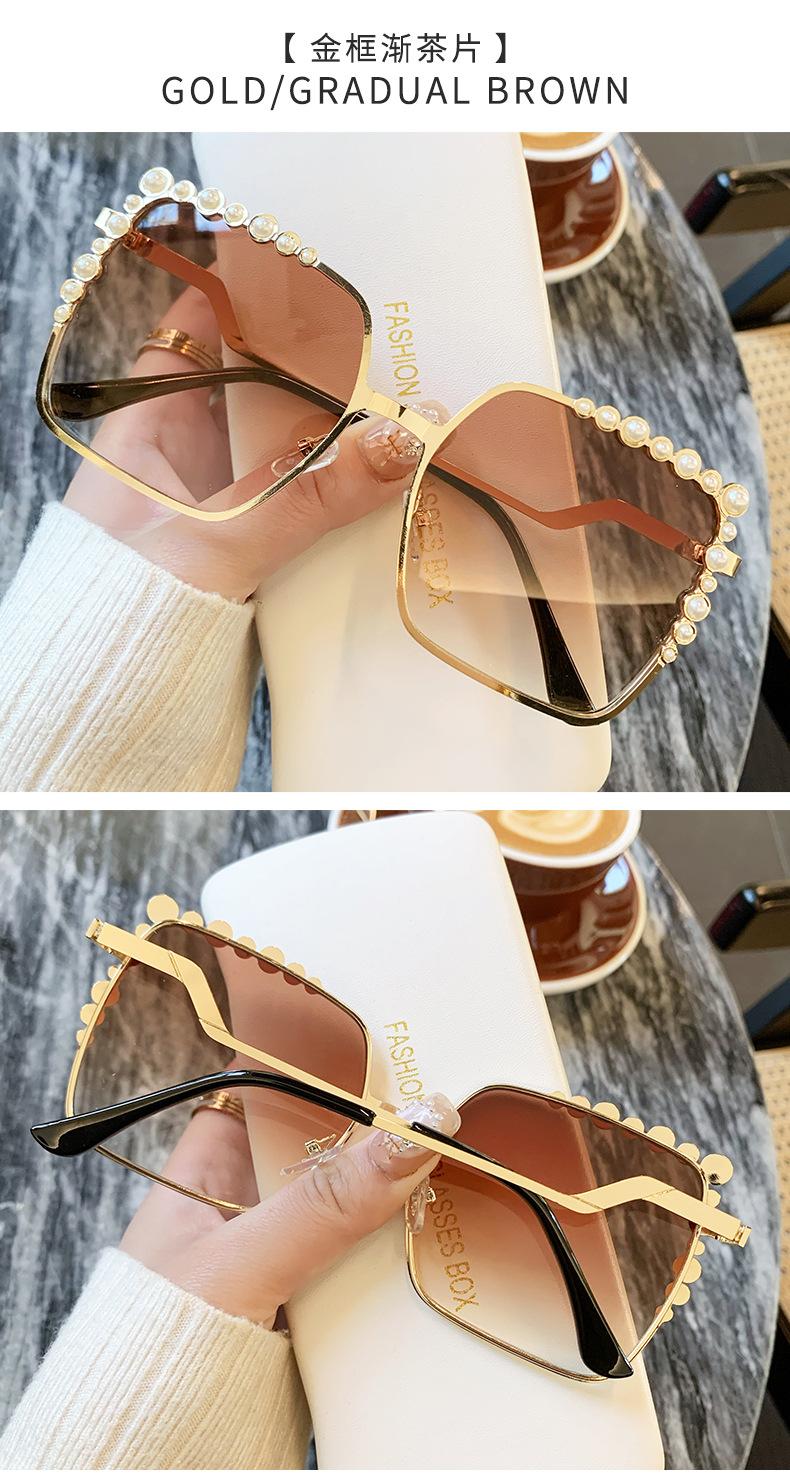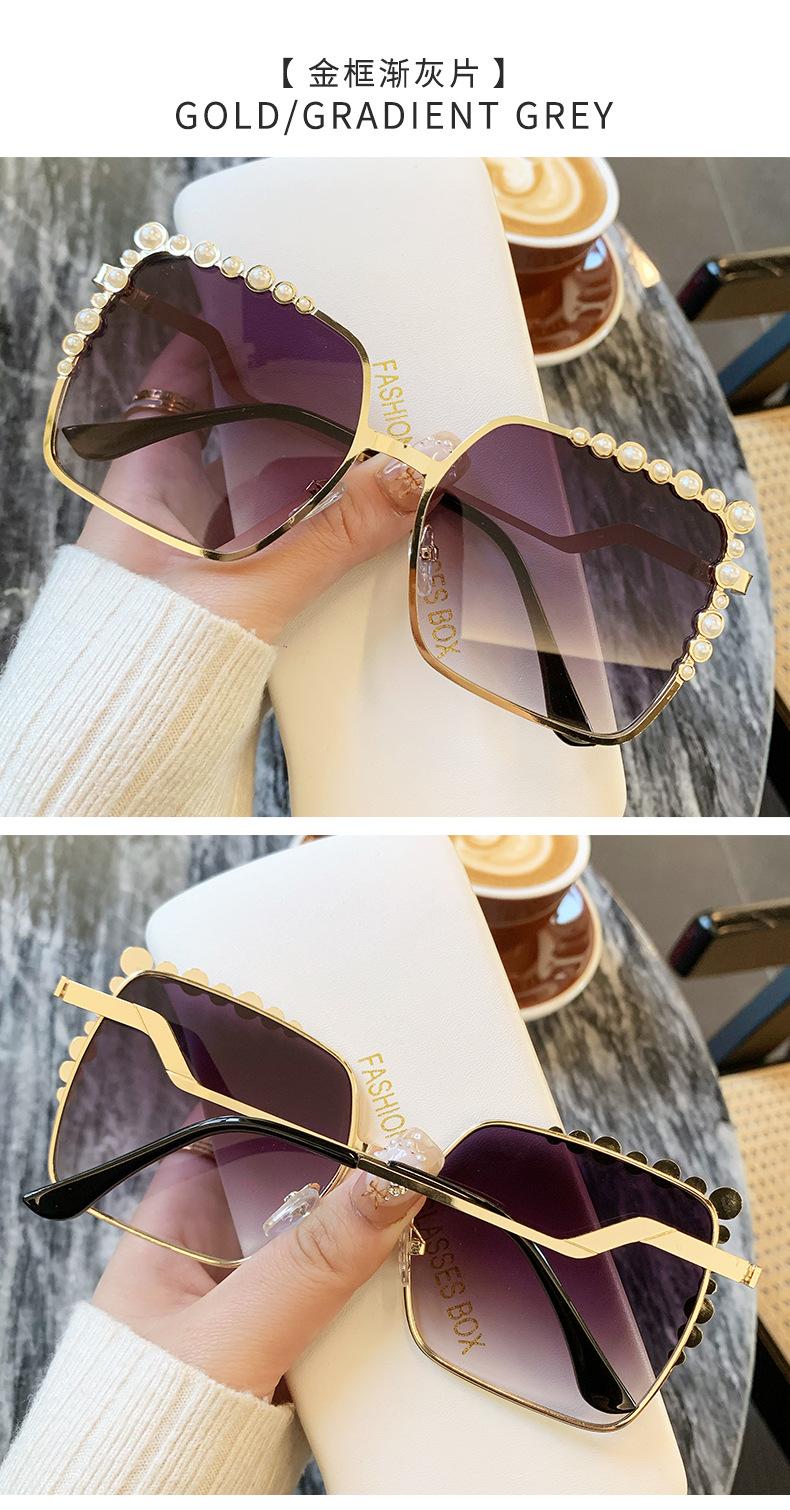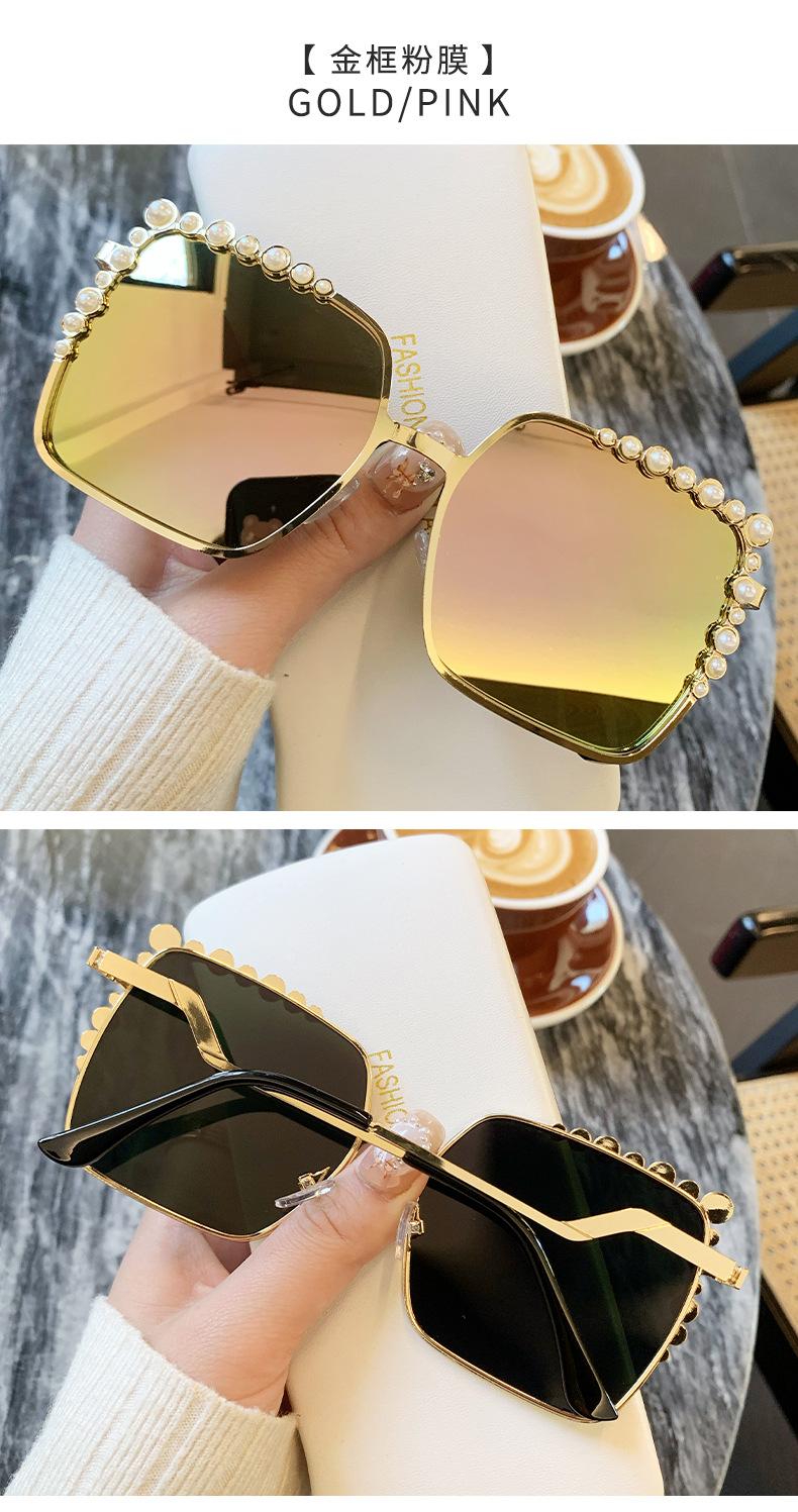 Nueva Moda Gafas de Sol Cuadradas de Montura Grande Decoradas con Perlas Metálicas Estilo Celebridad de Internet Mismo Estilo Personalidad Novedosas Gafas de Sol Modernas