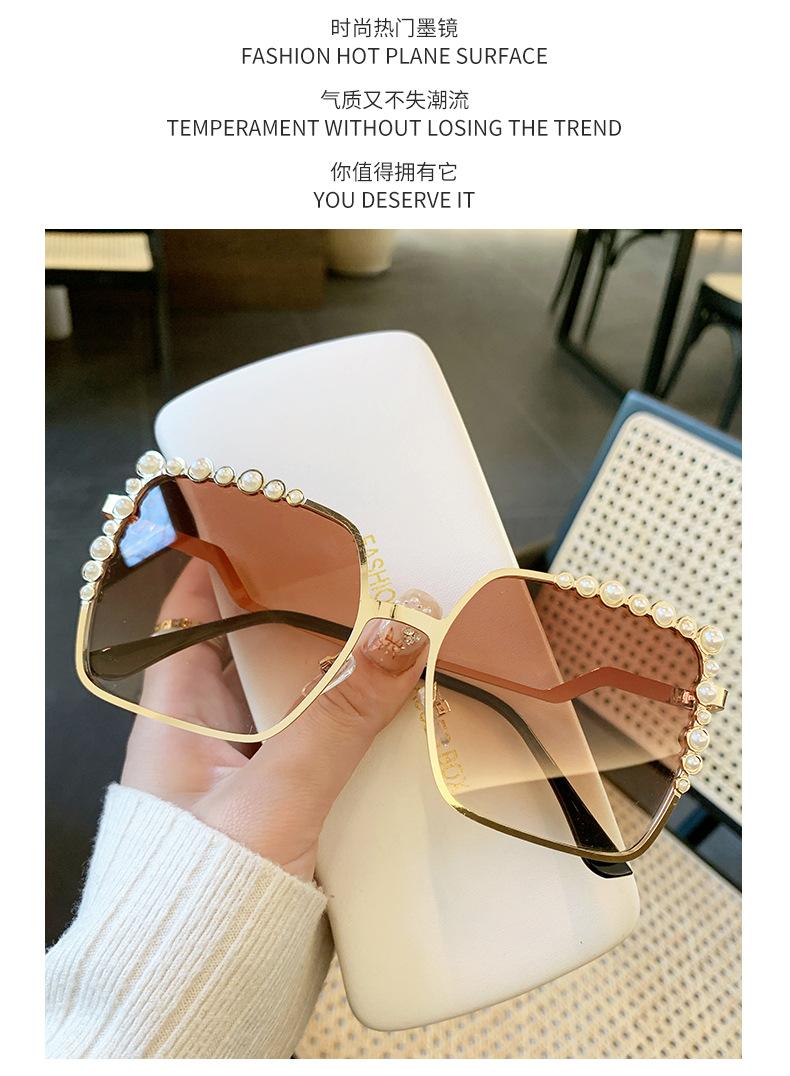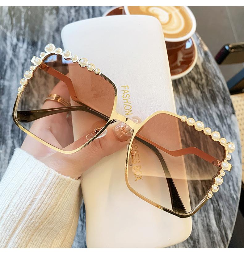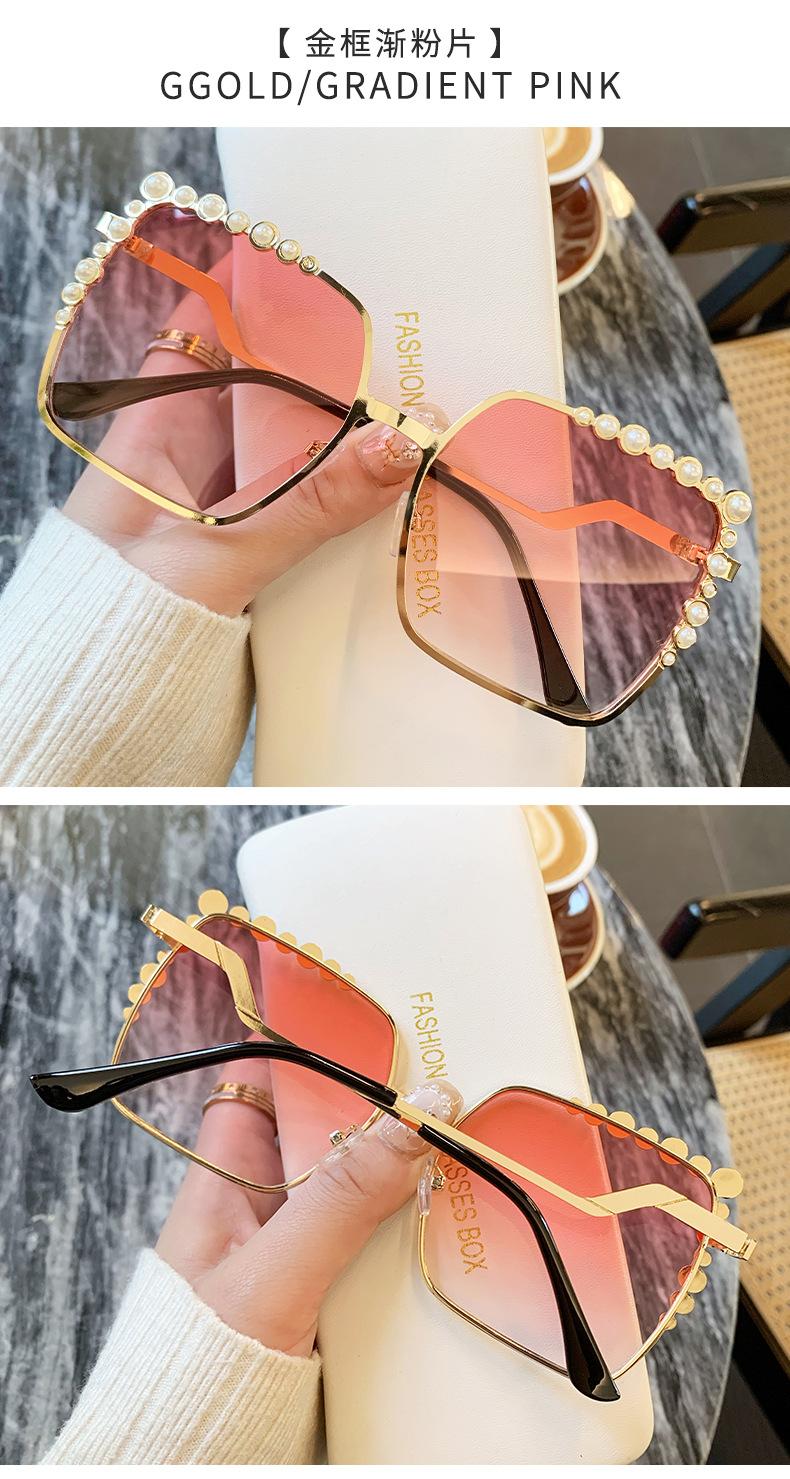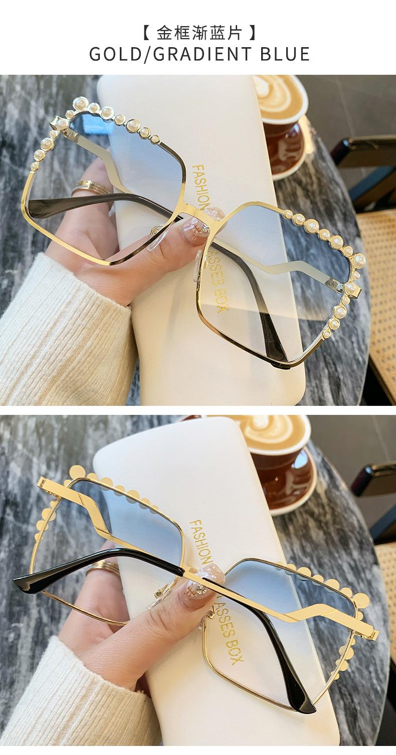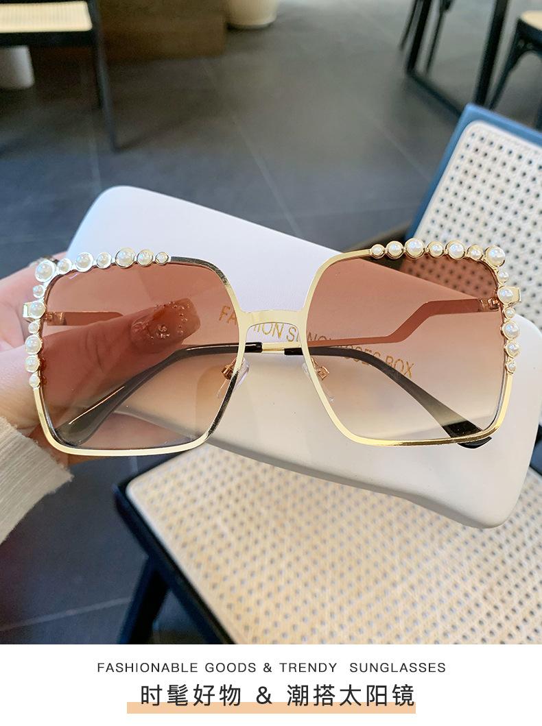 Nueva Moda Gafas de Sol Cuadradas de Montura Grande Decoradas con Perlas Metálicas Estilo Celebridad de Internet Mismo Estilo Personalidad Novedosas Gafas de Sol Modernas