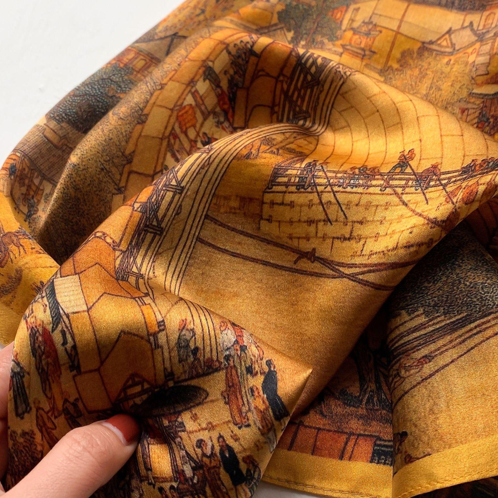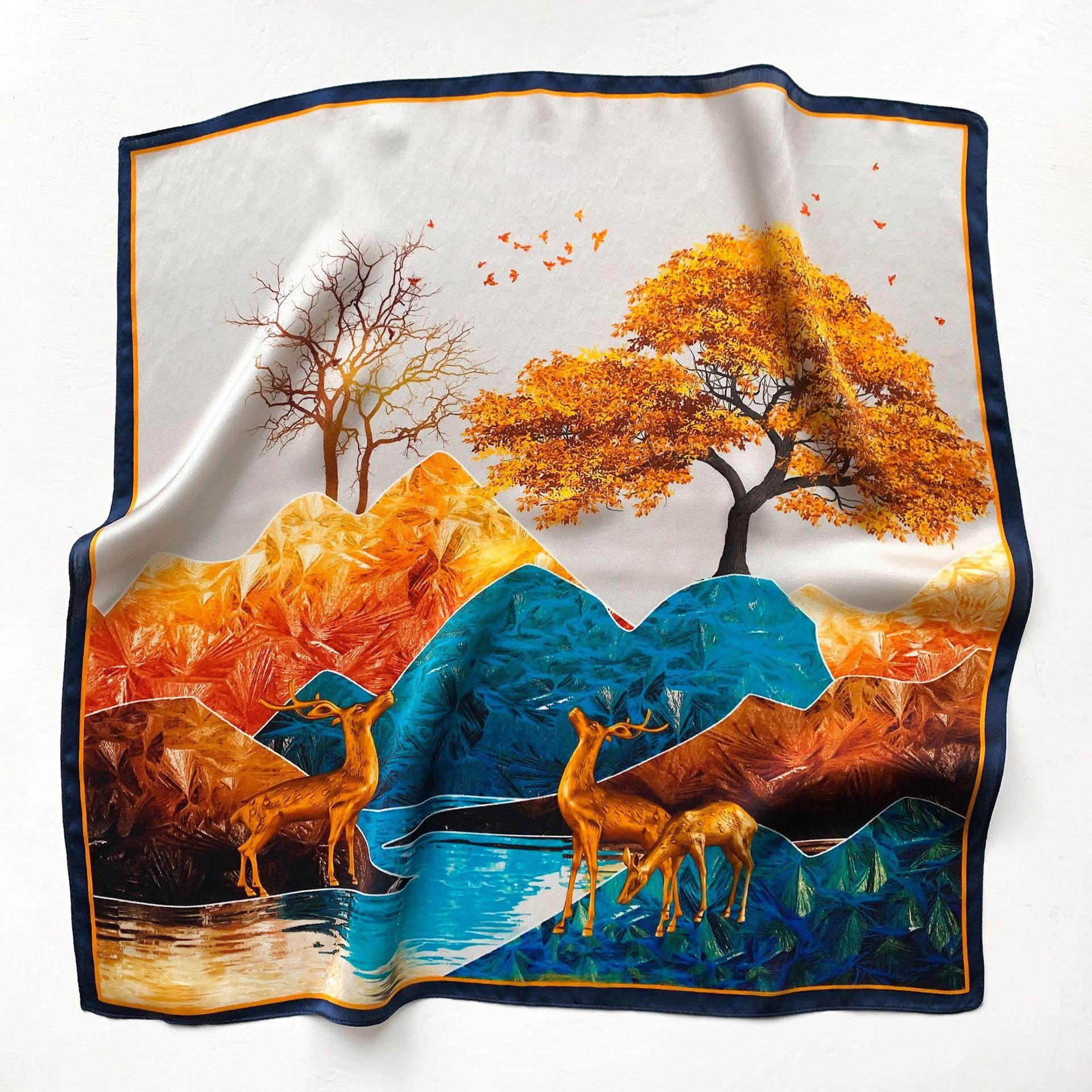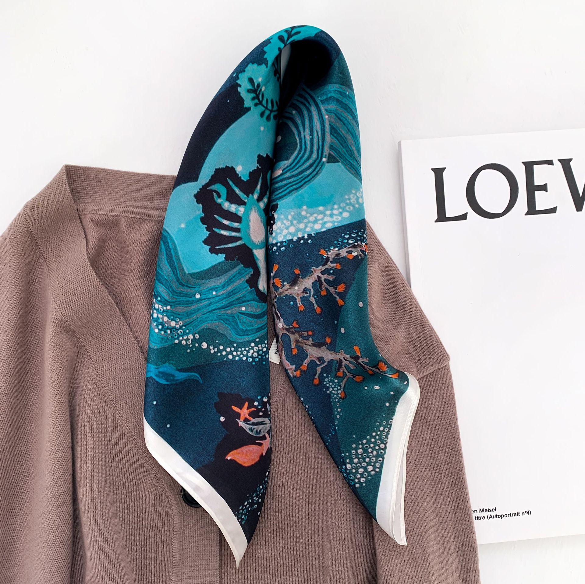 | Bufanda de seda sintética nueva de 2022, larga, de satén y seda, para vacaciones, con protector solar, venta al por mayor |