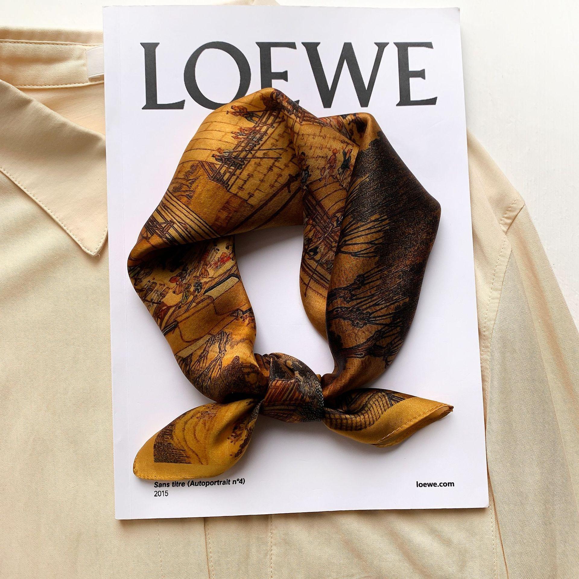 | Bufanda de seda retro, bufanda estrecha y larga de imitación de seda, decoración femenina con esquinas afiladas, decoración de moda, diadema de seda, bufanda al por mayor |