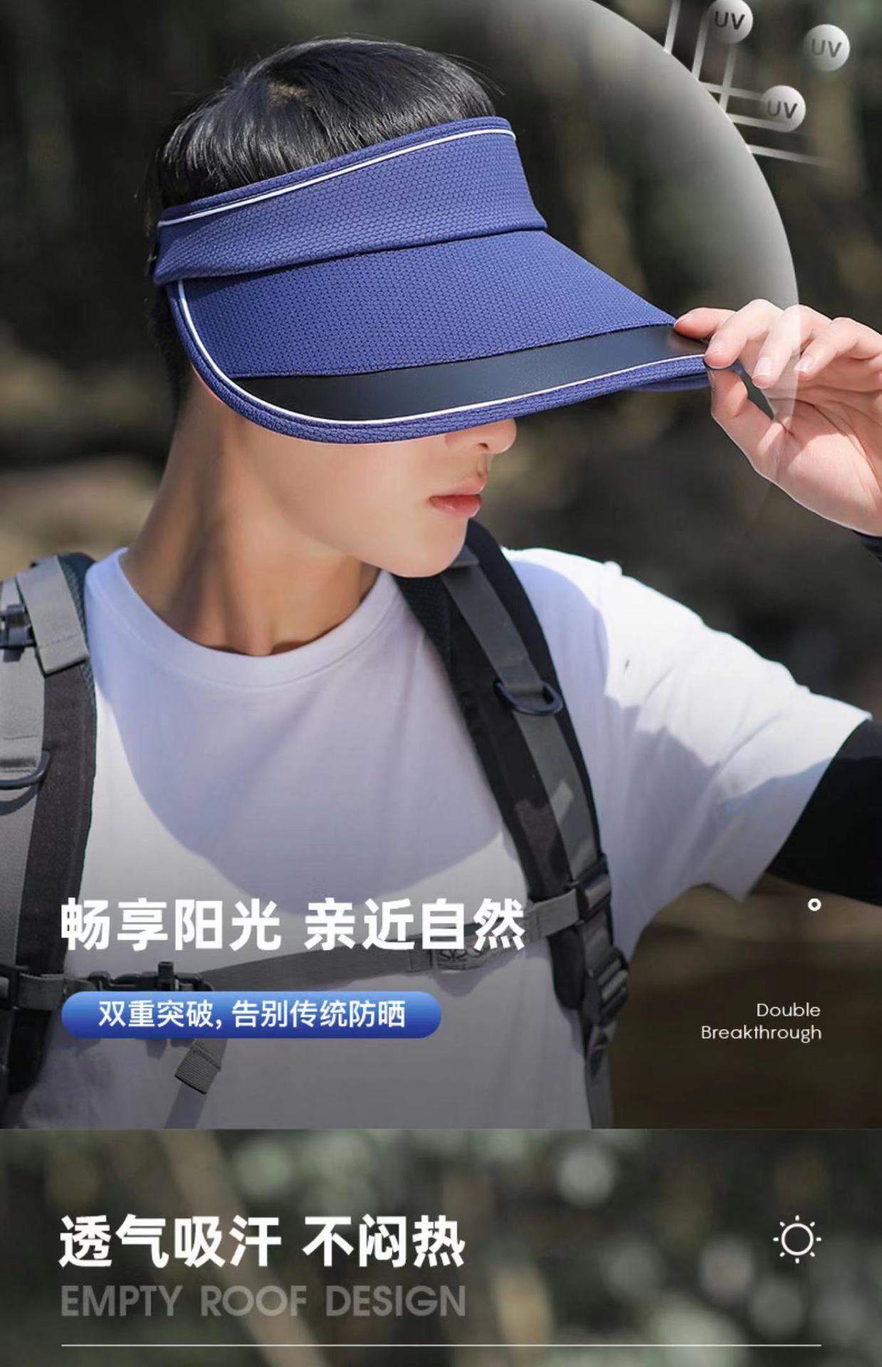 Sombrero de Verano con Visera Parasol Sombrero Protector Solar de Copa Vacía para Exteriores para Montar Anti-UV Transpirable Sombrero de Pesca Sombrero Grande Sombrero Cubre Cara para Hombre