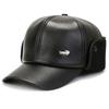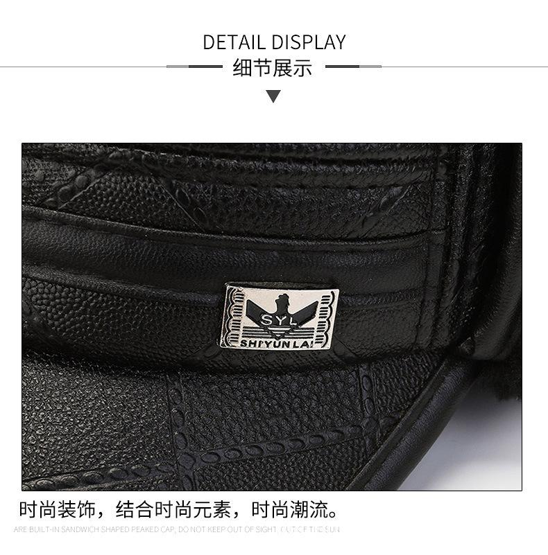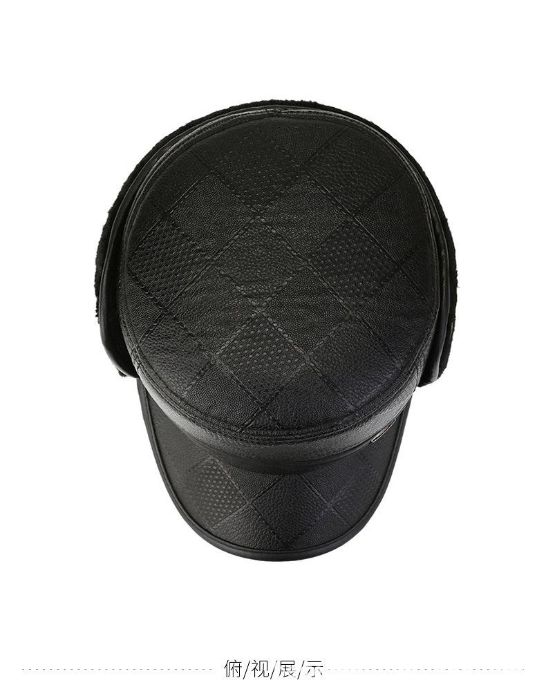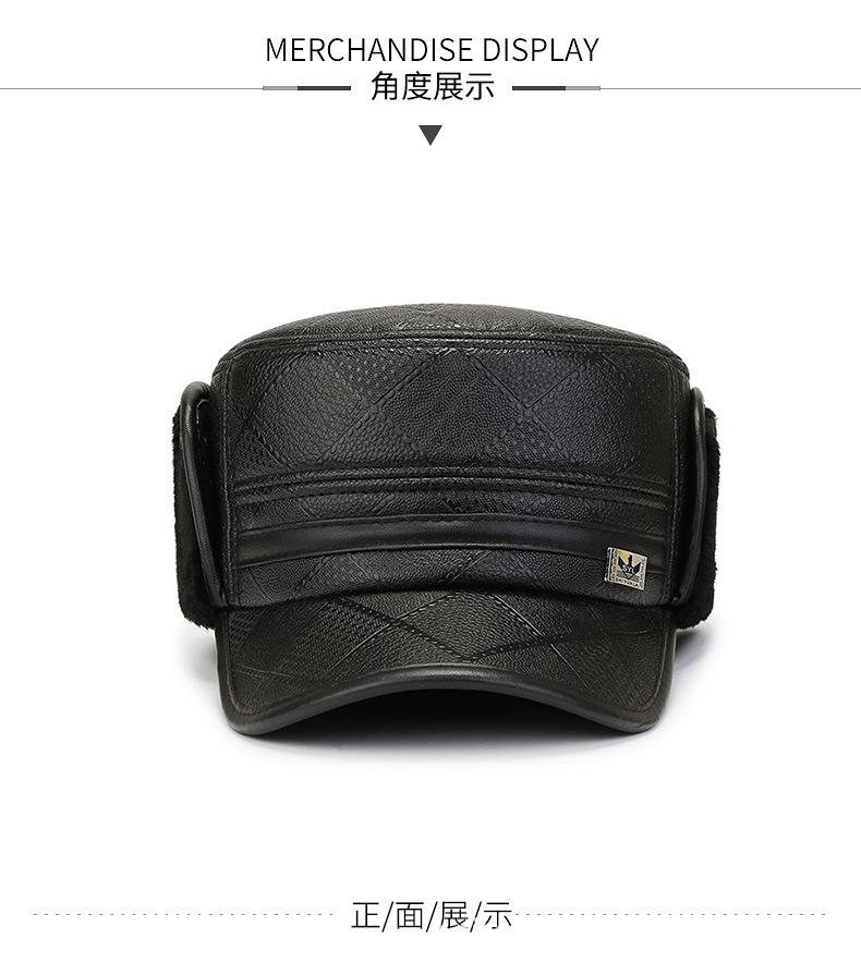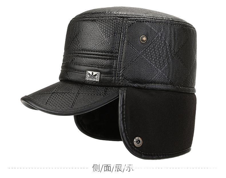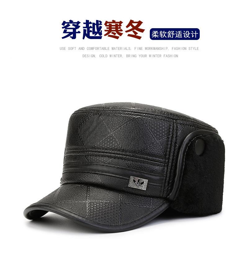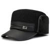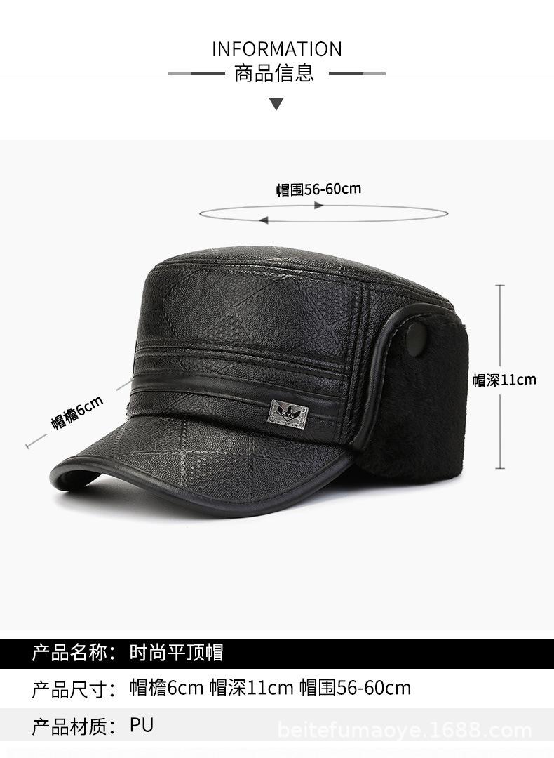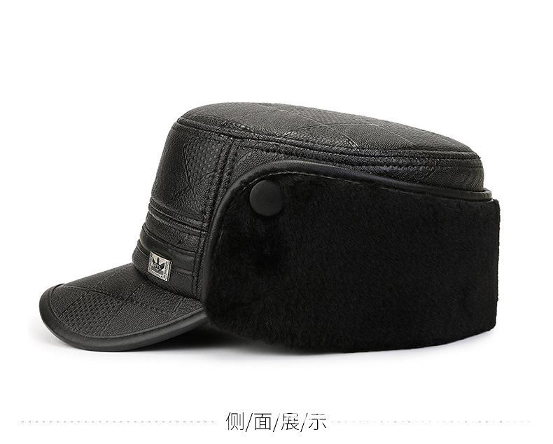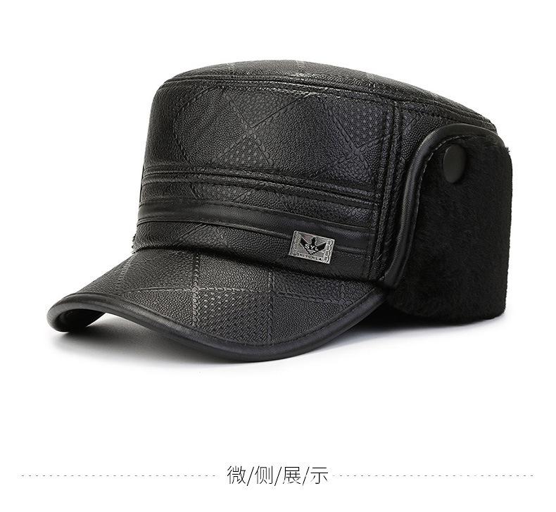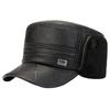 Sombrero para hombre de mediana edad y anciano, gorro plano de invierno para papá, gorro de cuero grueso y cálido con forro polar para abuelo, gorro con visera y protección para las orejas para anciano
