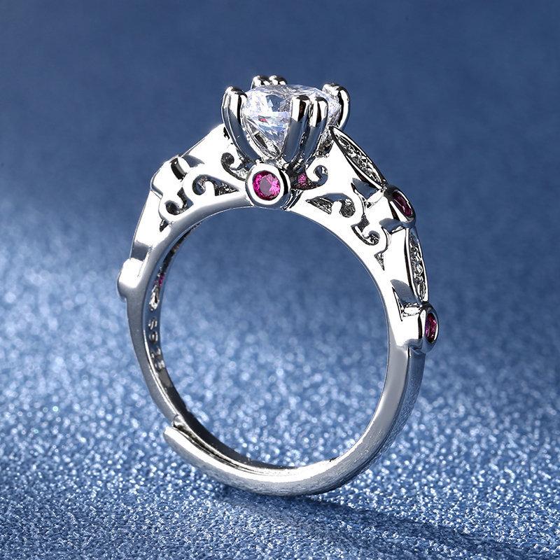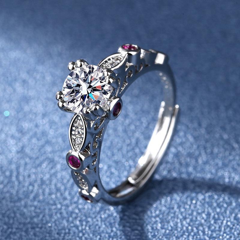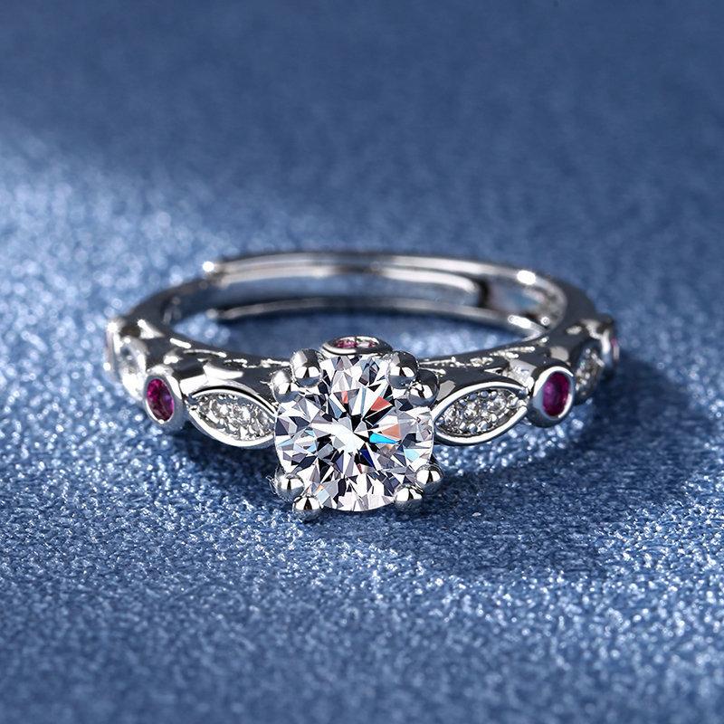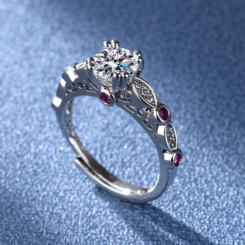 Ocho Corazones y Ocho Flechas Chapado en Diamante Rojo Granate Diamante Completo Tono Agitado Suministro en Vivo de Mano Rápida Simulación Diamante Mosan Anillo Abierto Femenino