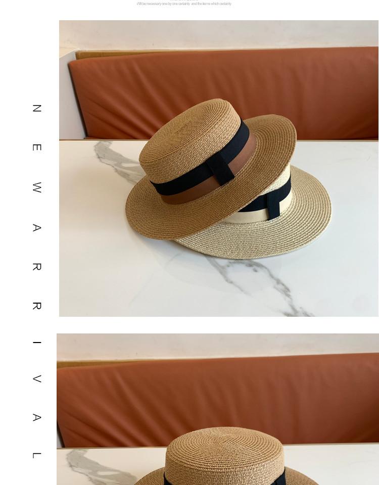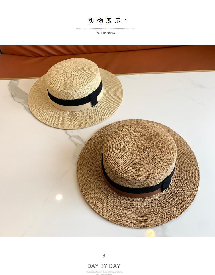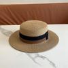 Sombrero de paja de estilo nuevo para mujer, de parte superior plana, para viajes de verano, protector solar, para playa, combina con todo, transpirable y fresco.