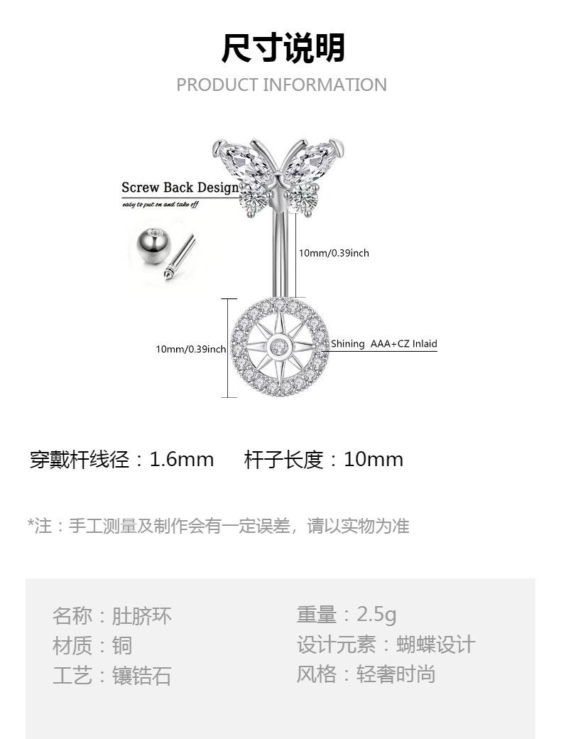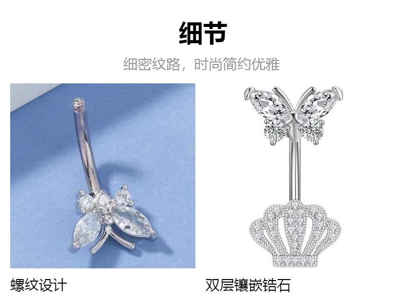 Comercio electrónico transfronterizo europeo y americano, anillo de ombligo de mariposa caliente, corona de Apple, clavo para el ombligo, joyería perforada de acero inoxidable de Amazon