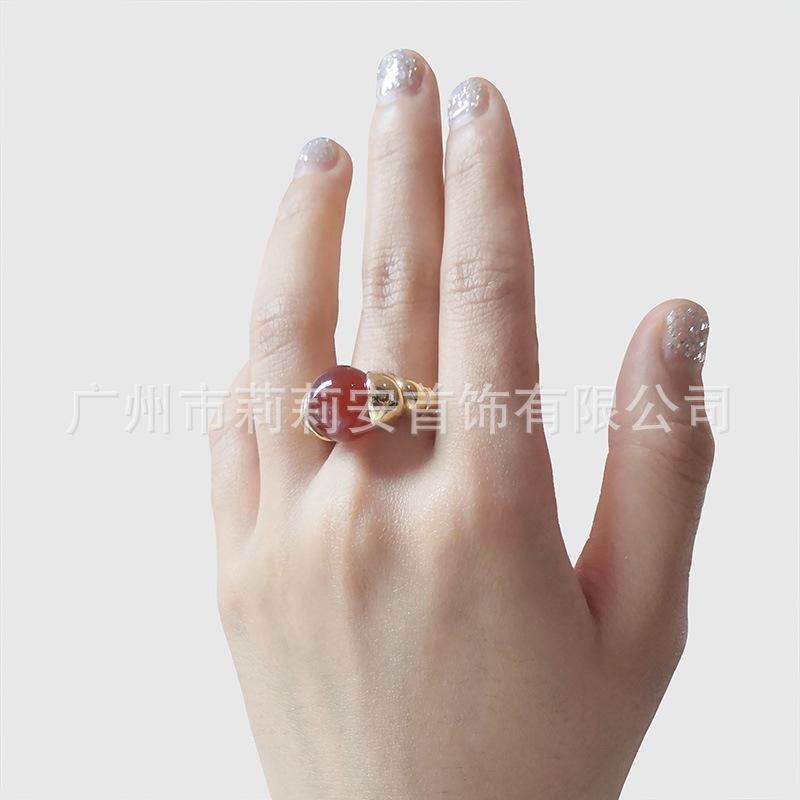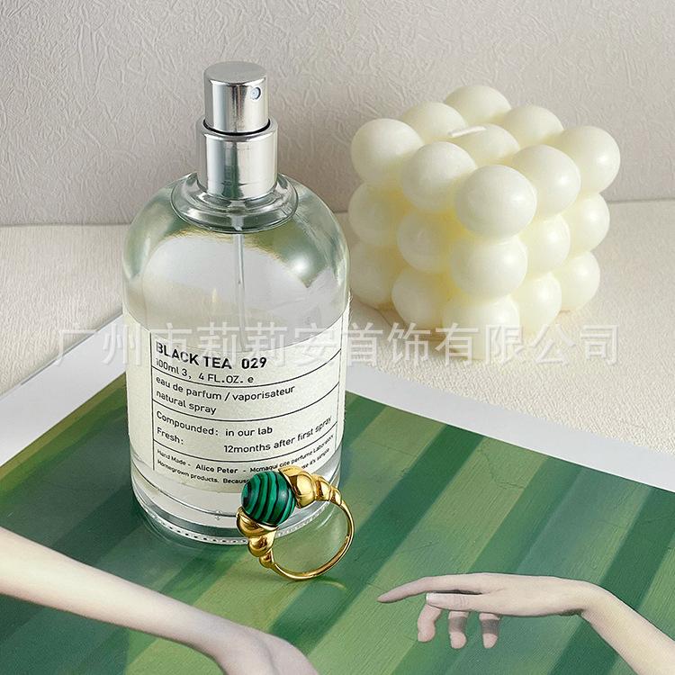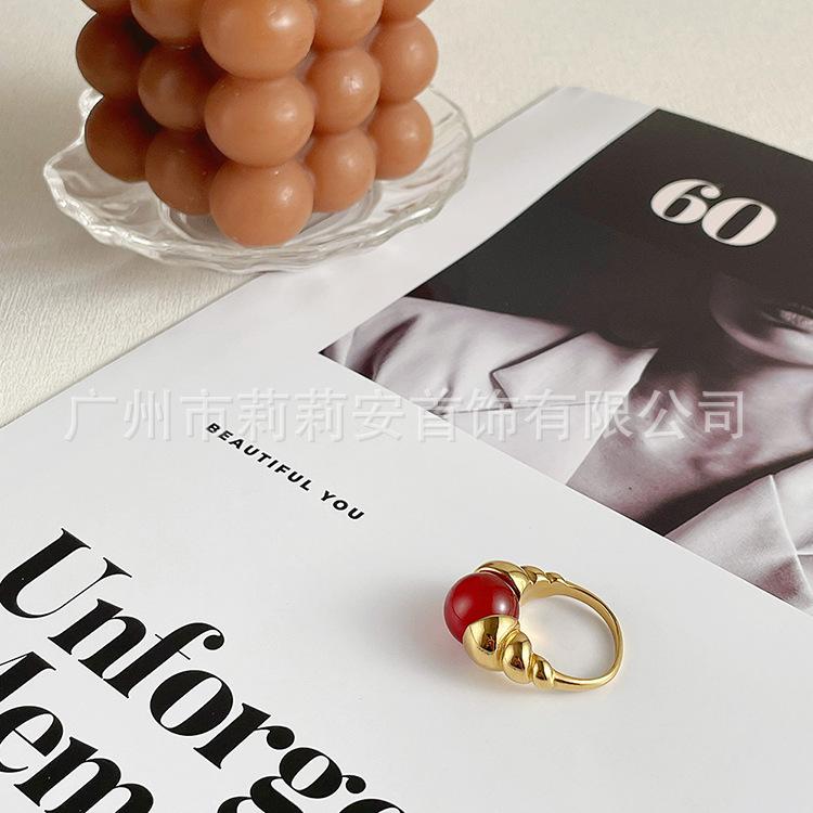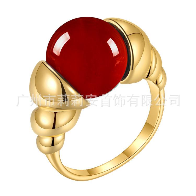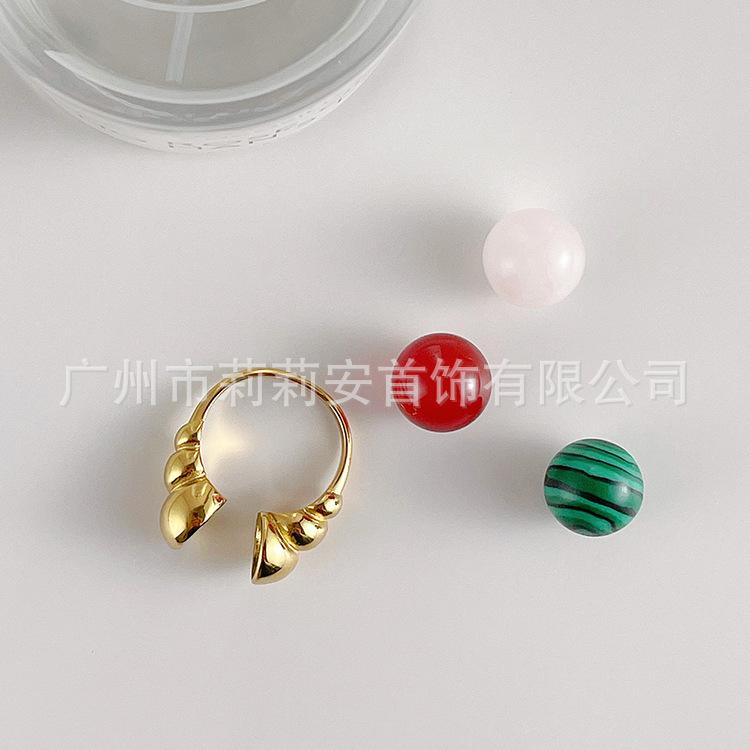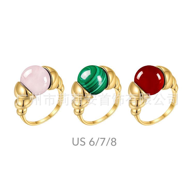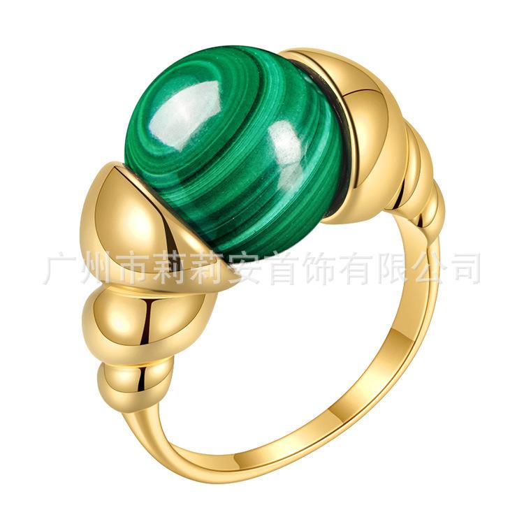 Anillo de dedo índice de jade reemplazable de nicho personalizado europeo y americano chapado en acero de titanio con oro de 18 quilates anillo de moda estilo INS R214114