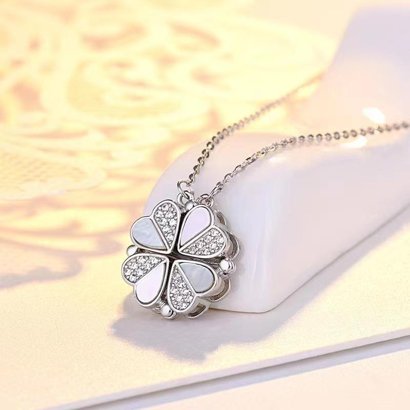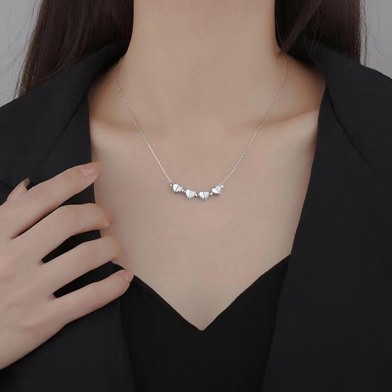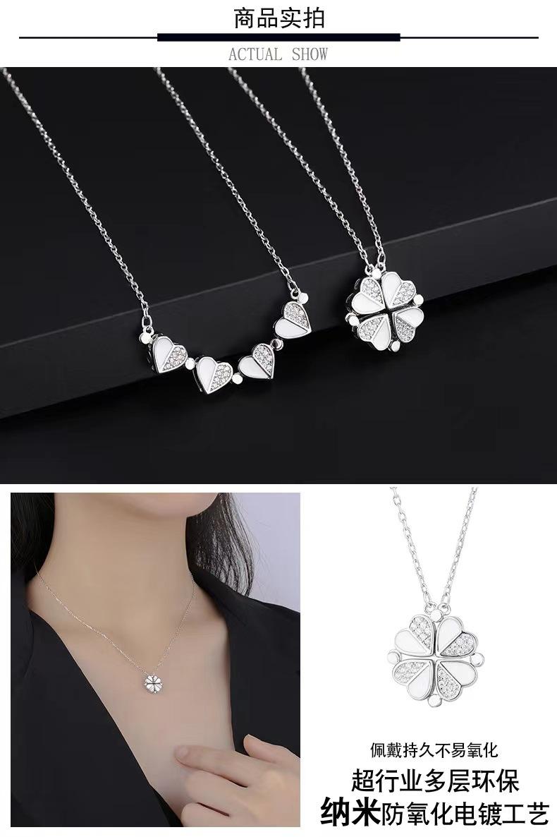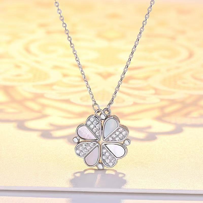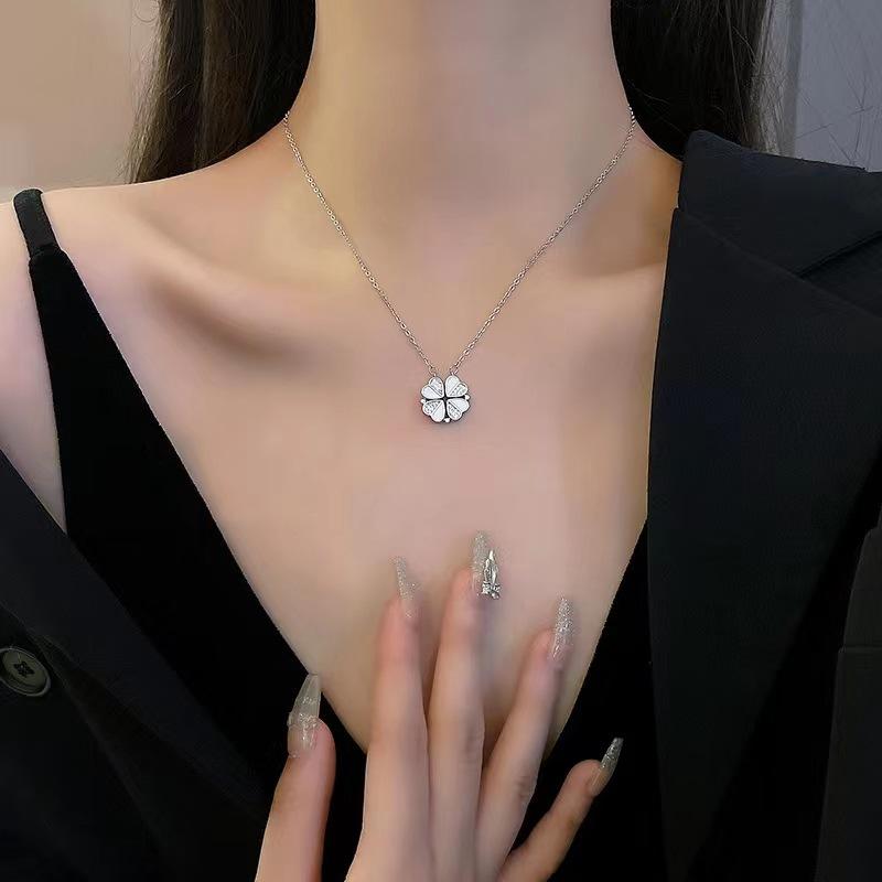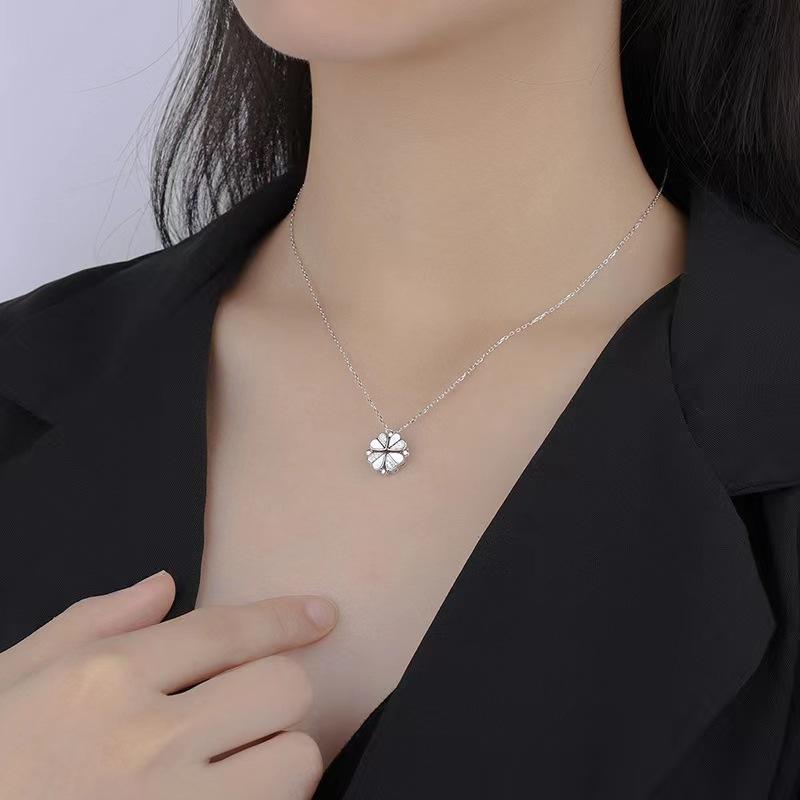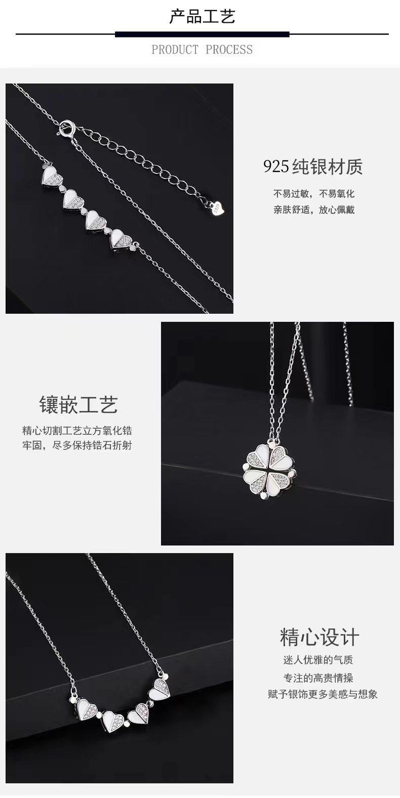 Collar de trébol de amor de dos piezas en plata de ley 925 para mujer, ligero, lujoso, con diseño de nicho, cadena de clavícula elegante y avanzada.