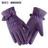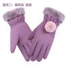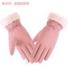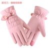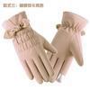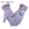 Guantes cálidos de otoño e invierno para mujer, con forro polar, resistentes al frío, para ciclismo al aire libre, con pantalla táctil, boca de piel y orejas de conejo, guantes de algodón de invierno.