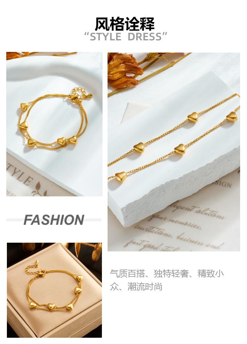 Diseño de nicho de moda europea y americana, cadena doble, amor simple para todo, sensación avanzada, pulsera de acero de titanio Tong Qin