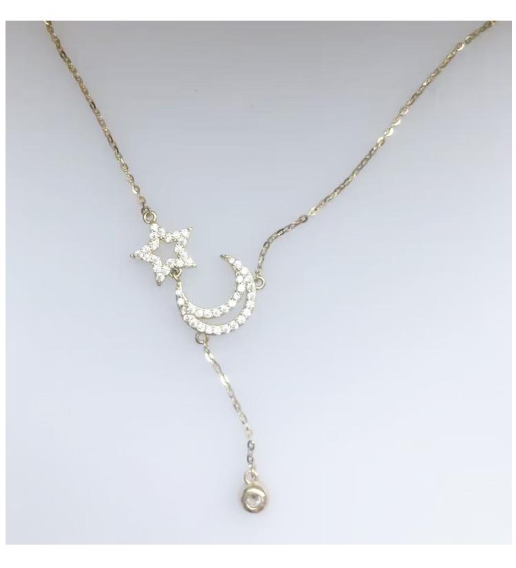 Collar con colgante de estrella y luna para mujer, cadena de clavícula, joyería con colgante de estrella y luna, venta al por mayor