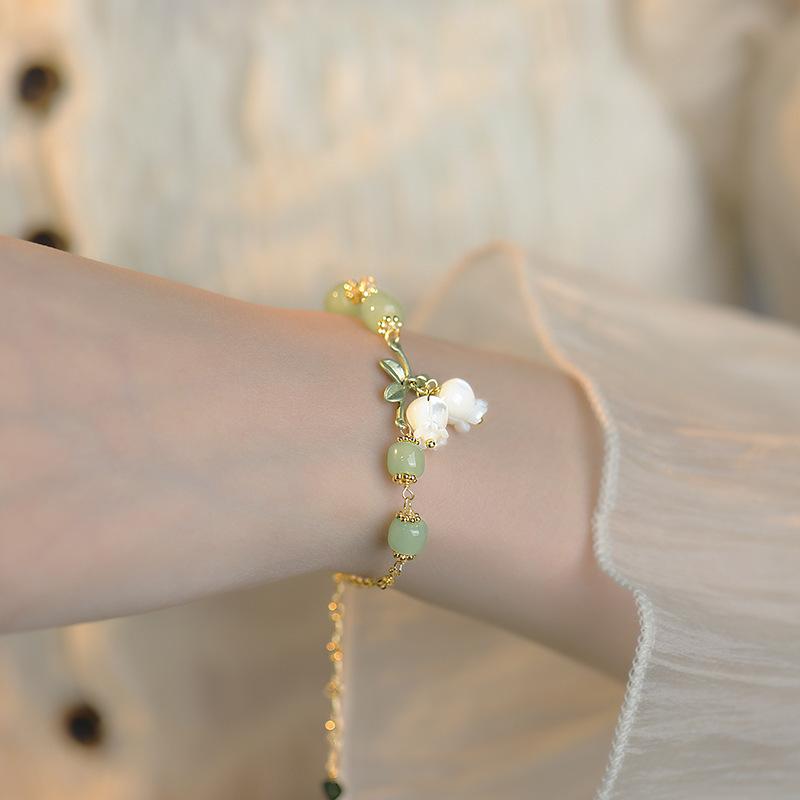 Pulsera de orquídea lirio de jade Hetian para niñas estilo retro pulsera suave diseño nicho ins 2022 Nuevo Avanzado