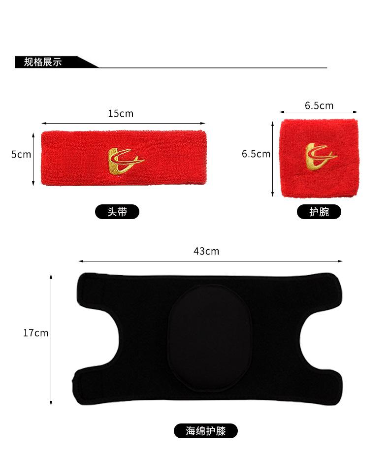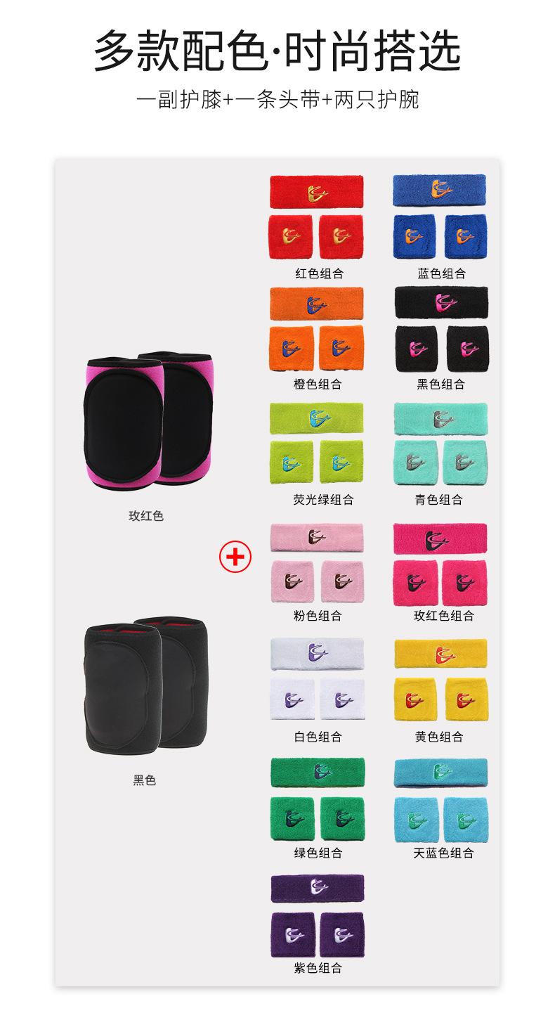 Rose red sponge knee + headband wristband (color random), Black sponge kneepad + headband wristband (color random)