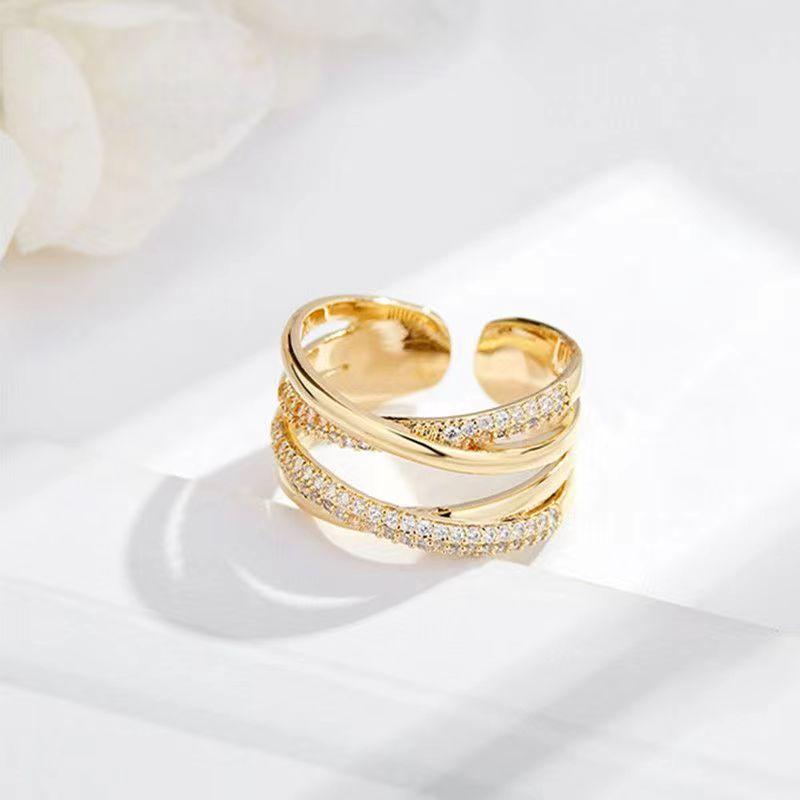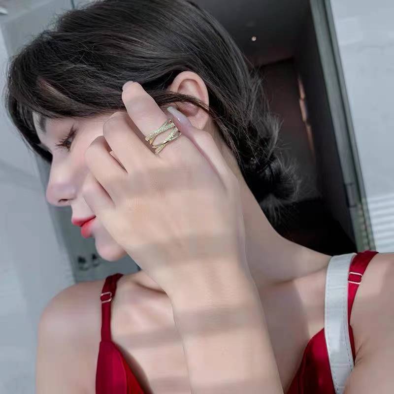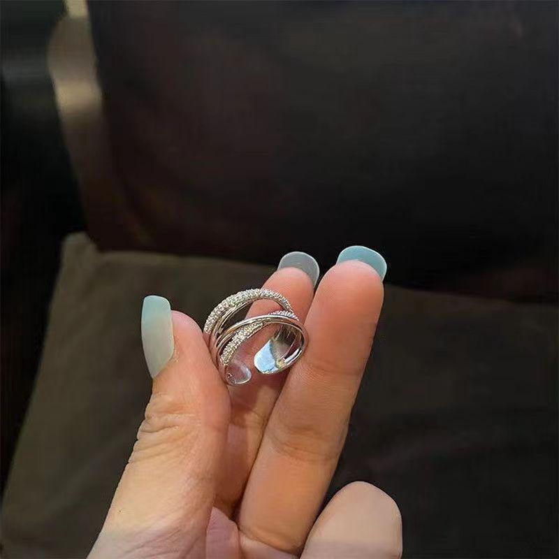 Anillo Abierto de Celebridad de Internet con Diamante Anillo Cruzado de Doble Capa para Mujer ins Trendy Nicho Anillo para Dedo Índice Alta Textura Regalo Elegante