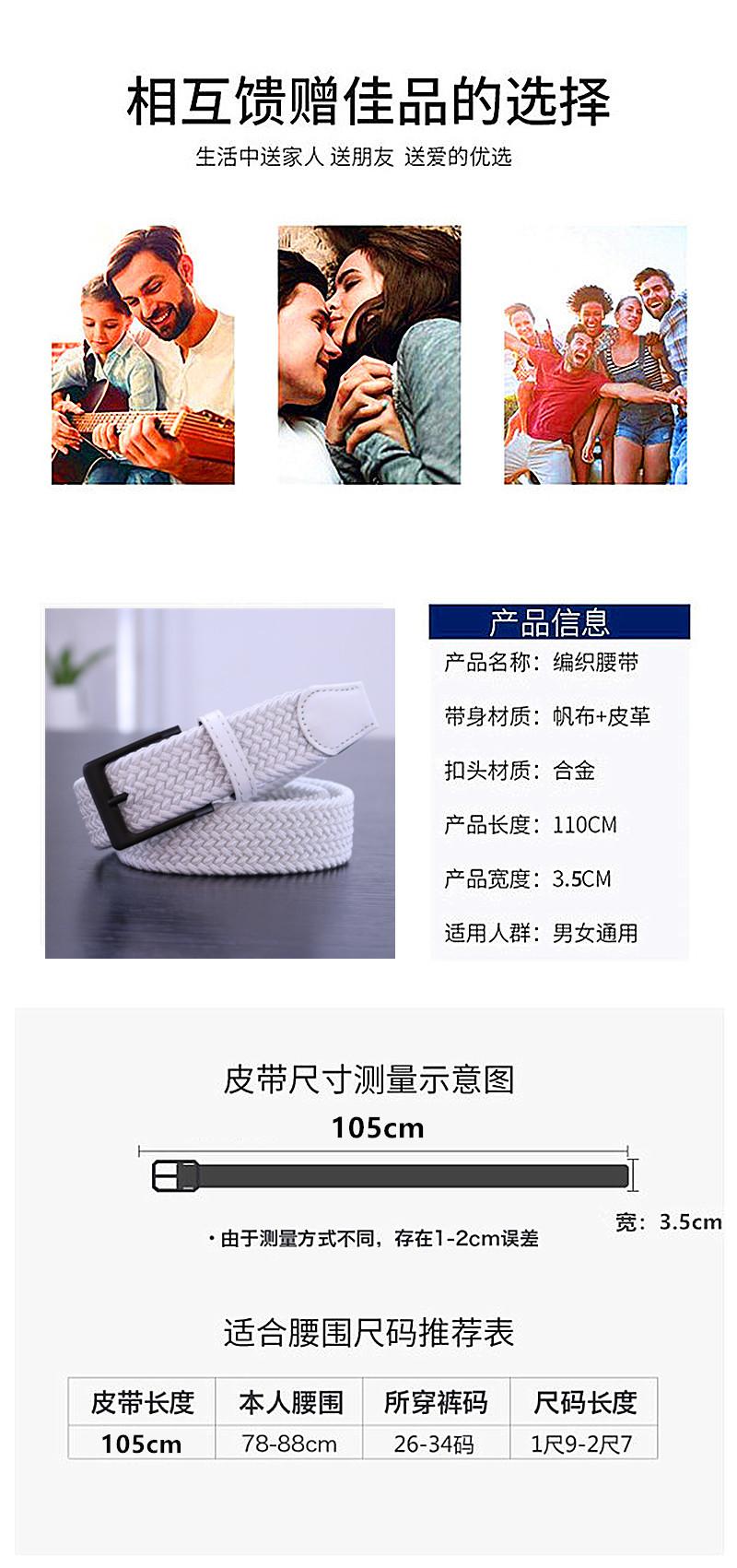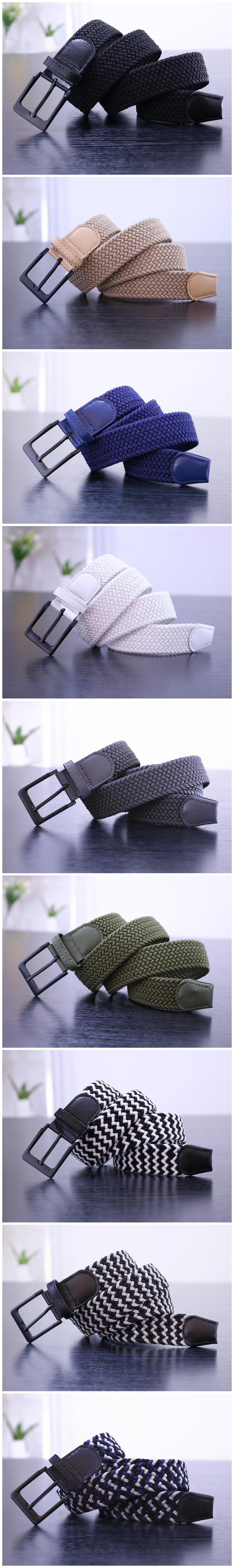 Nuevo Cinturón Casual Elástico Tejido Cinturón de Moda para Hombre Negro Hebilla de Pin Cinturón Elástico de Lona Cintura de Jeans para Mujer