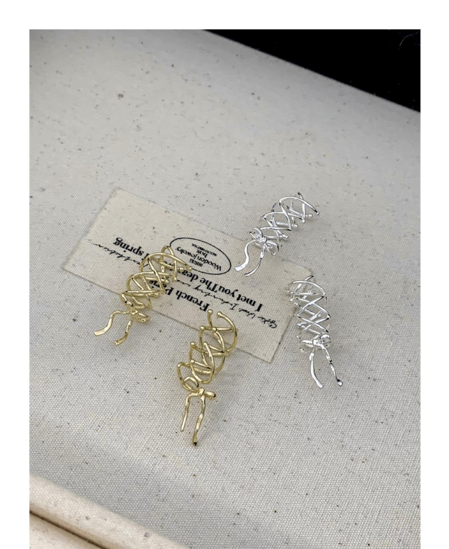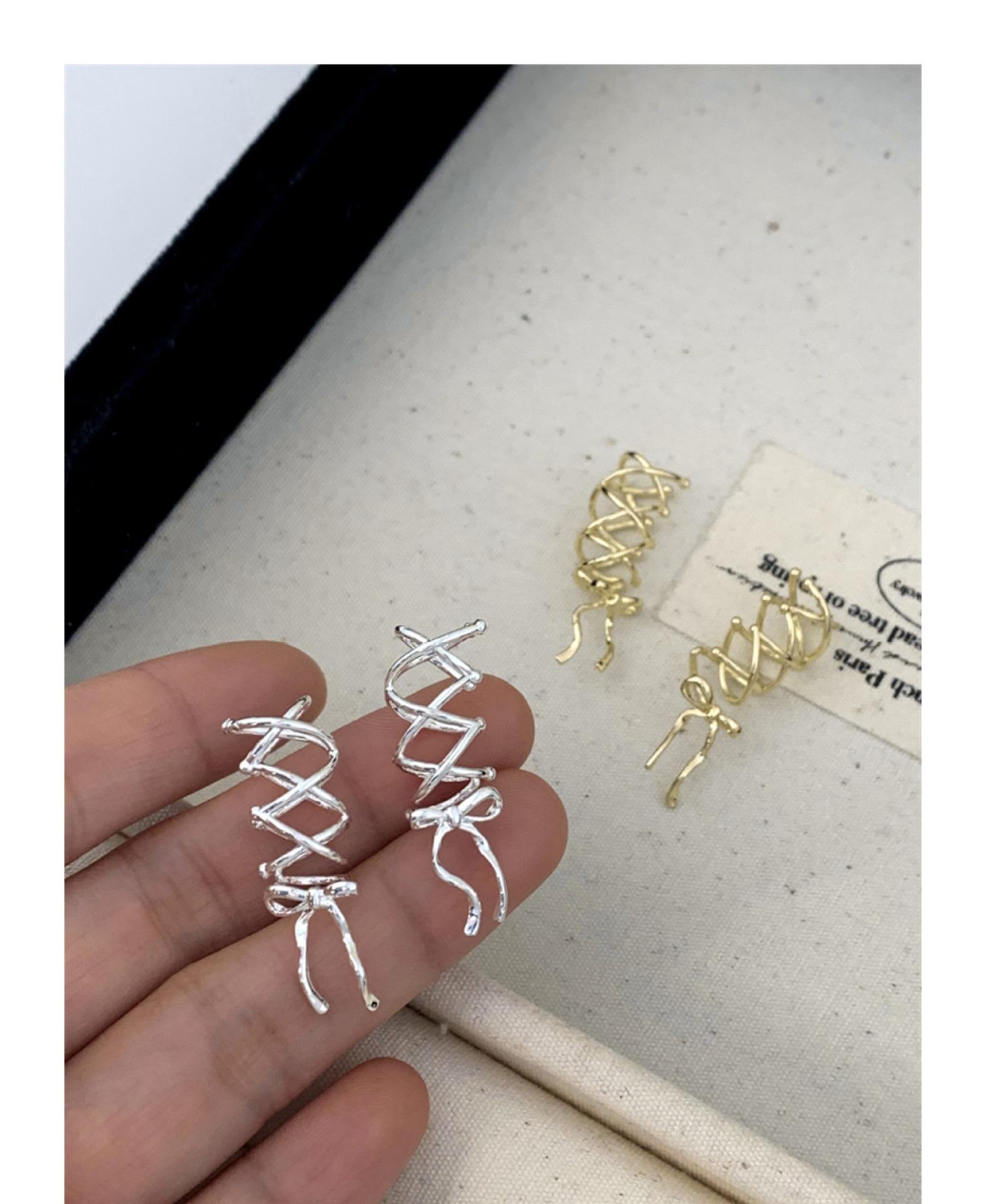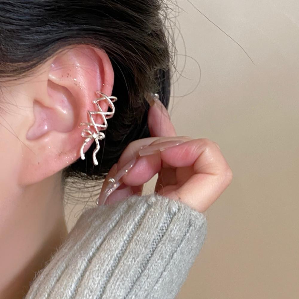Pendientes con clip de oreja con lazo de cinta sin perforaciones, nuevos pendientes de diseño de nicho para mujer, de alta calidad, con clip de hueso de oreja, pendientes de temperamento
