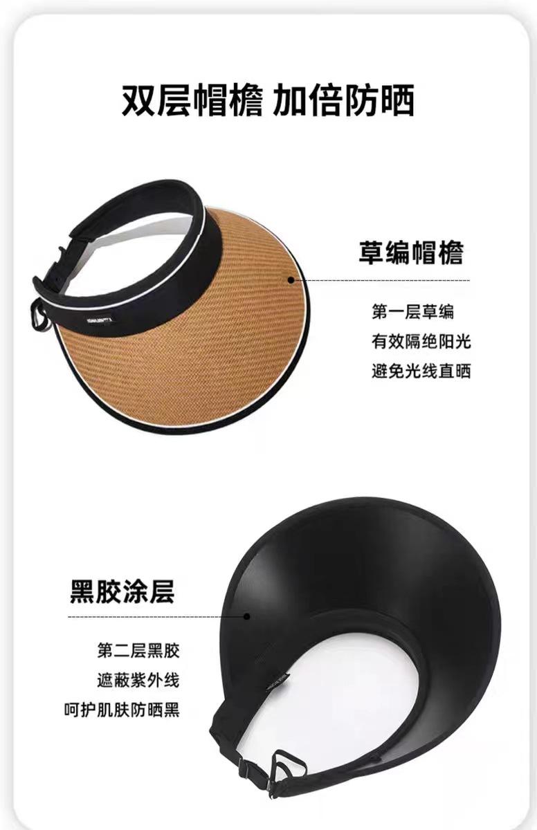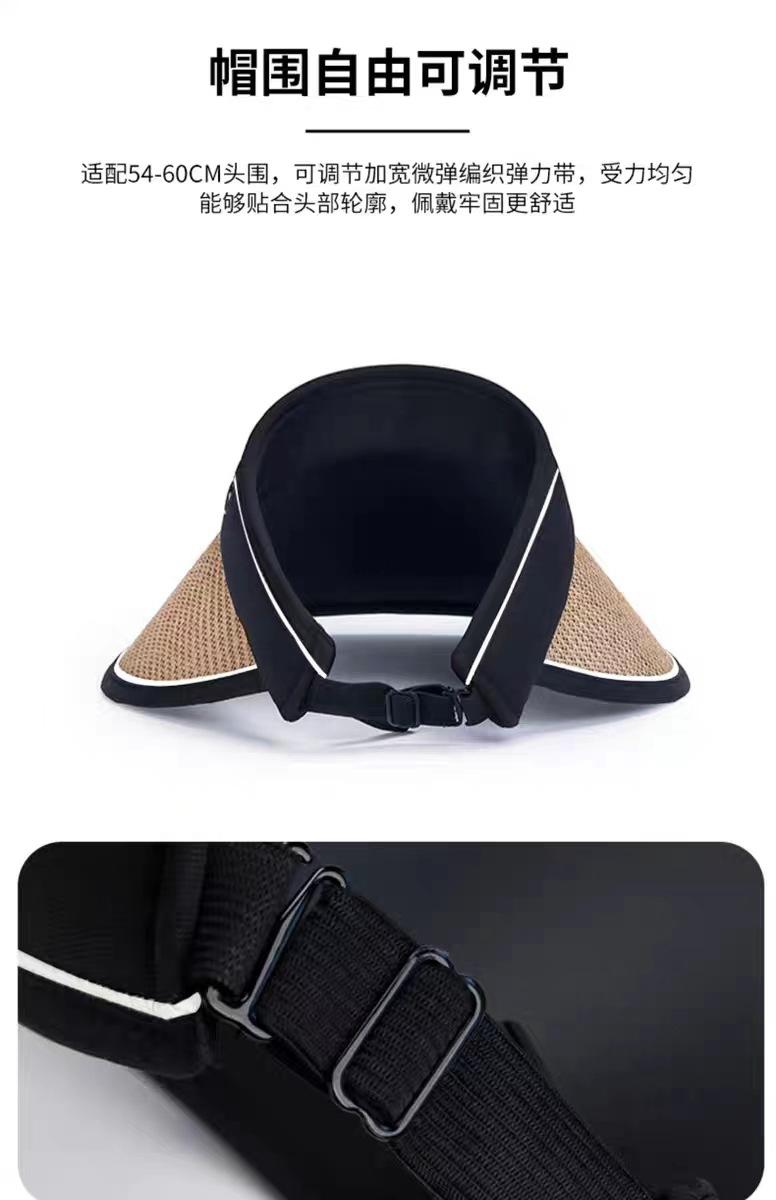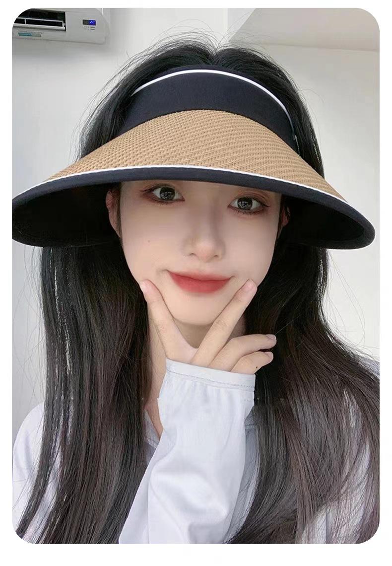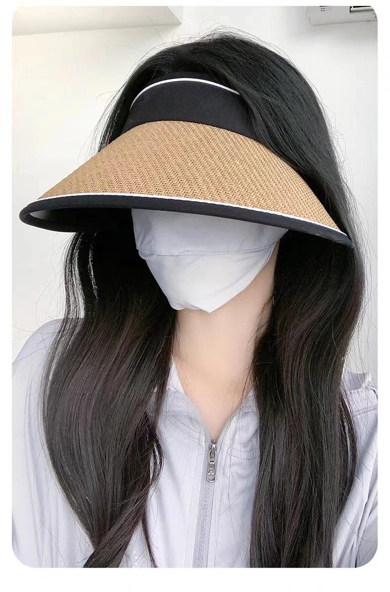 Sombrero Visera Vacía Plegable Protector Solar para Mujer Anti-UV Paja de Goma Negra Combinable Cubre Rostro Sol Sombrilla Ala Grande Fábrica