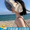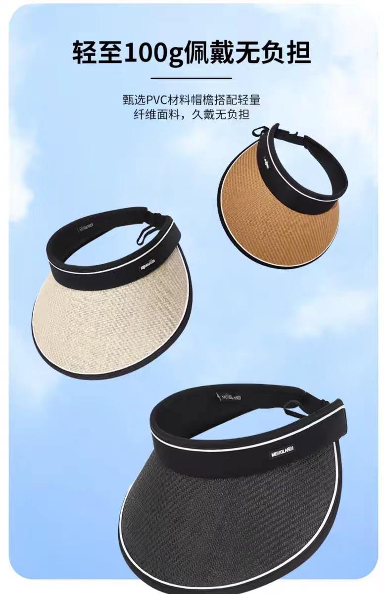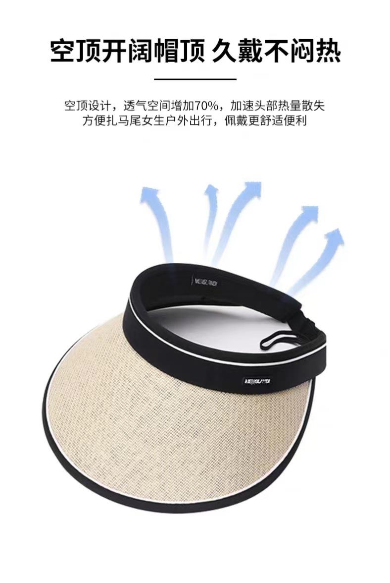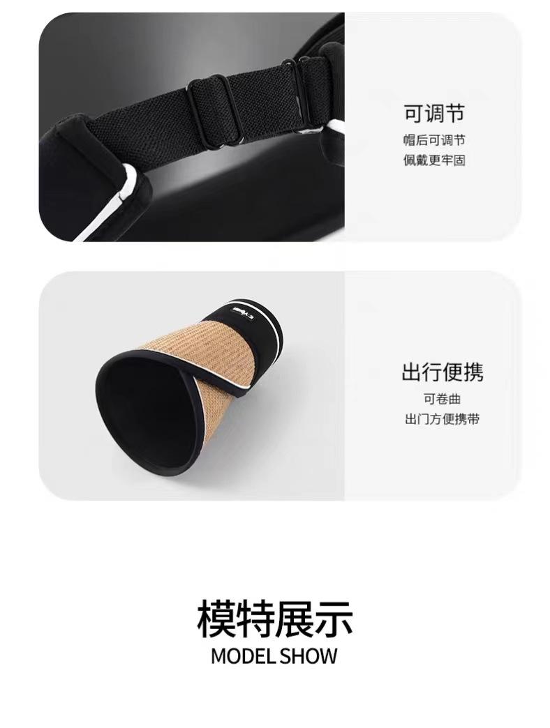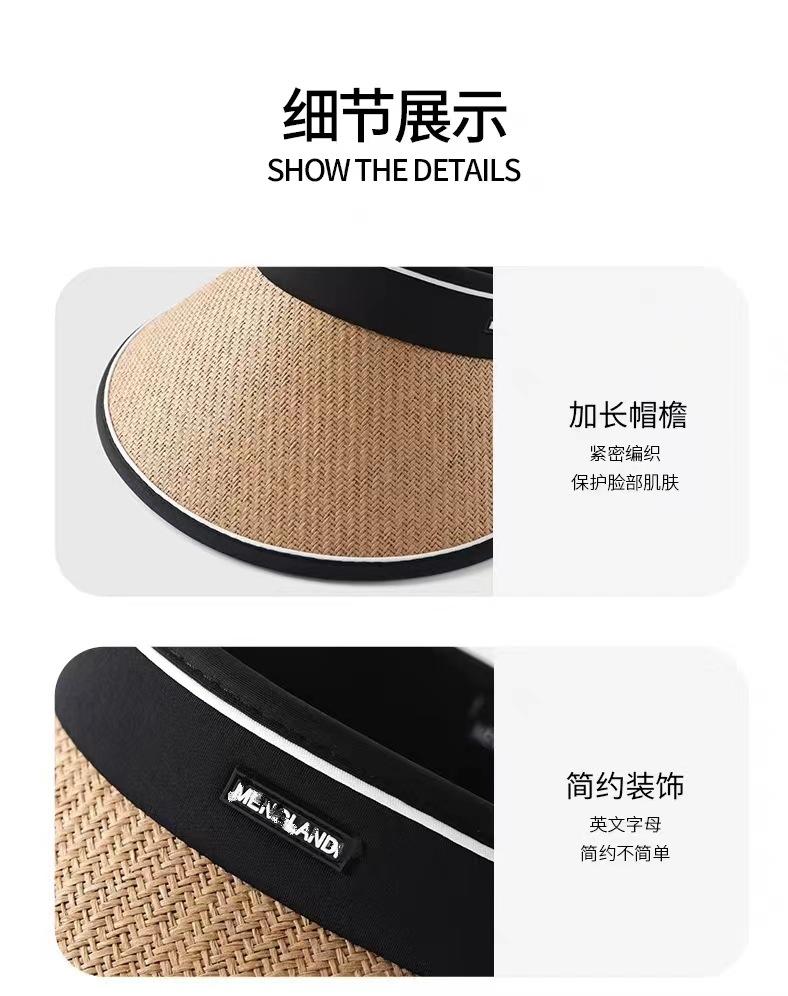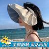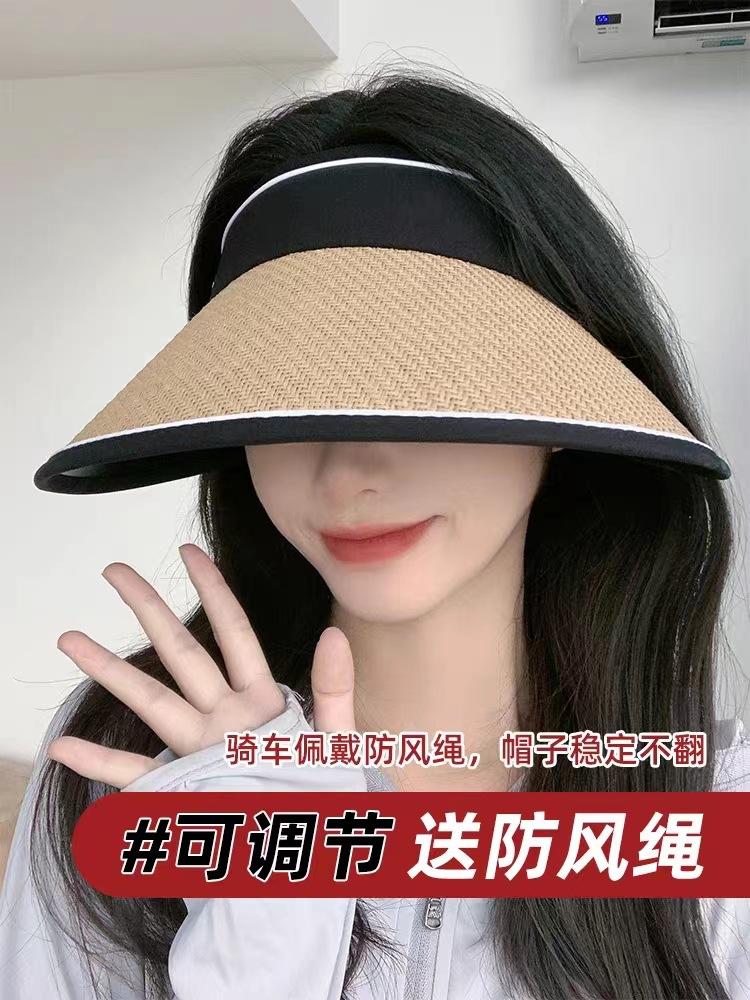 Sombrero Visera Vacía Plegable Protector Solar para Mujer Anti-UV Paja de Goma Negra Combinable Cubre Rostro Sol Sombrilla Ala Grande Fábrica