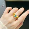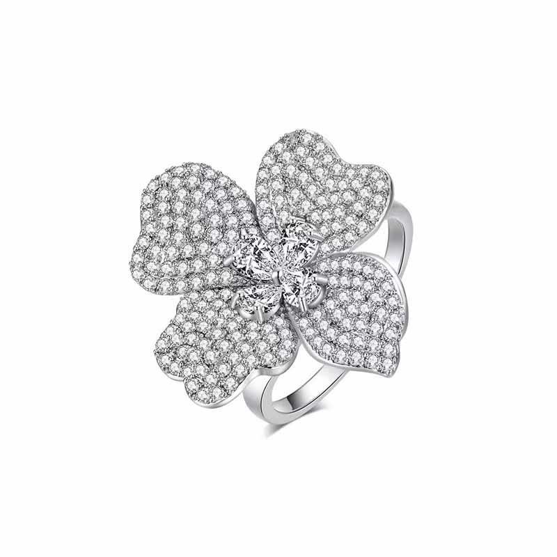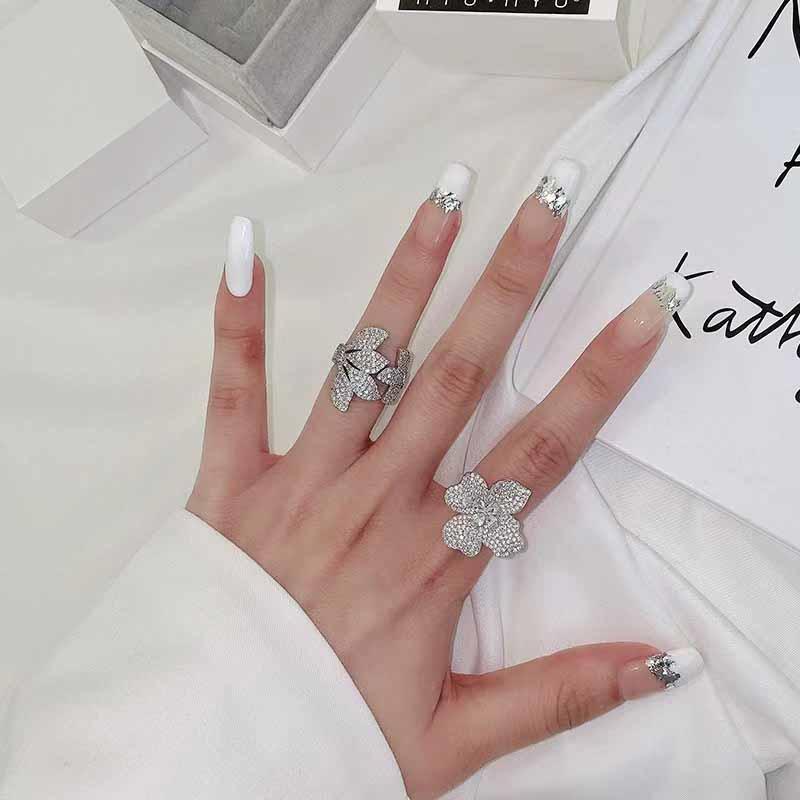 Sentido del diseño lujo ligero anillo de rosa con flor de diamantes completos para mujer abierto Iris exquisito micro incrustado anillo para el dedo índice accesorios estilo frío