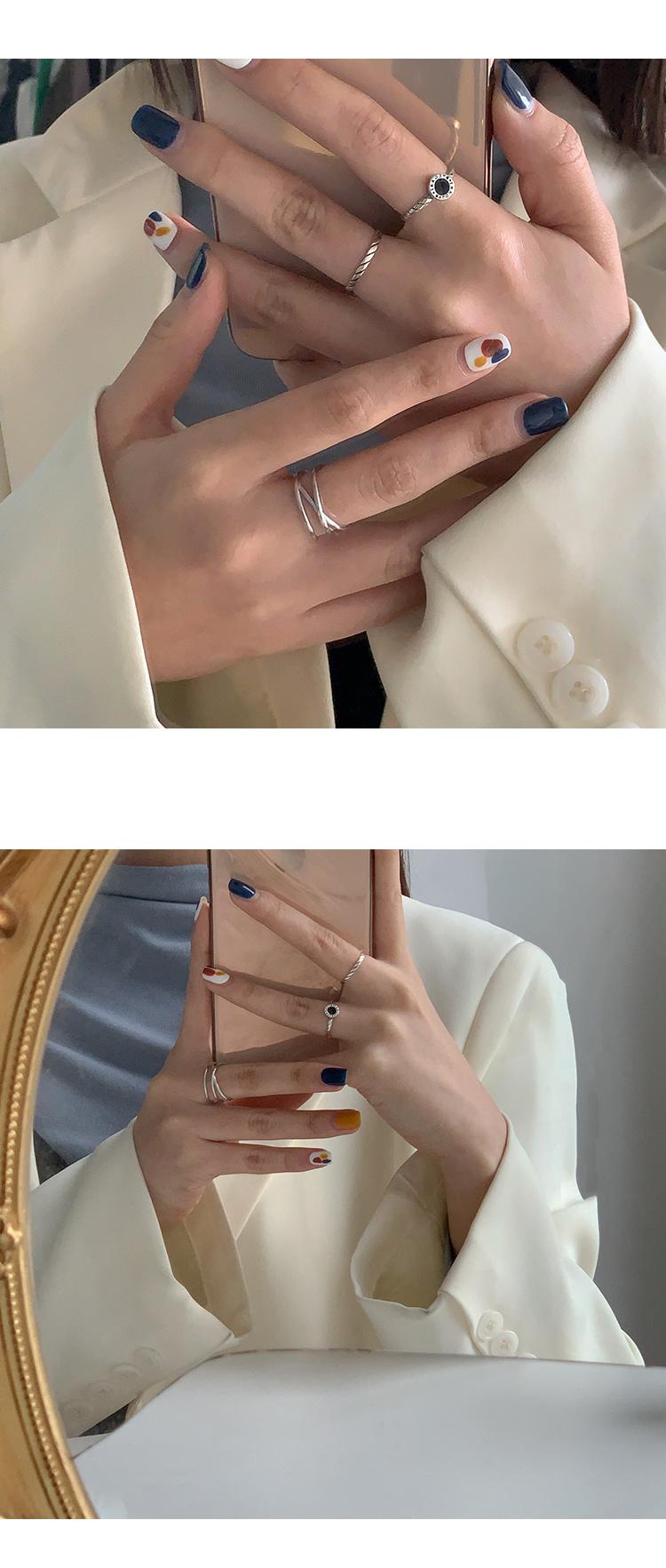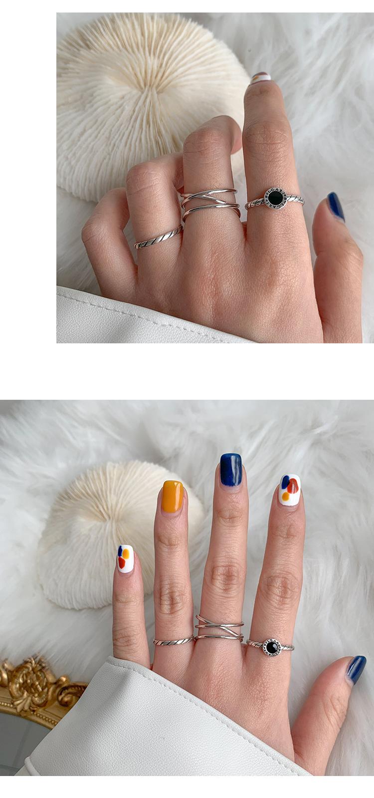 Black round opening ring (one), Three-layer staggered opening ring (one), Single-layer twist open ring (one)