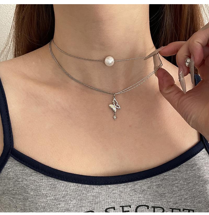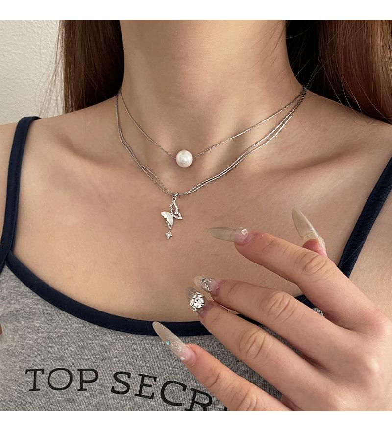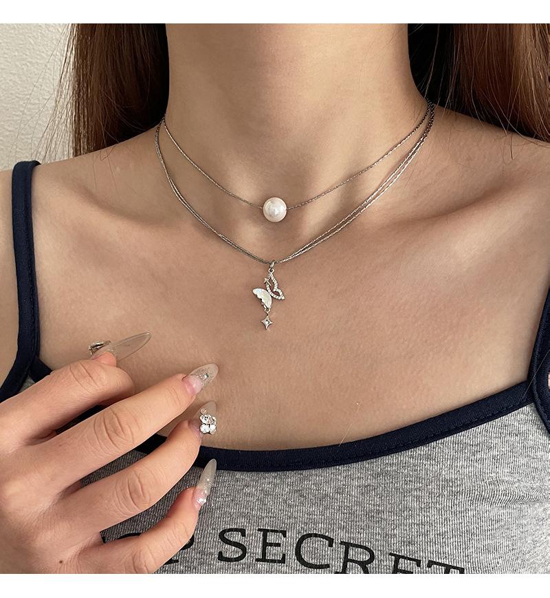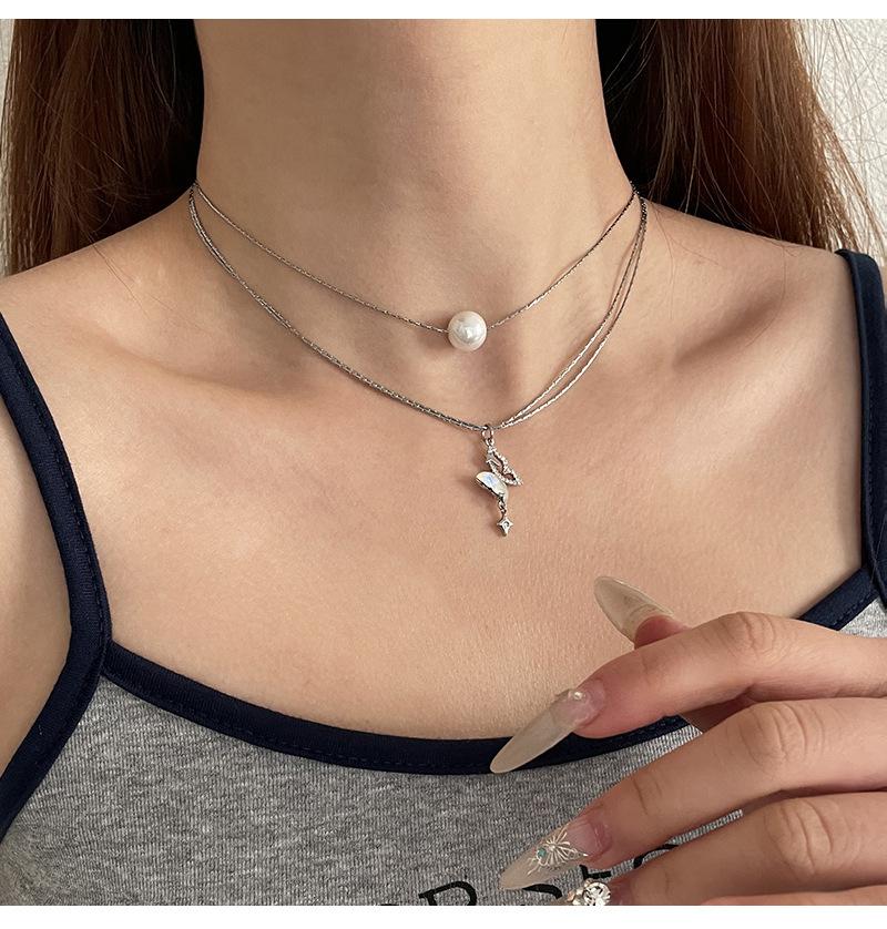 Collar multicapa de perlas de mariposa con diseño de nicho para mujer, colgante ligero de lujo simple y exquisito, estilo frío, cadena de clavícula de alta calidad