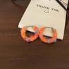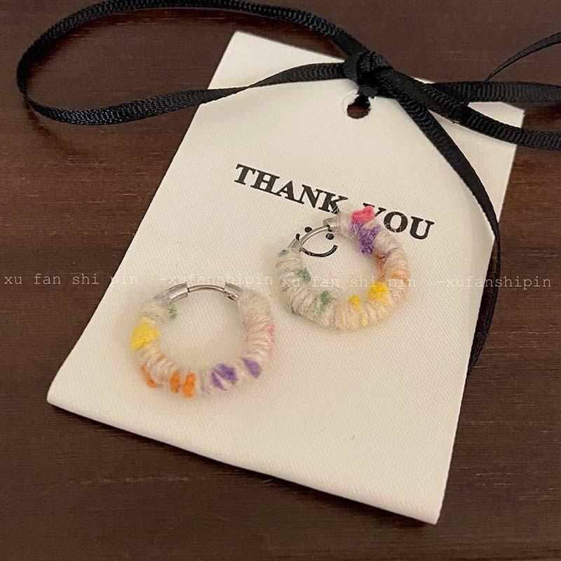 Pendientes circulares de lana con diseño de arcoíris sinuoso de otoño e invierno de 2023, pendientes de felpa con diseño de nicho para mujer, pendientes tipo aro