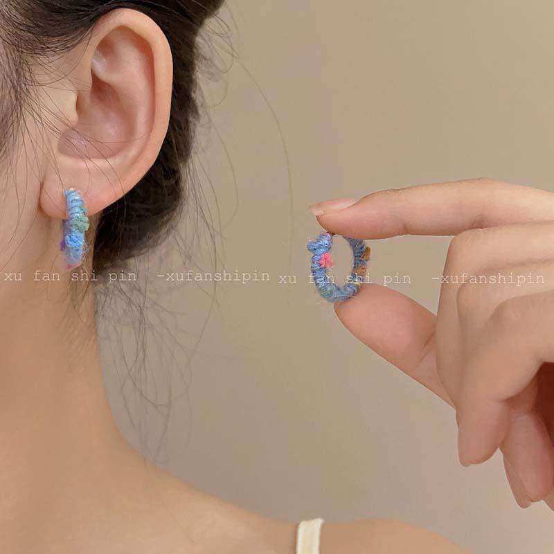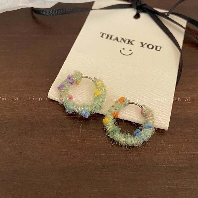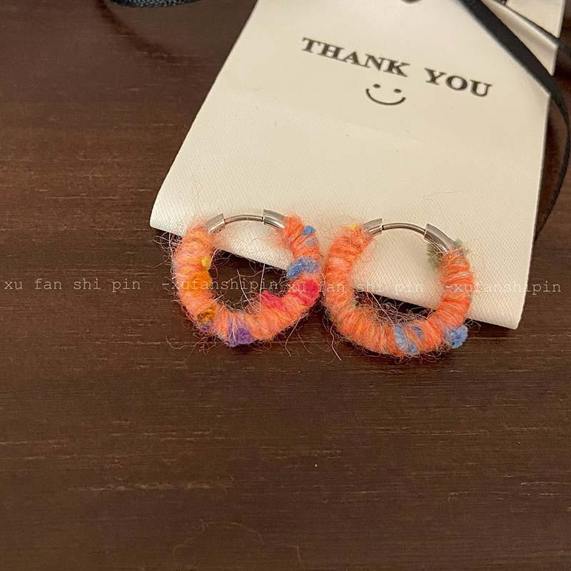 Pastel wool ear ring, Green color wool earrings-Silver Needle, Orange wool earrings-Silver Needle, Blue wool e...