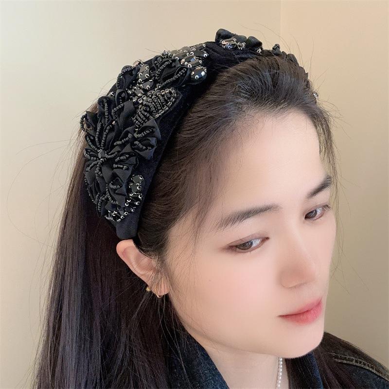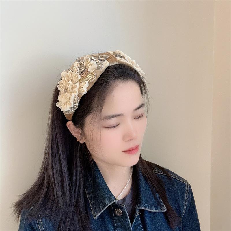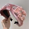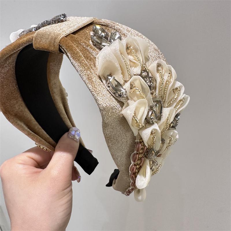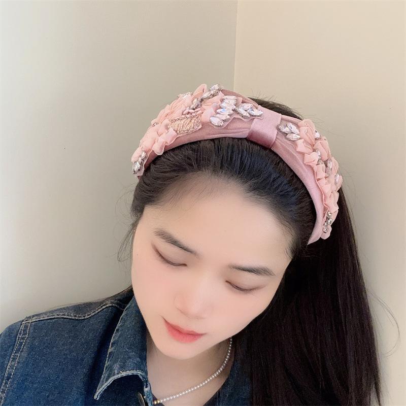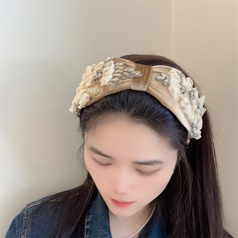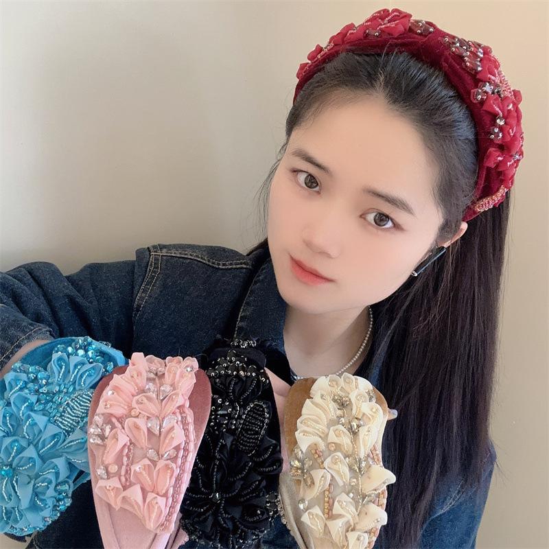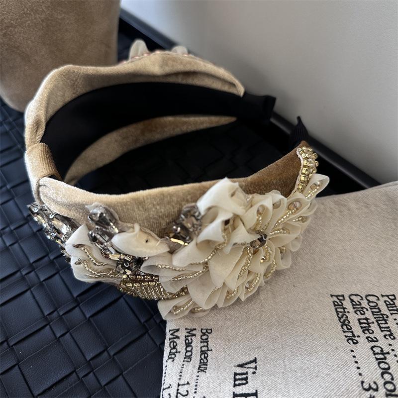 Aro para el pelo estilo barroco coreano de nueva industria pesada, diseño de nicho, con encaje retro, flores y diamantes de imitación, preciosos accesorios para el cabello con forma de tarjeta.